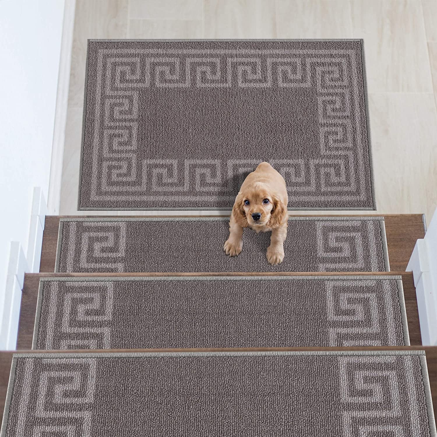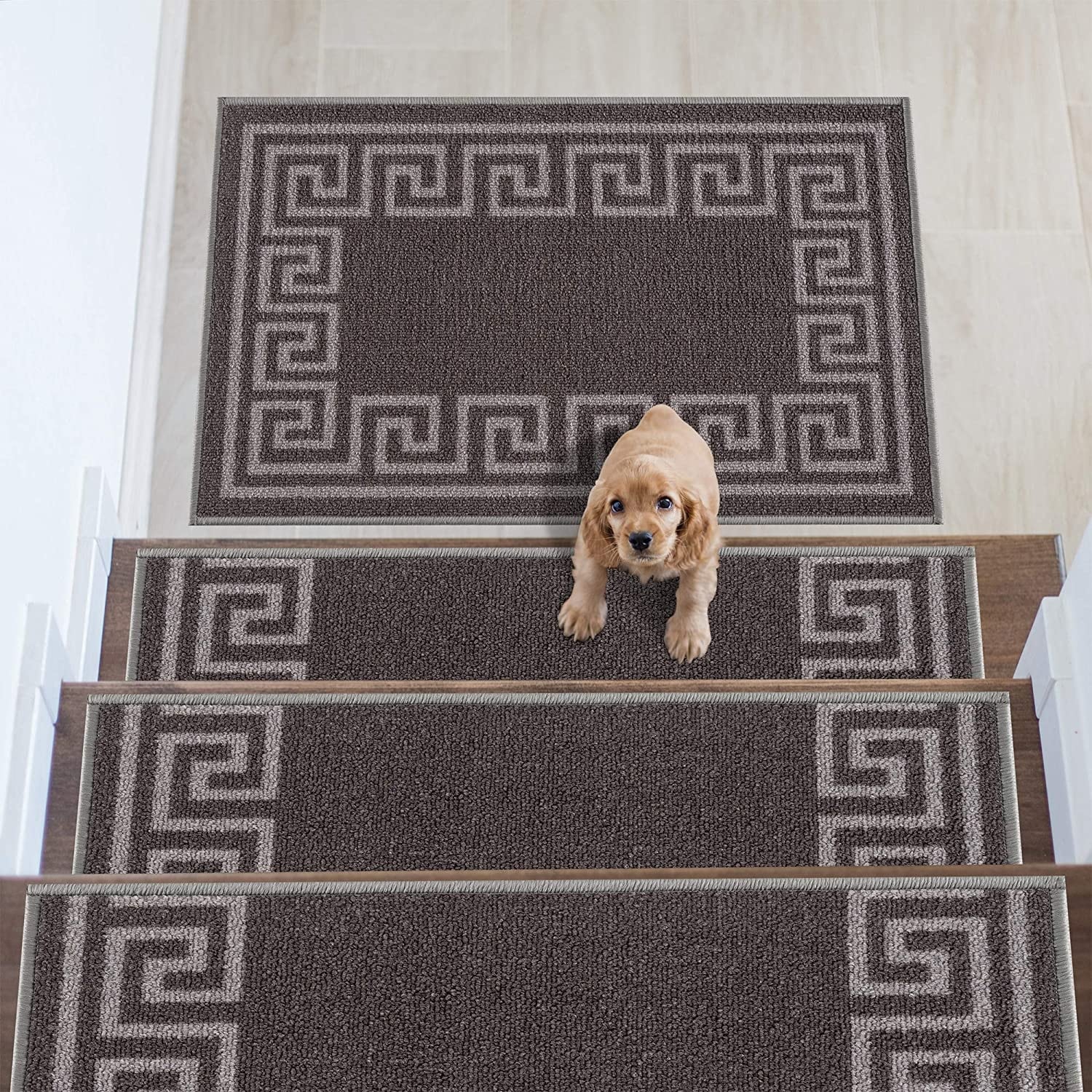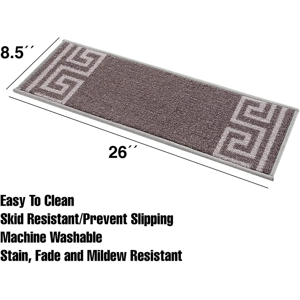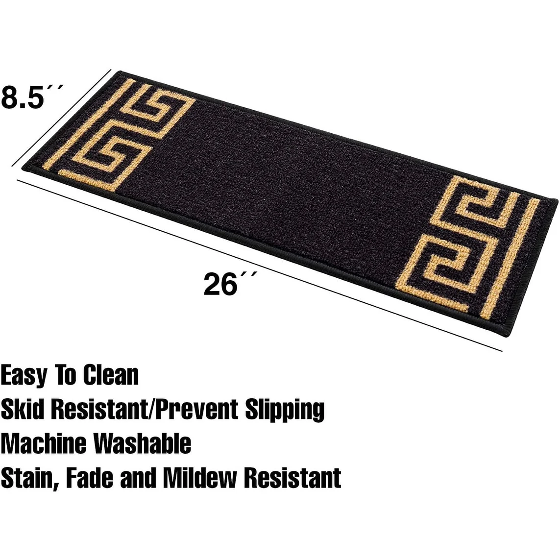 Upgrade your home decor and safety with Playa Rug's Stair Treads Greek Key Meander Design Non Slip Backing. Handcrafted with soft Polypropylene threads and a natural rubber backing, our stair treads offer a slip-resistant solution to prevent unexpected accidents. Our premium quality stair treads not only add a stylish touch to your home but also provide a soft and high-quality feel under your feet.