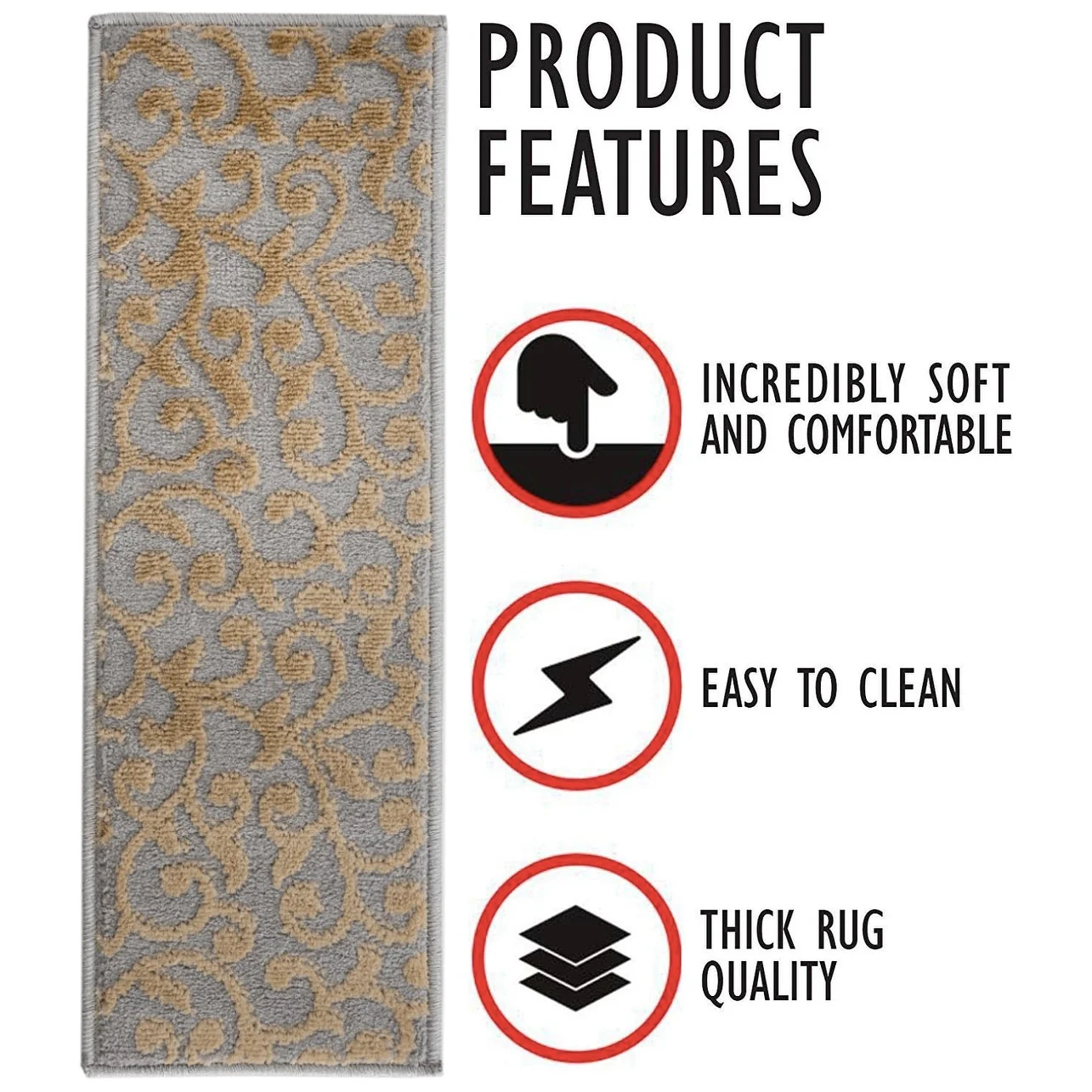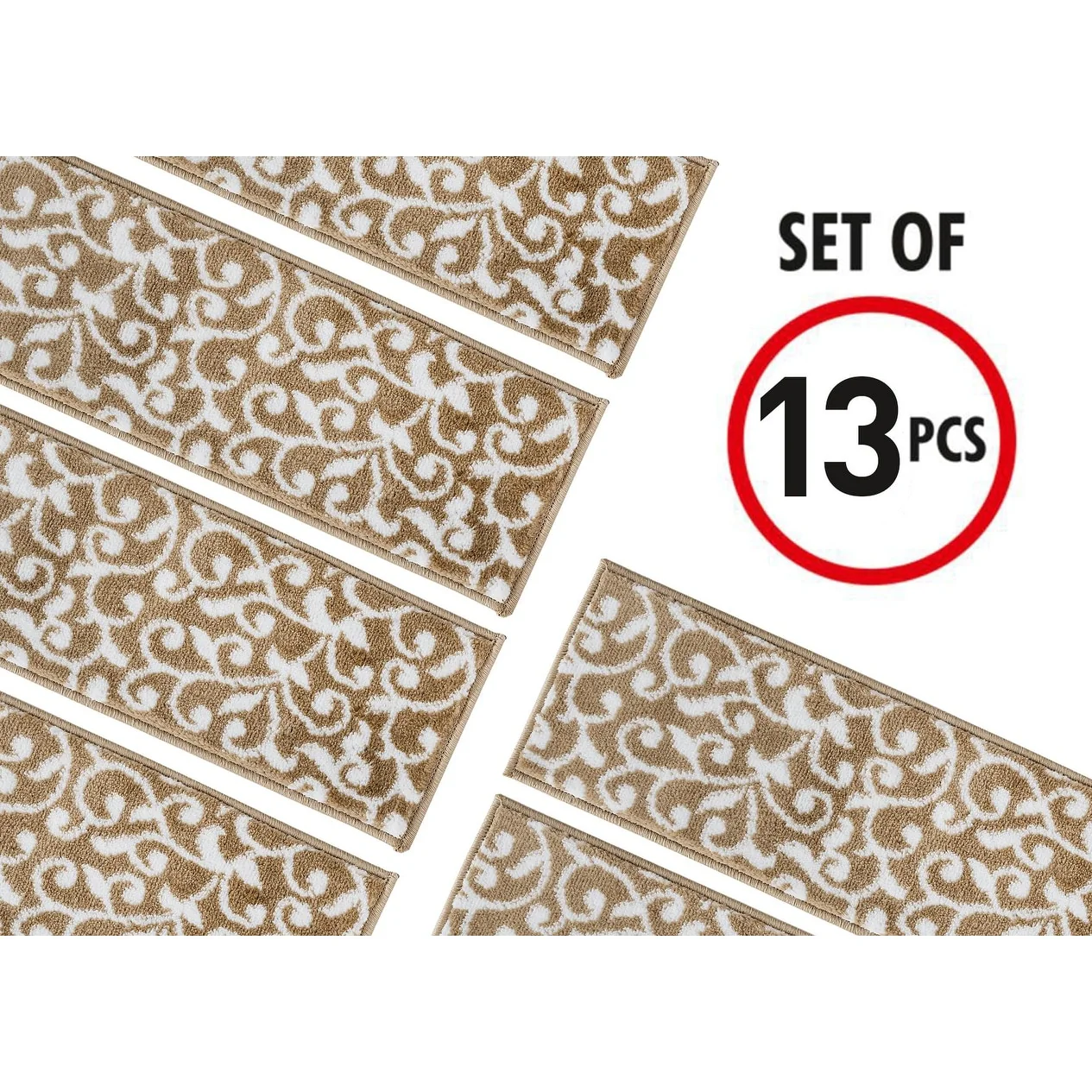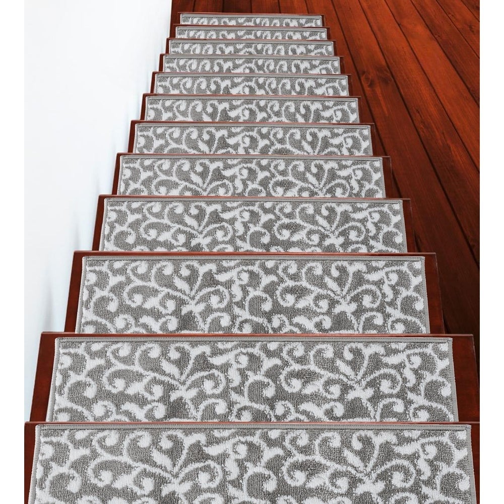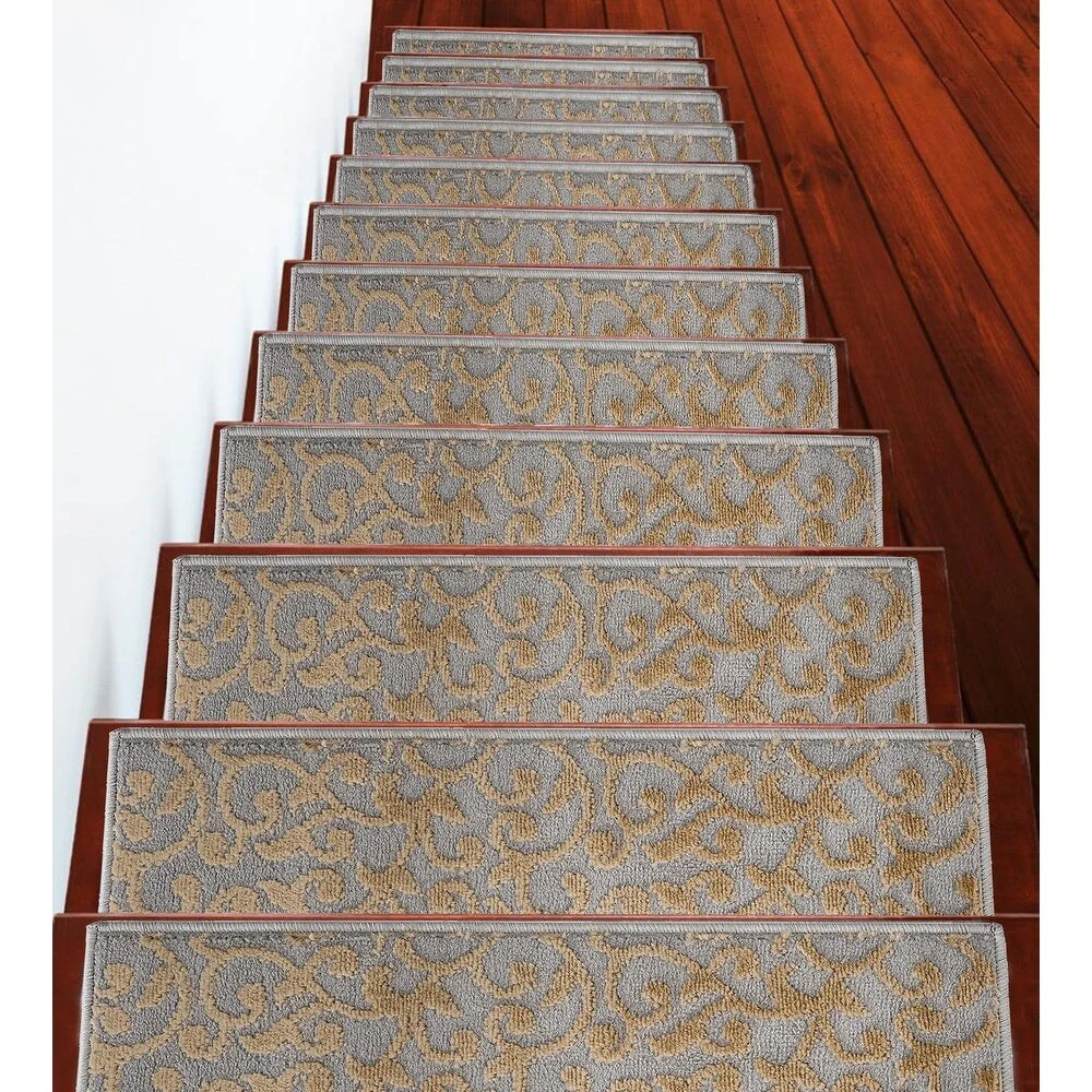 Make your hardwood staircase safe and stylish with Sussexhome Leaves Pattern Stair Treads! Designed with your family's safety in mind, these carpet treads prevent slipping and sliding on smooth, hardwood stairs. Available in a variety of colors, these non-slip treads feature unique geometric patterns that add style to your staircase while protecting it from scratches and scuffs. These treads are made from 100% durable polypropylene fabric and have soft fibers that provide comfort and cushioning to your feet. Each tread comes with a self-adhesive backing that makes installation quick and easy. Protect your loved ones from accidents and add a touch of style to your home with Sussexhome Leaves Pattern Stair Treads!