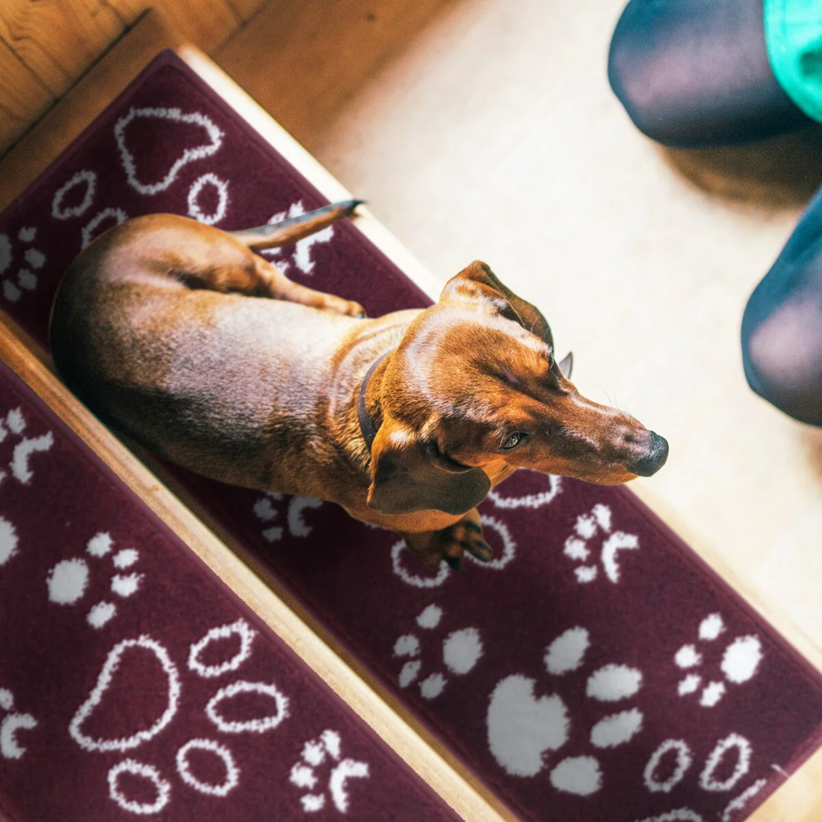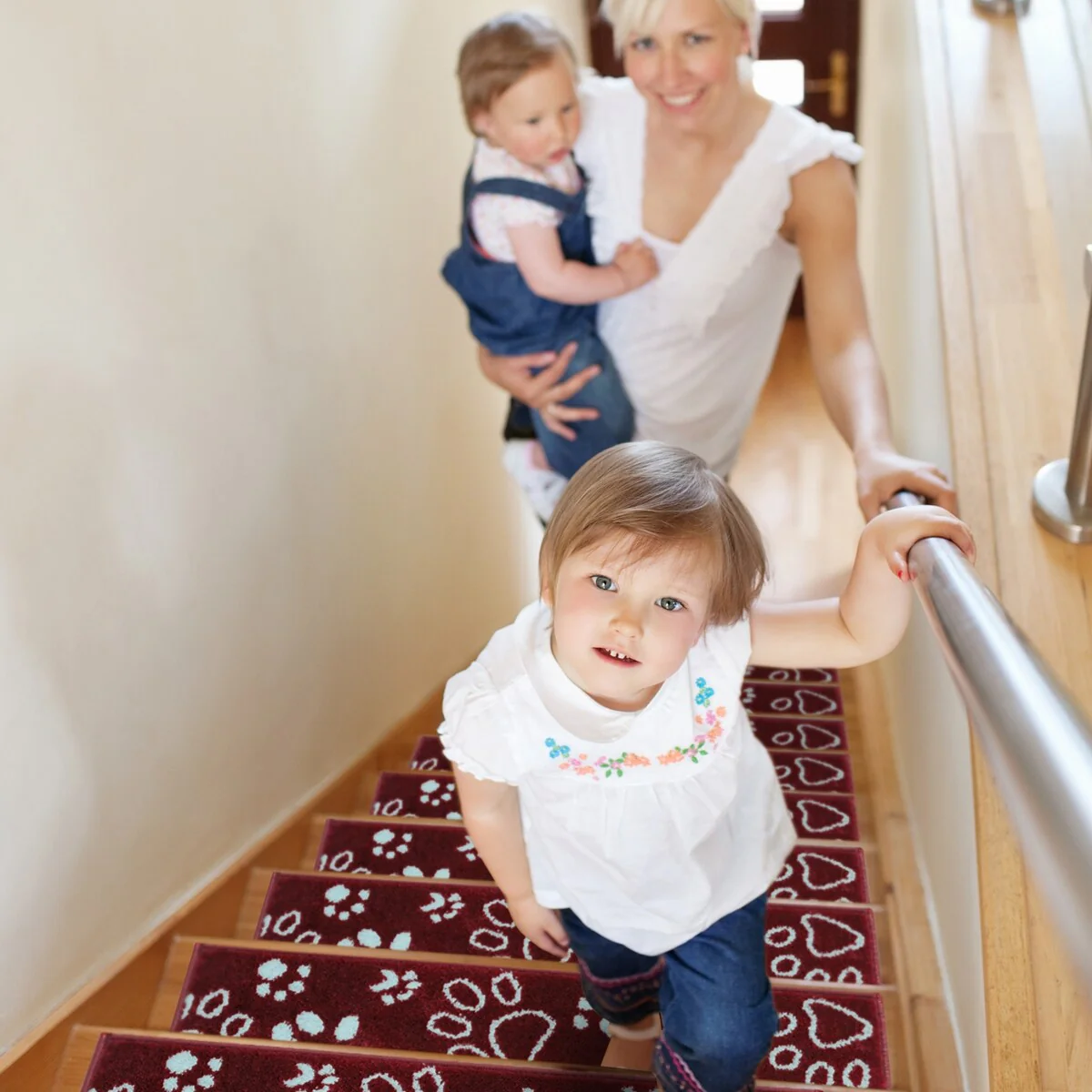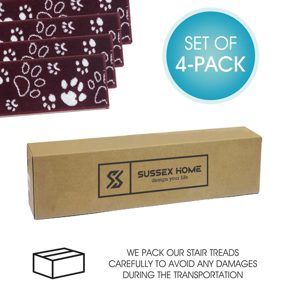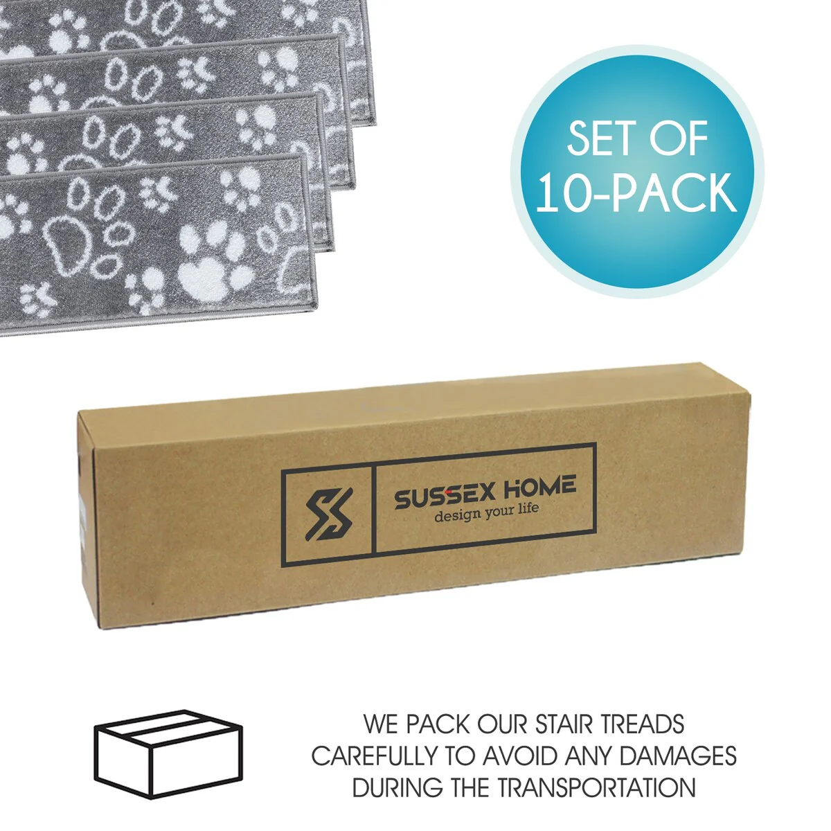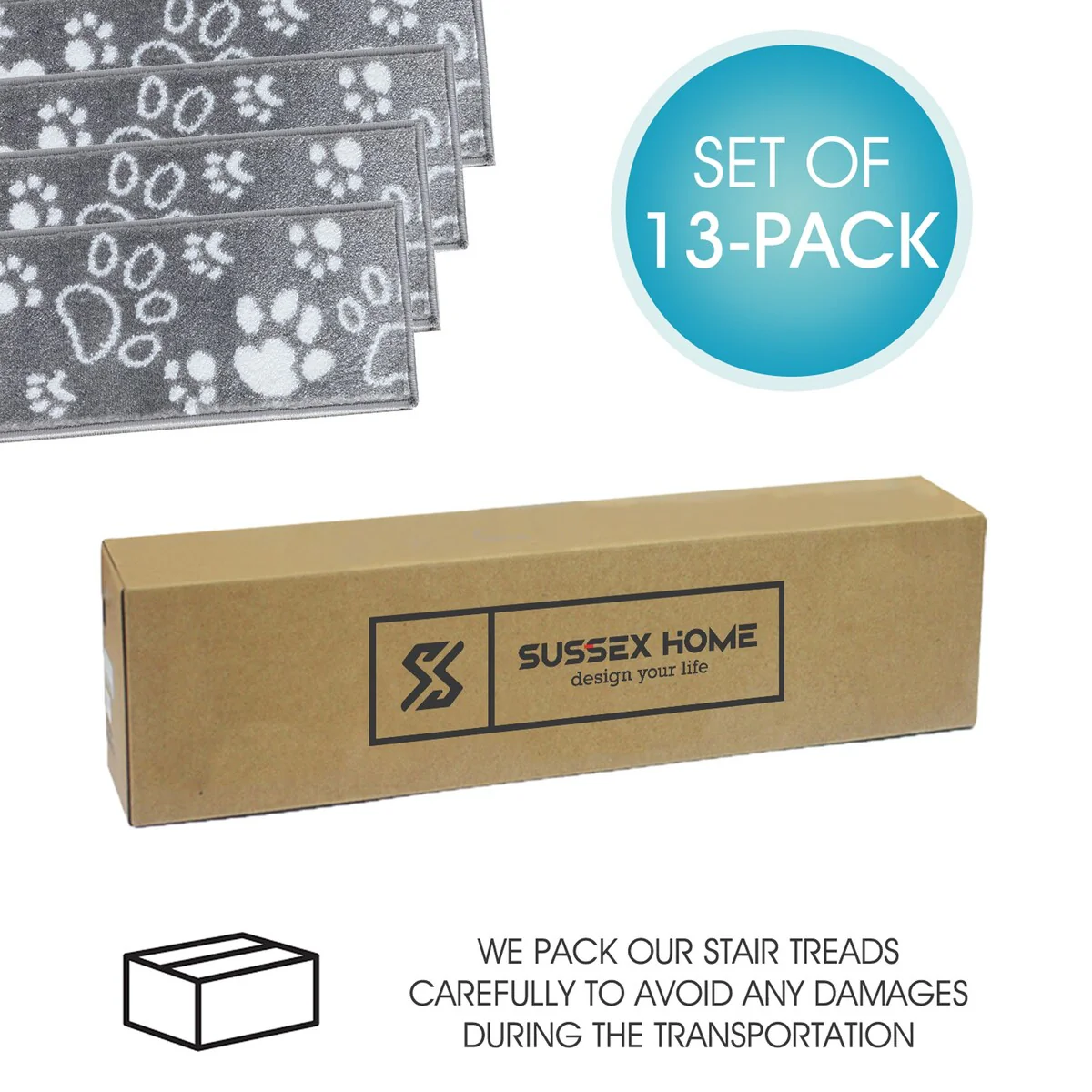 Make your hardwood staircase safer and more stylish with the Sussexhome Paw Collection Stair Treads for Wooden Steps. These non-slip stair treads are made from 100% polypropylene fabric, which is durable and gentle on bare feet. Each tread features a unique geometric pattern and is available in beige, black, brown, navy, red, teal, and gray. With a double-sided adhesive backing, installation is easy and requires no tools. Protect your stairs from scuffs and scratches while keeping your loved ones safe with these carpet stair treads.