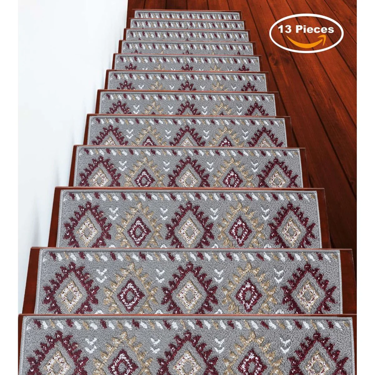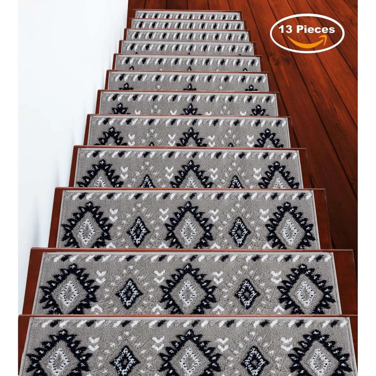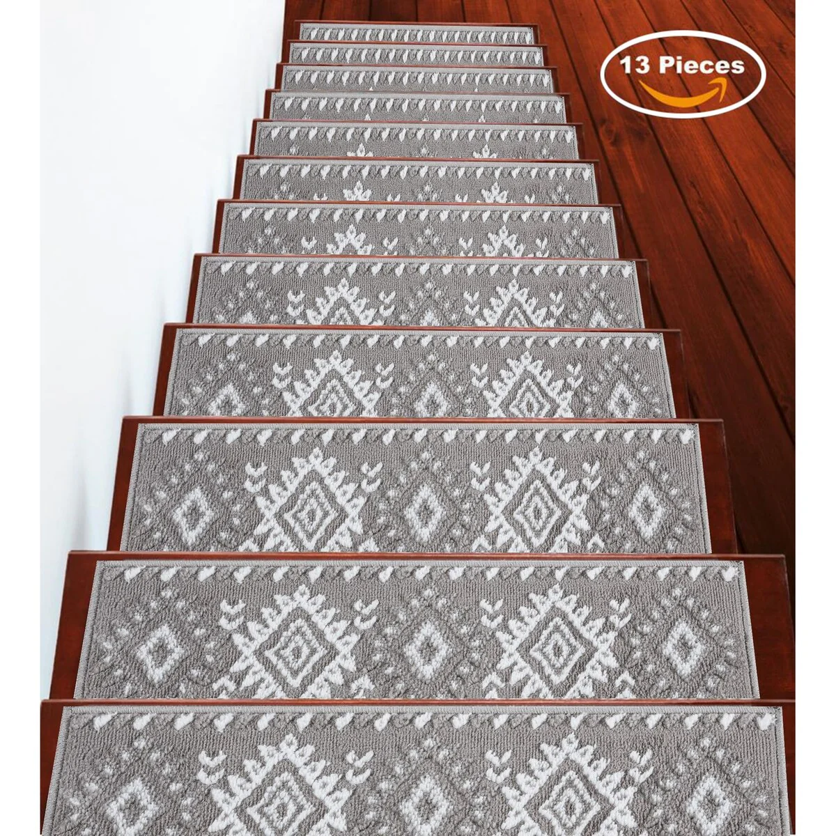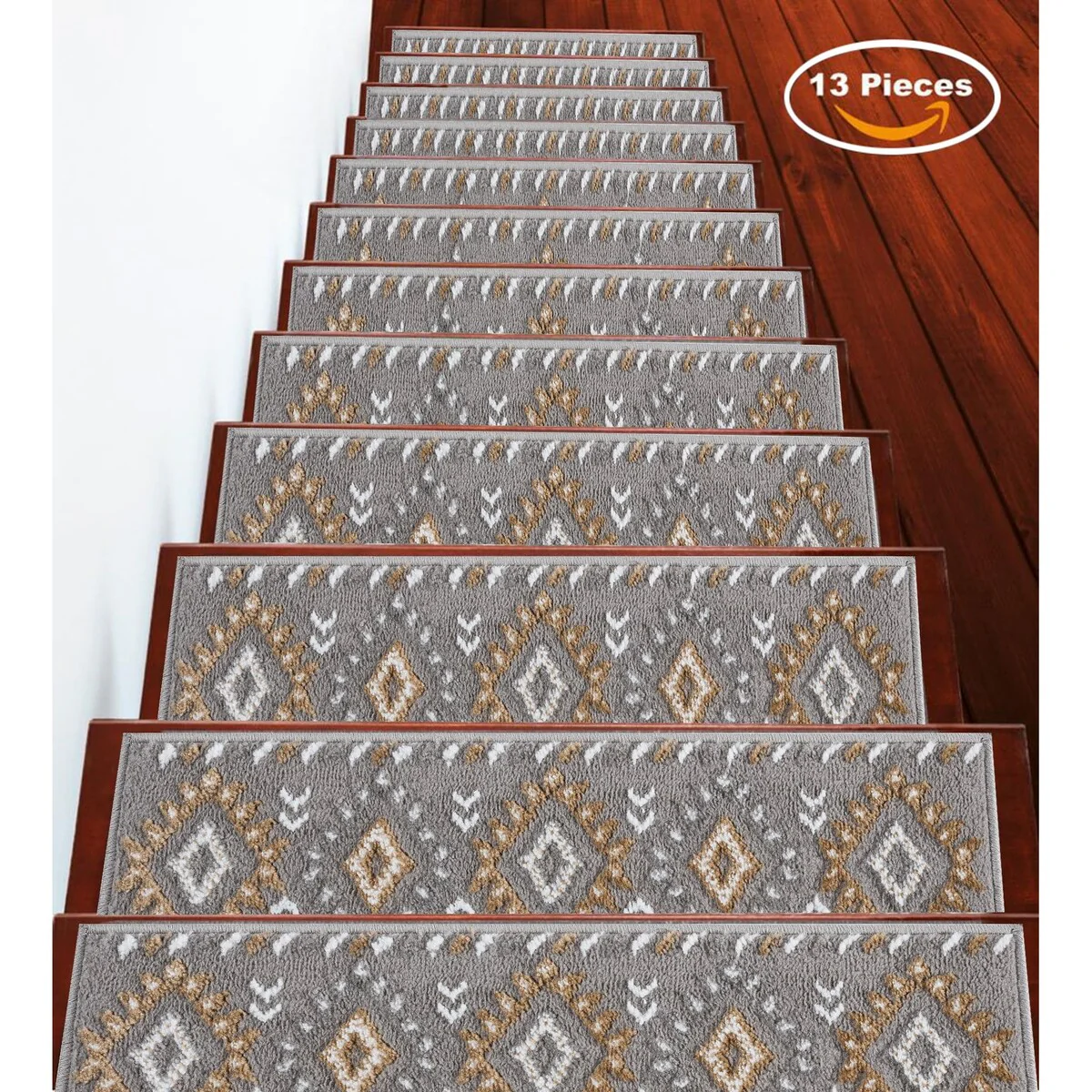 Make your hardwood stairs safer and more stylish with Sussexhome Traditional PP Stair Treads! Available in beige, black, brown, navy, red, teal, and gray, these adhesive treads boast a thick carpeted surface with unique geometric patterns. Made from durable 100% polypropylene fabric, they are soft and gentle on bare feet while cushioning and supporting every step. The self-adhesive backing makes installation a breeze. Protect your stairs from scratches and scuffs and prevent slips and falls with these non-slip stair treads.