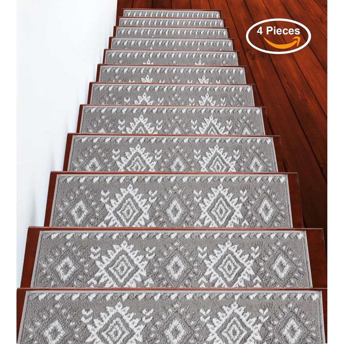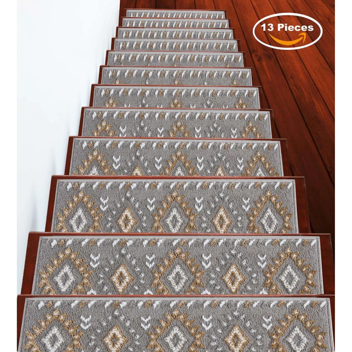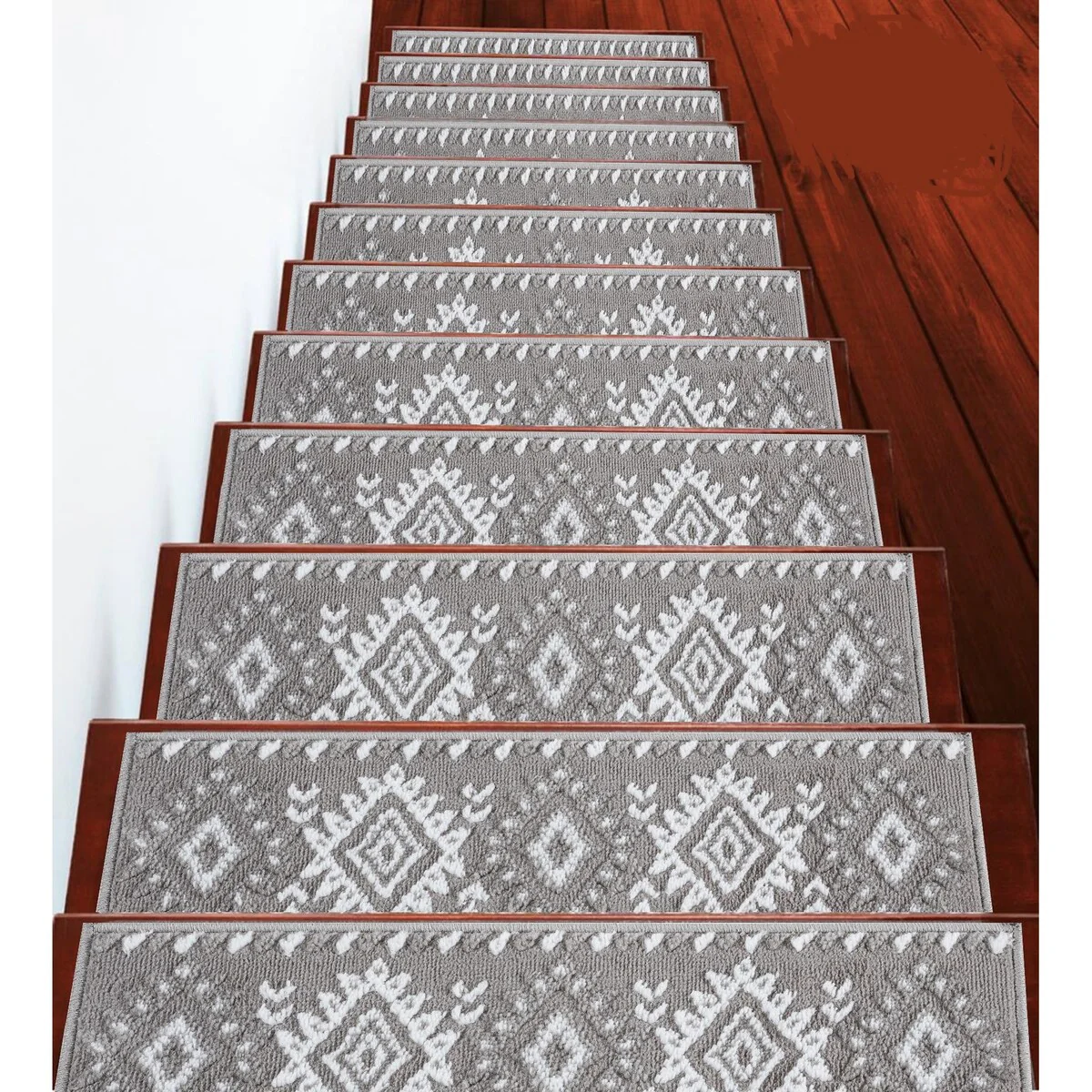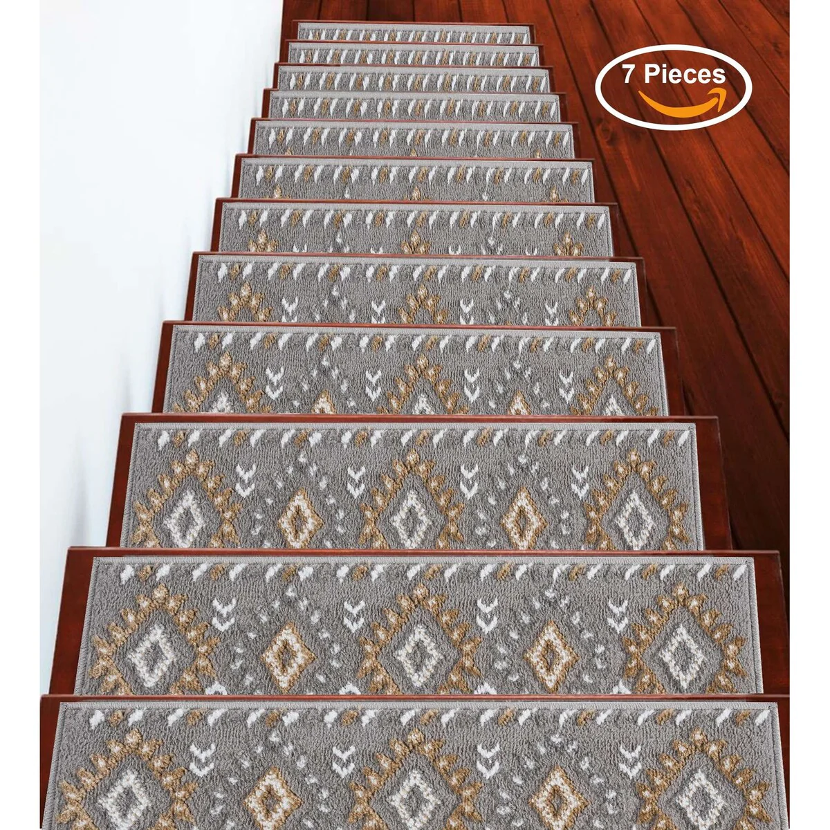 Make your hardwood stairs safer and more stylish with Sussexhome Traditional PP Stair Treads! Available in beige, black, brown, navy, red, teal, and gray, these adhesive treads boast a thick carpeted surface with unique geometric patterns. Made from durable 100% polypropylene fabric, they are soft and gentle on bare feet while cushioning and supporting every step. The self-adhesive backing makes installation a breeze. Protect your stairs from scratches and scuffs and prevent slips and falls with these non-slip stair treads.