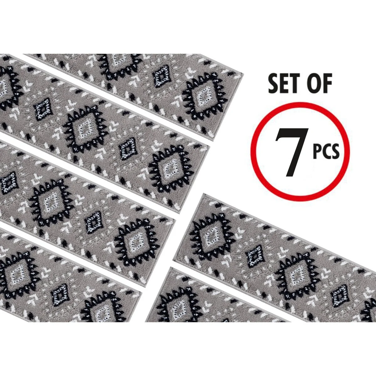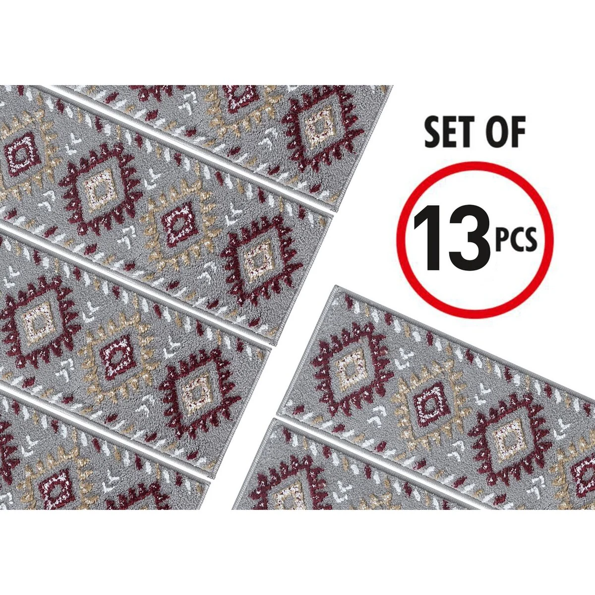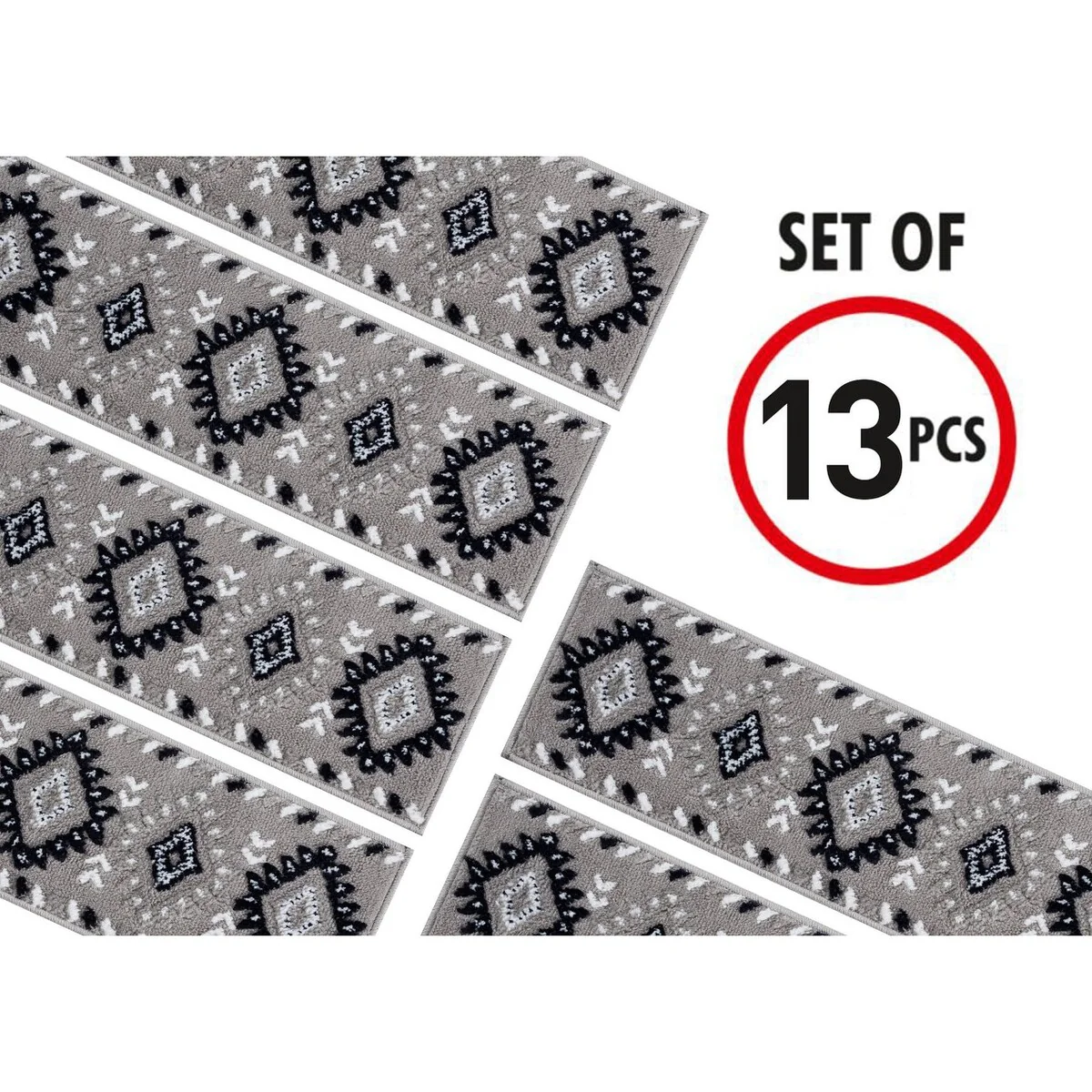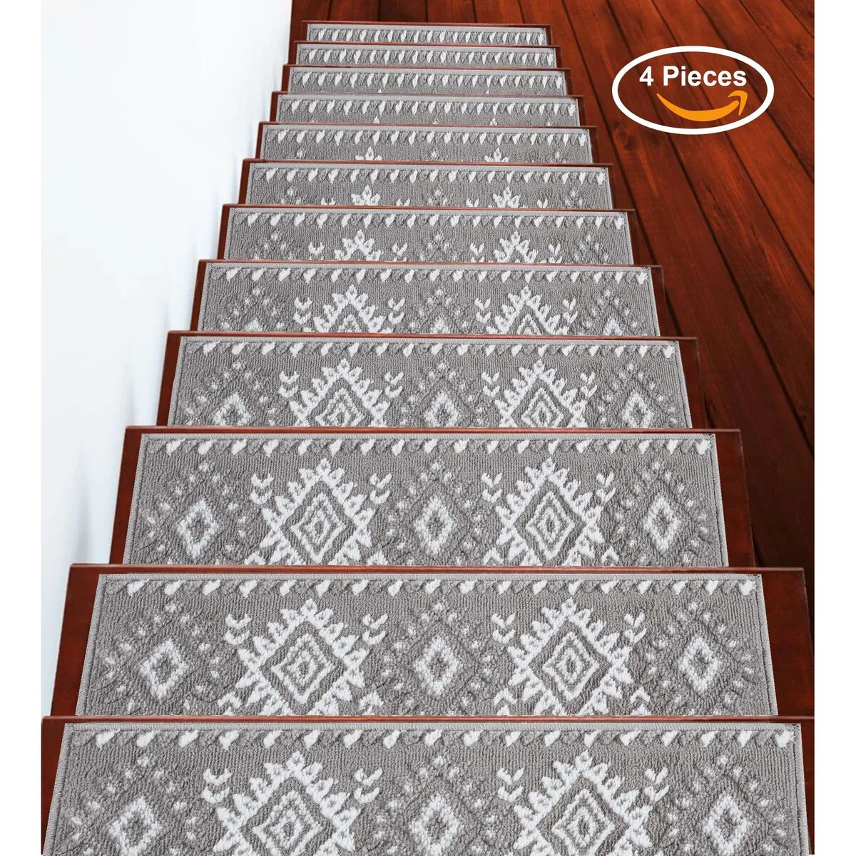 Make your hardwood stairs safer and more stylish with Sussexhome Traditional PP Stair Treads! Available in beige, black, brown, navy, red, teal, and gray, these adhesive treads boast a thick carpeted surface with unique geometric patterns. Made from durable 100% polypropylene fabric, they are soft and gentle on bare feet while cushioning and supporting every step. The self-adhesive backing makes installation a breeze. Protect your stairs from scratches and scuffs and prevent slips and falls with these non-slip stair treads.