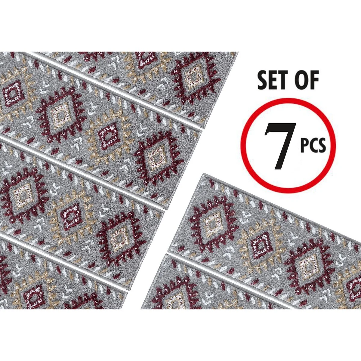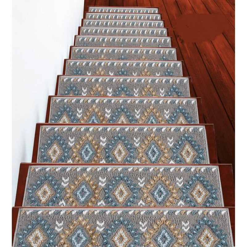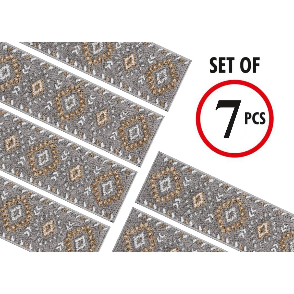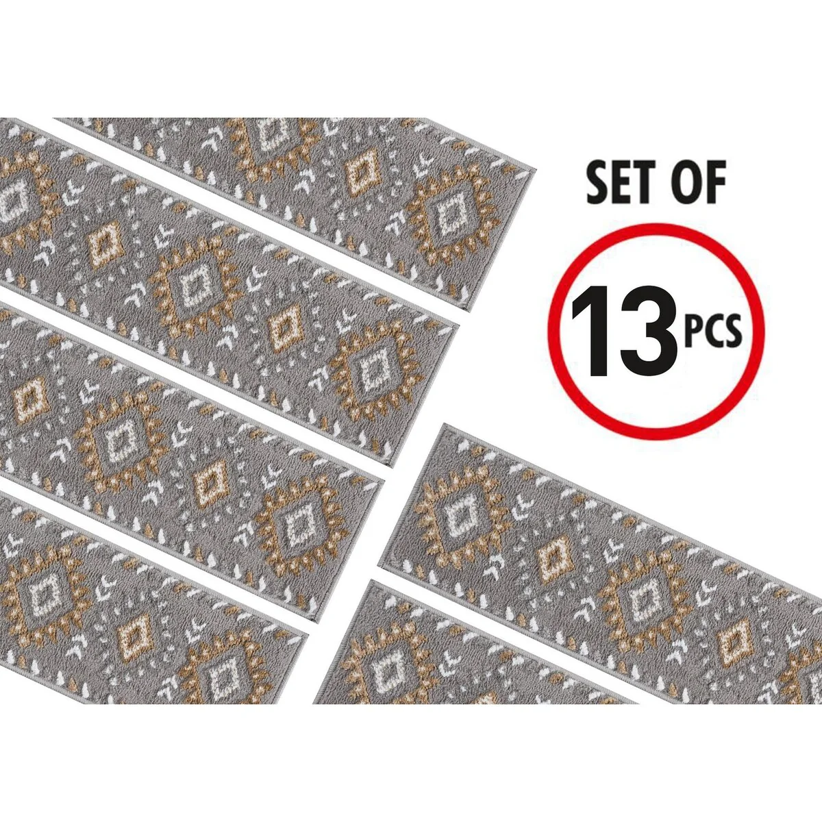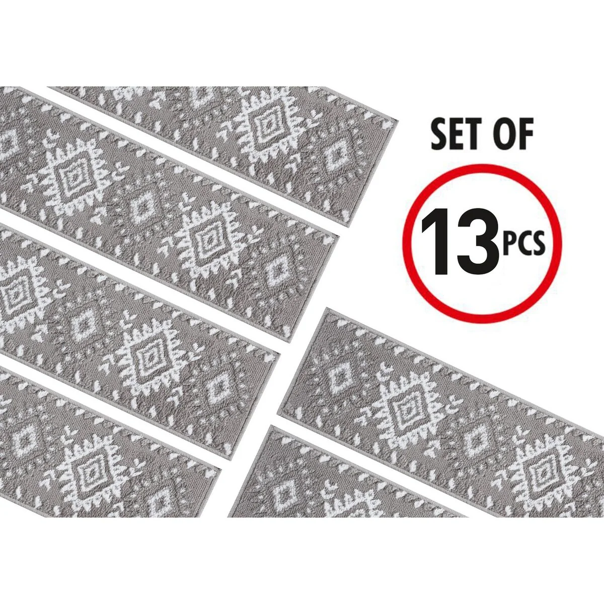 Make your hardwood stairs safer and more stylish with Sussexhome Traditional PP Stair Treads! Available in beige, black, brown, navy, red, teal, and gray, these adhesive treads boast a thick carpeted surface with unique geometric patterns. Made from durable 100% polypropylene fabric, they are soft and gentle on bare feet while cushioning and supporting every step. The self-adhesive backing makes installation a breeze. Protect your stairs from scratches and scuffs and prevent slips and falls with these non-slip stair treads.