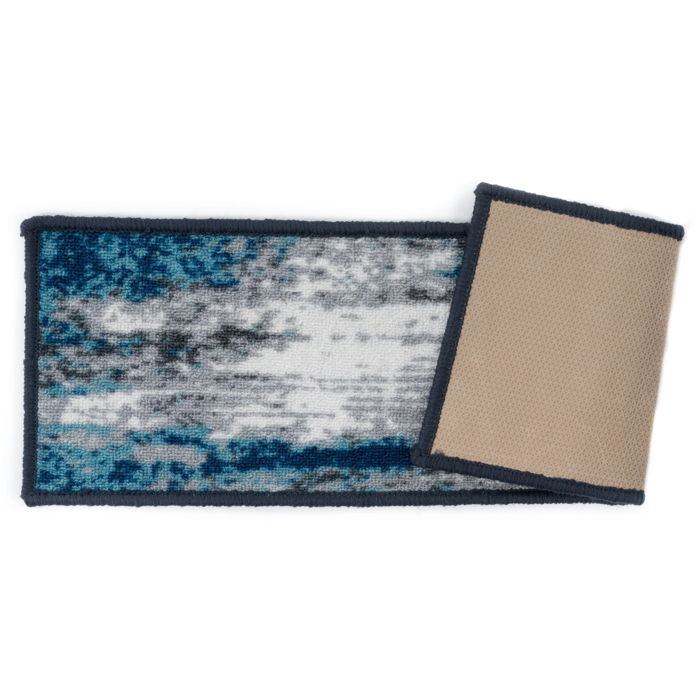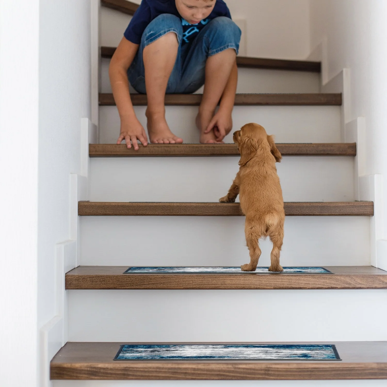 -Enrich your stairs with these stunning, yet practical and decorative stair treads. The distressed abstract design adds interest and style to every step. The rubber backing provides additional safety for climbing kids and pets. At 26 inches x 8.6 inches, these machine washable treads are ideally sized for the majority of staircases.
