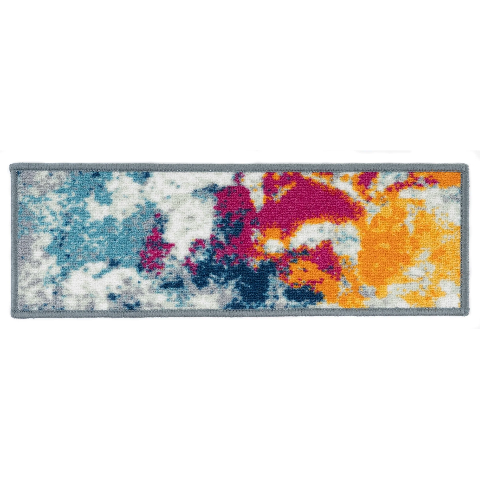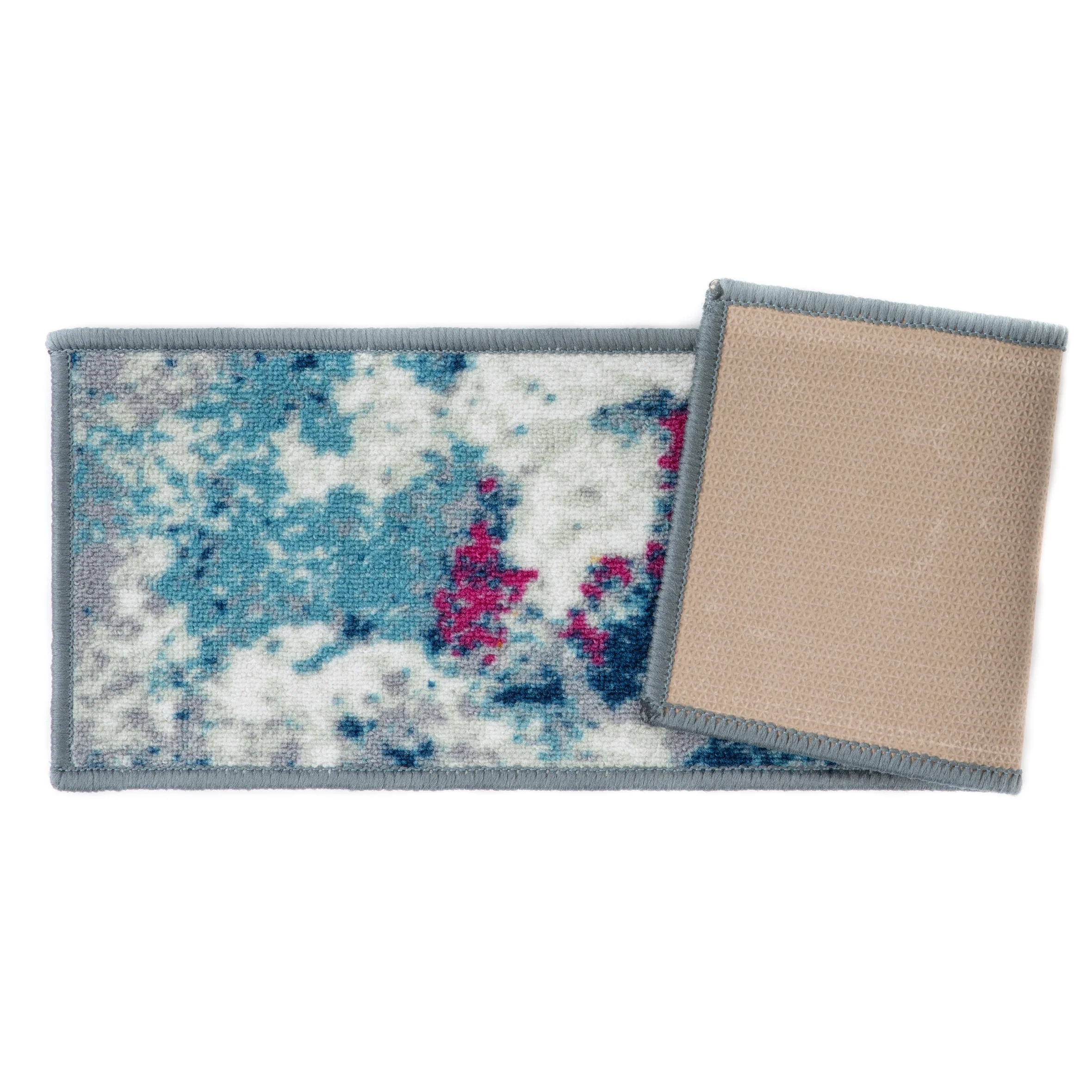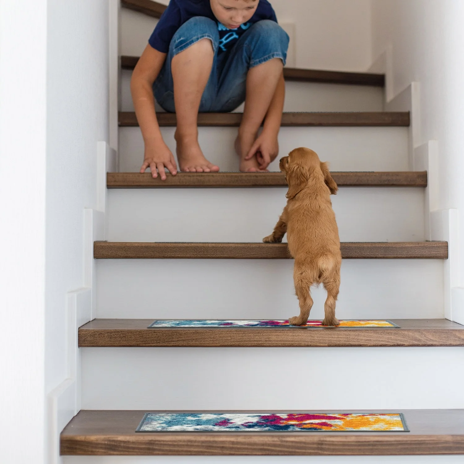 -Enrich your stairs with these stunning, yet practical and decorative stair treads. The distressed abstract design adds interest and style to every step. The rubber backing provides additional safety for climbing kids and pets. At 26 inches x 8.6 inches, these machine washable treads are ideally sized for the majority of staircases.