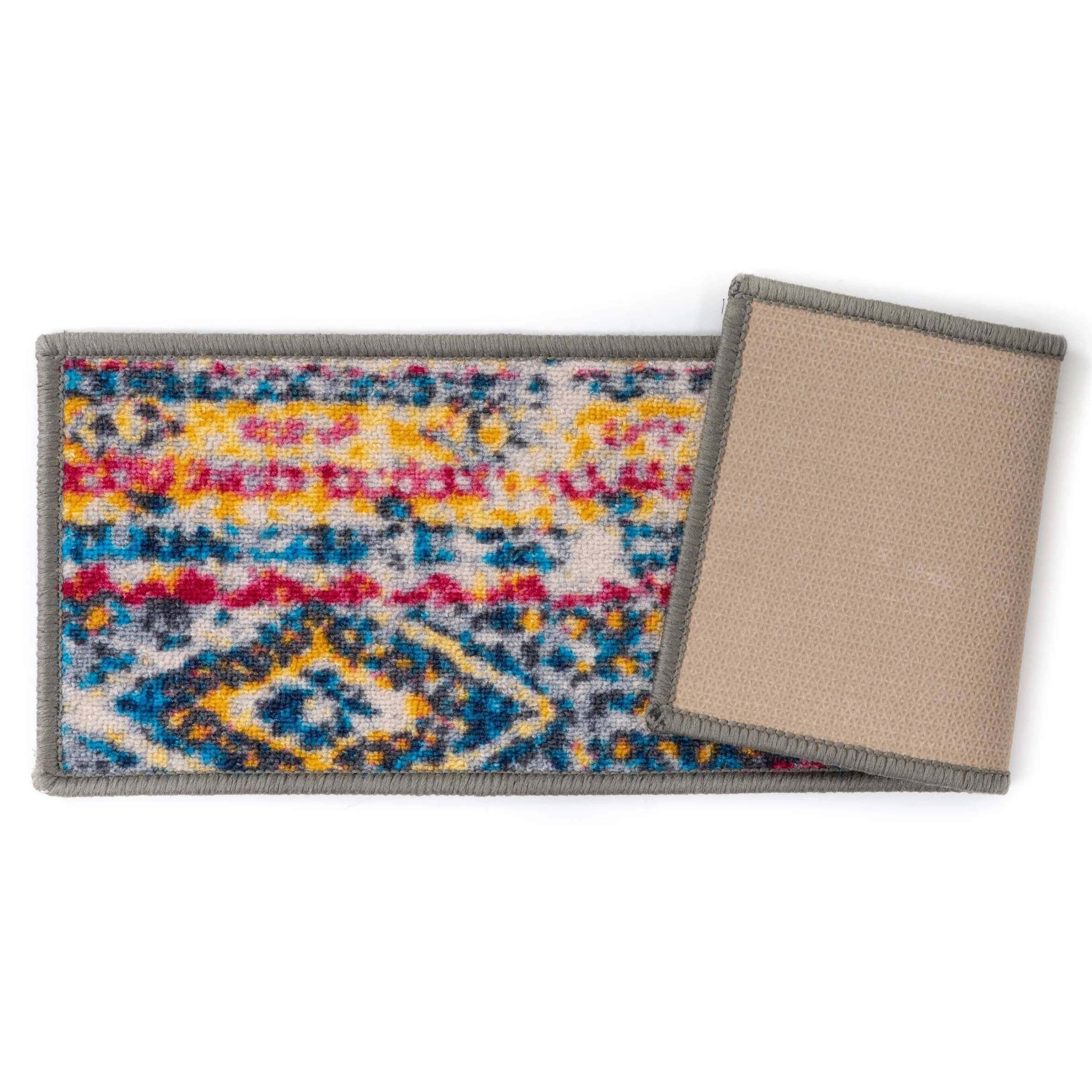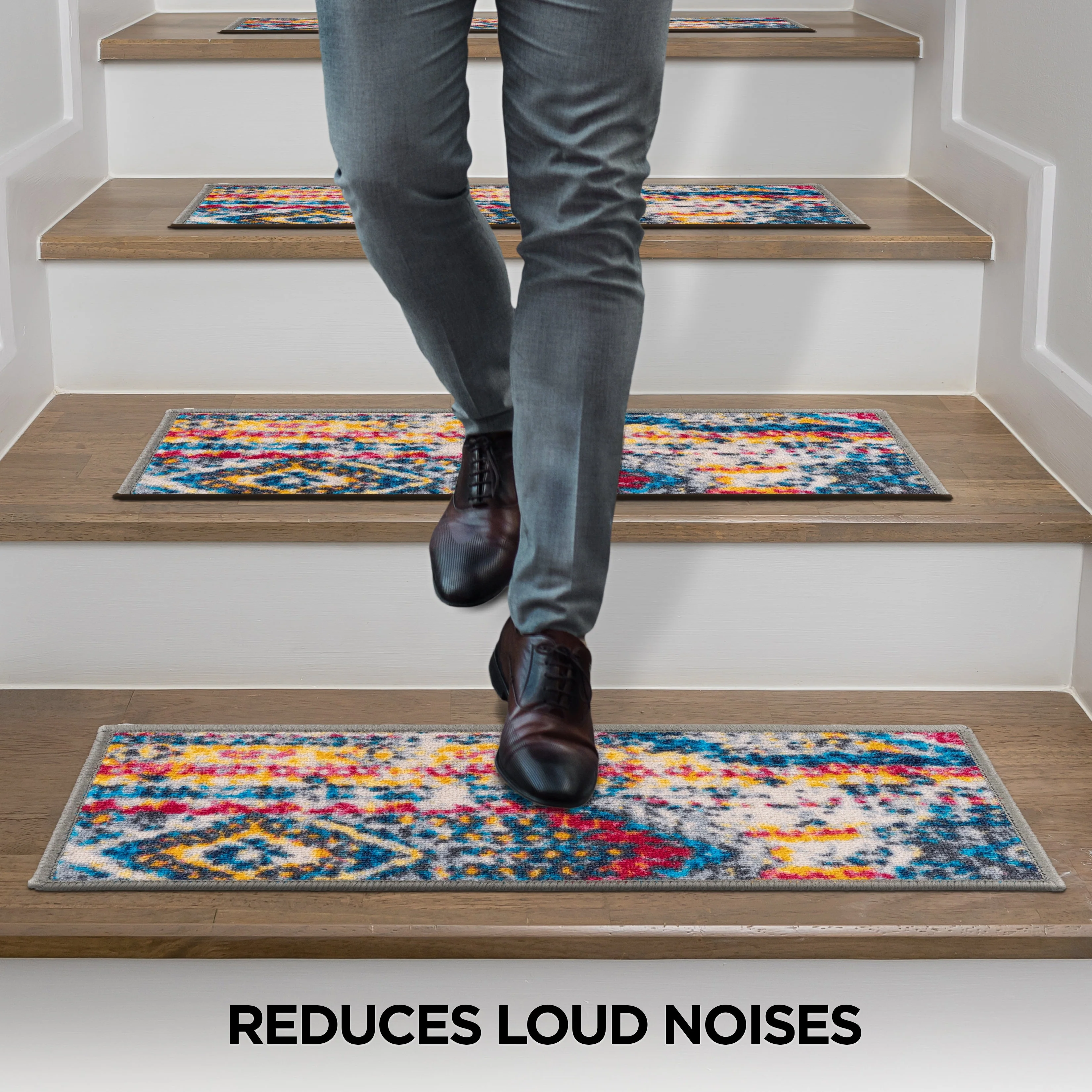 -Enrich your stairs with these stunning, yet practical and decorative stair treads. The bohemian design adds interest and style to every step. The rubber backing provides additional safety for climbing kids and pets. At 26 inches x 8.6 inches, these machine washable treads are ideally sized for the majority of staircases.