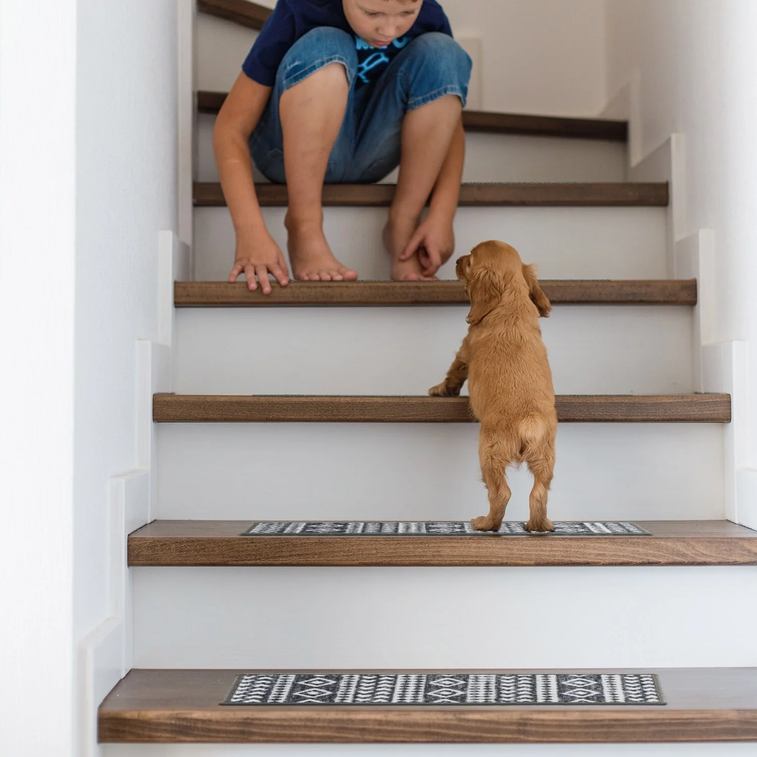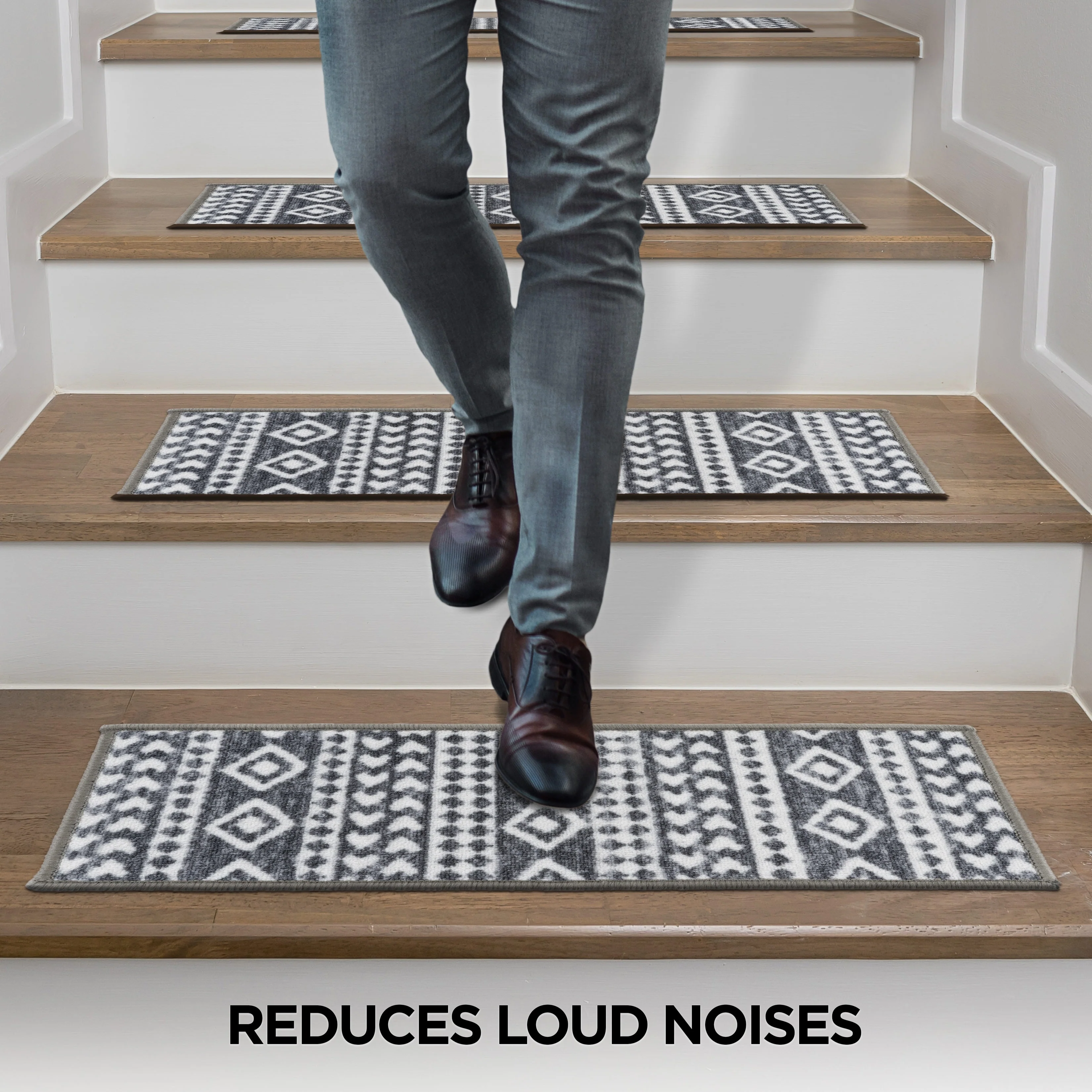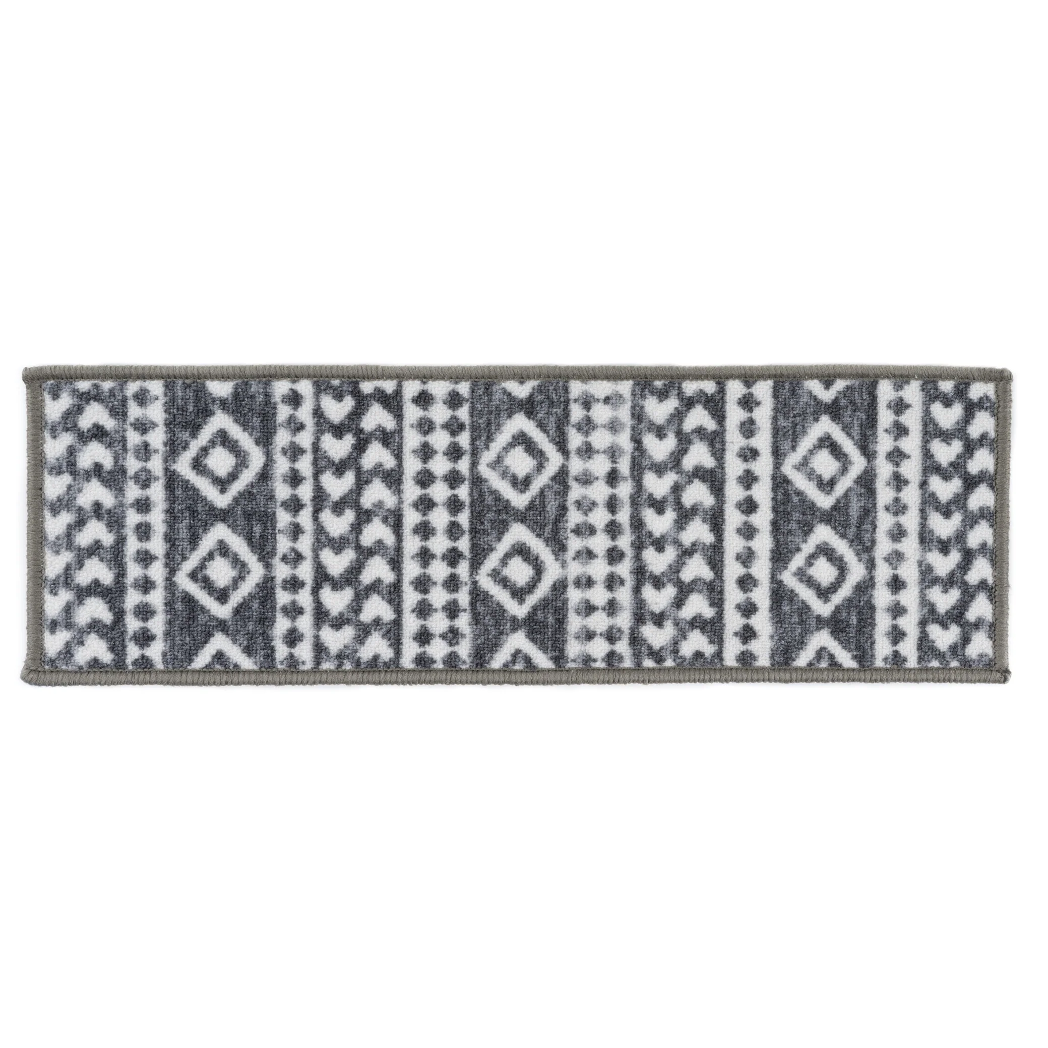 Enhance the safety and style of your stairs with World Rug Gallery Geometric Bohemian Non-Slip Stair Treads. The bohemian tribal design brings a touch of elegance to your home while the rubber backing ensures safety for children and pets. Measuring 26 inches x 8.6 inches, these machine washable treads fit most staircases. The high-quality 100% Nylon pile ensures durability, while the latex backing provides additional grip. These treads are stain-resistant, fade-resistant, and easy to vacuum, making them a practical choice for any home.