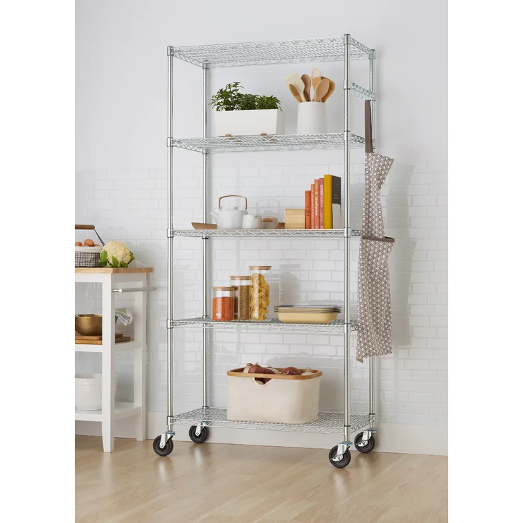 36 W x 18 D x 72 H 5 Tier Wire Shelving with Sidebar and Wheels