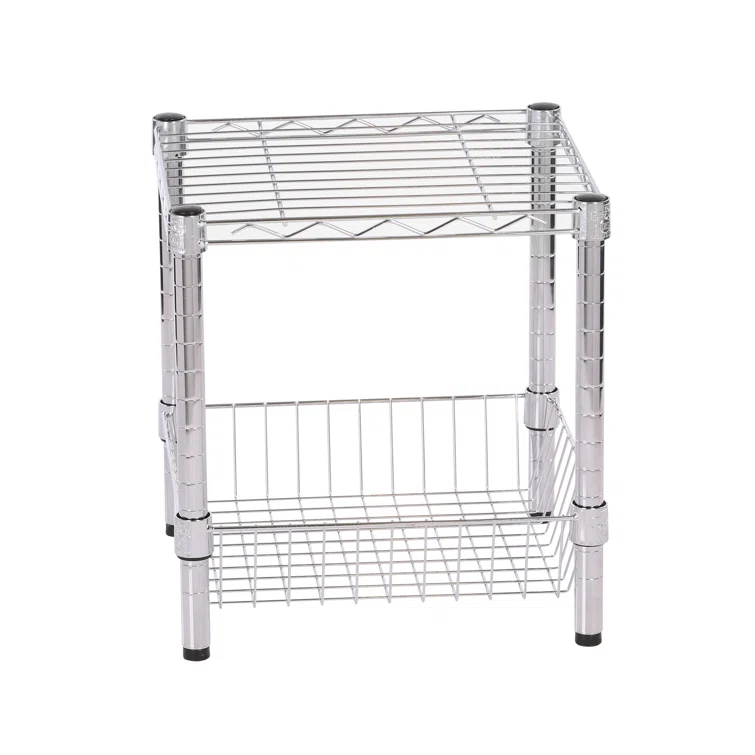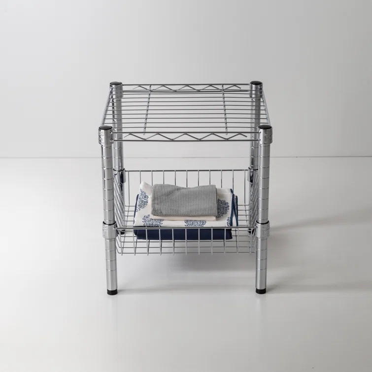 Metal Height-Adjustable Wire Shelf with Basket (15 W x 16 H x 14 D)