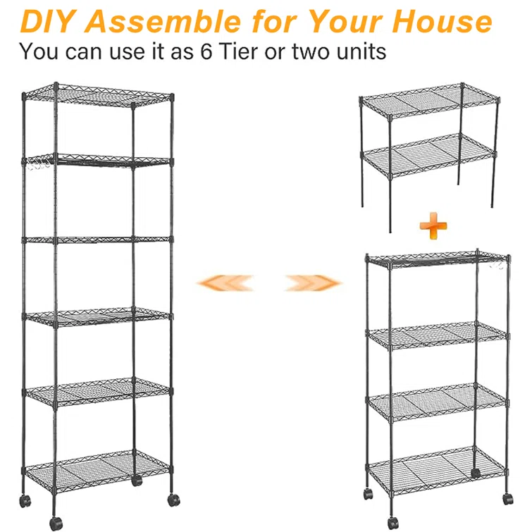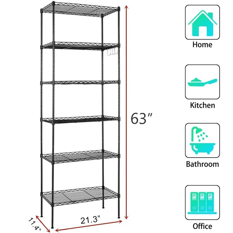 Martens 63 H x 20 W x 12 D Adjustable Shelving Unit with Wheels, Leveling Feet, Side Hooks