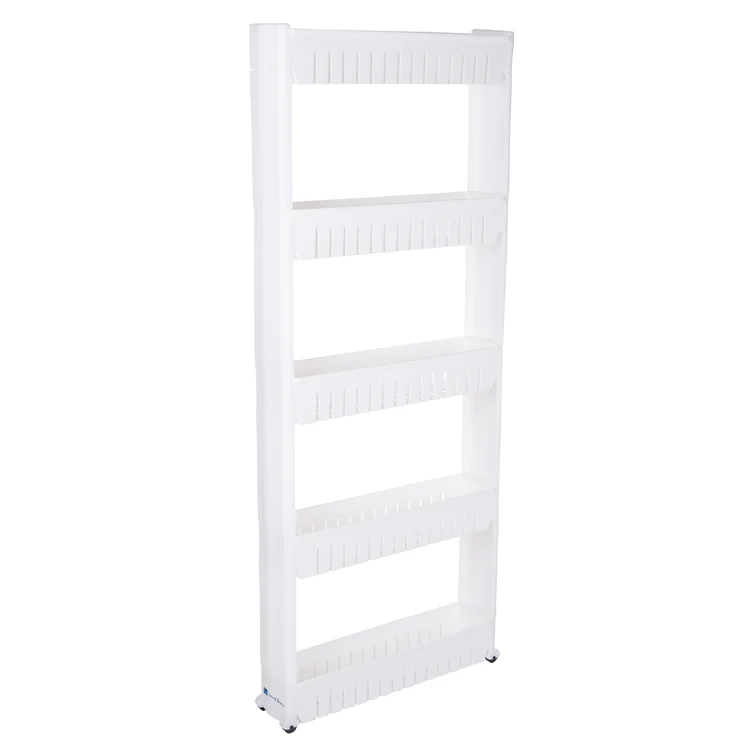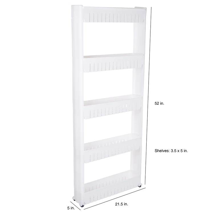 Newcastle 5-Tier Pantry Storage Rack - White Slide-Out Rolling Cart With Baskets for Narrow Spaces