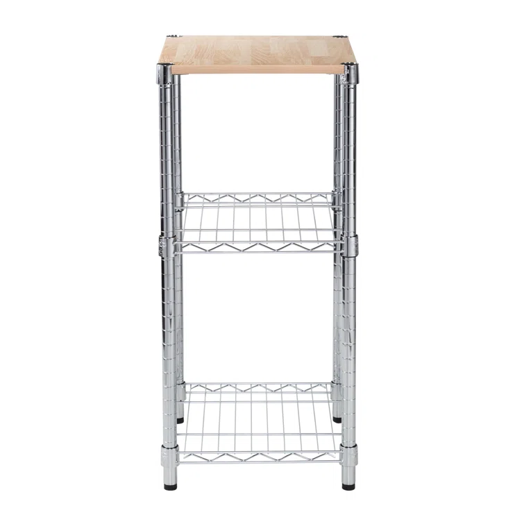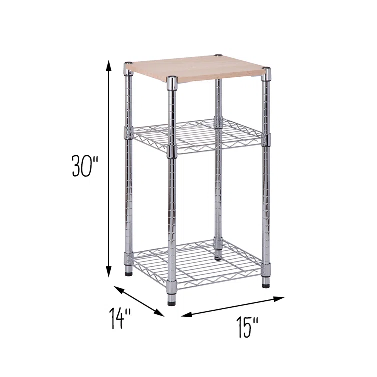 3-Tier Steel Shelving Unit with Laminate Wood Top (15 W X 30 H X 14 D)