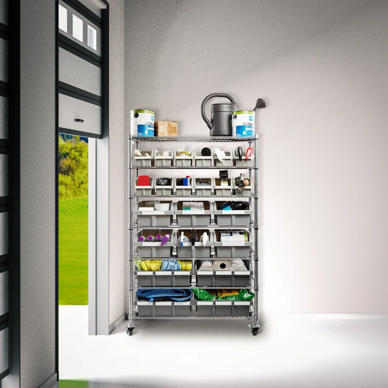 36 W NSF-Certified Commercial 7-Tier 22-Bin Storage Rack with Wheels