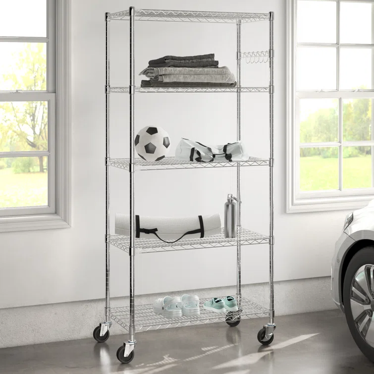 24'' W Steel Height -Adjustable Shelving Unit with Wheels