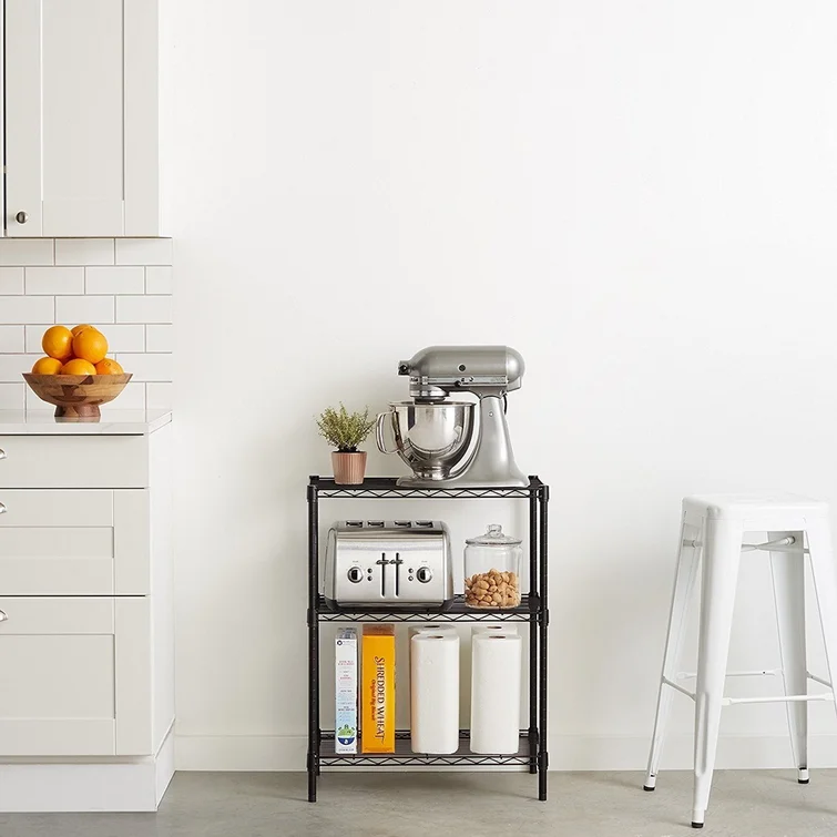 3-Tier Steel Shelving Unit with Laminate Wood Top (15 W X 30 H X 14 D)