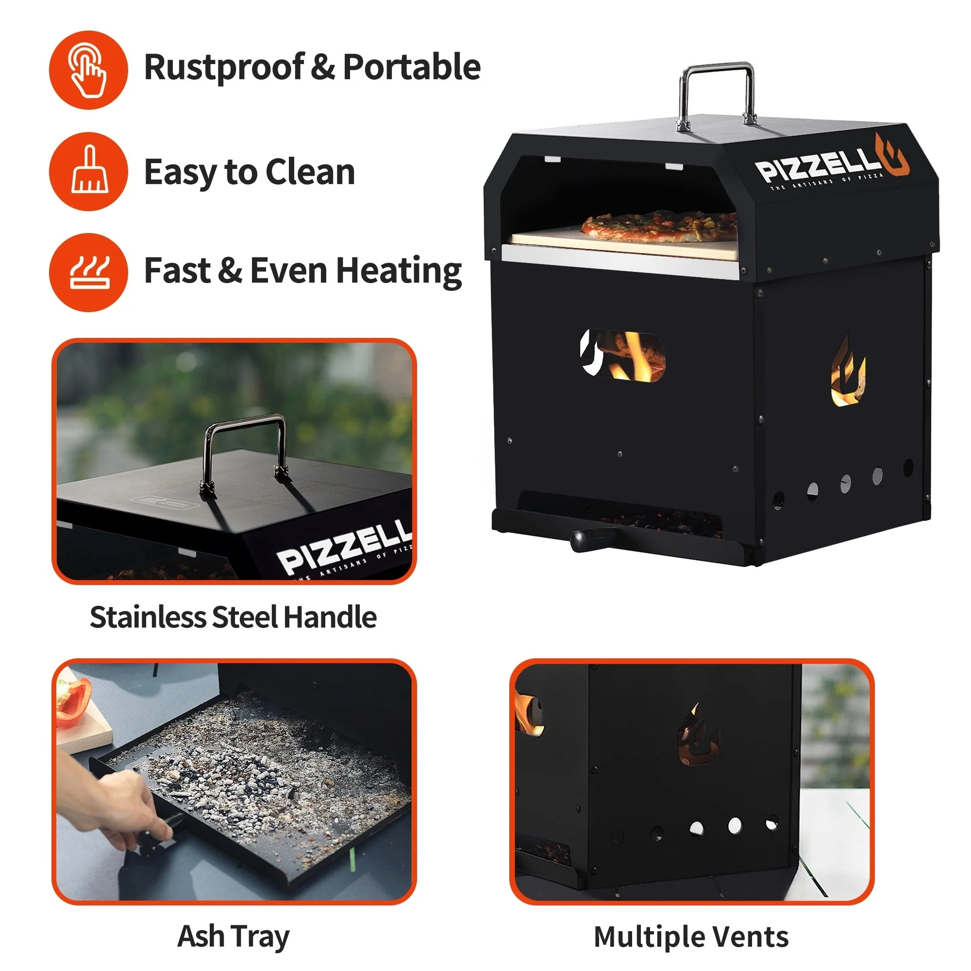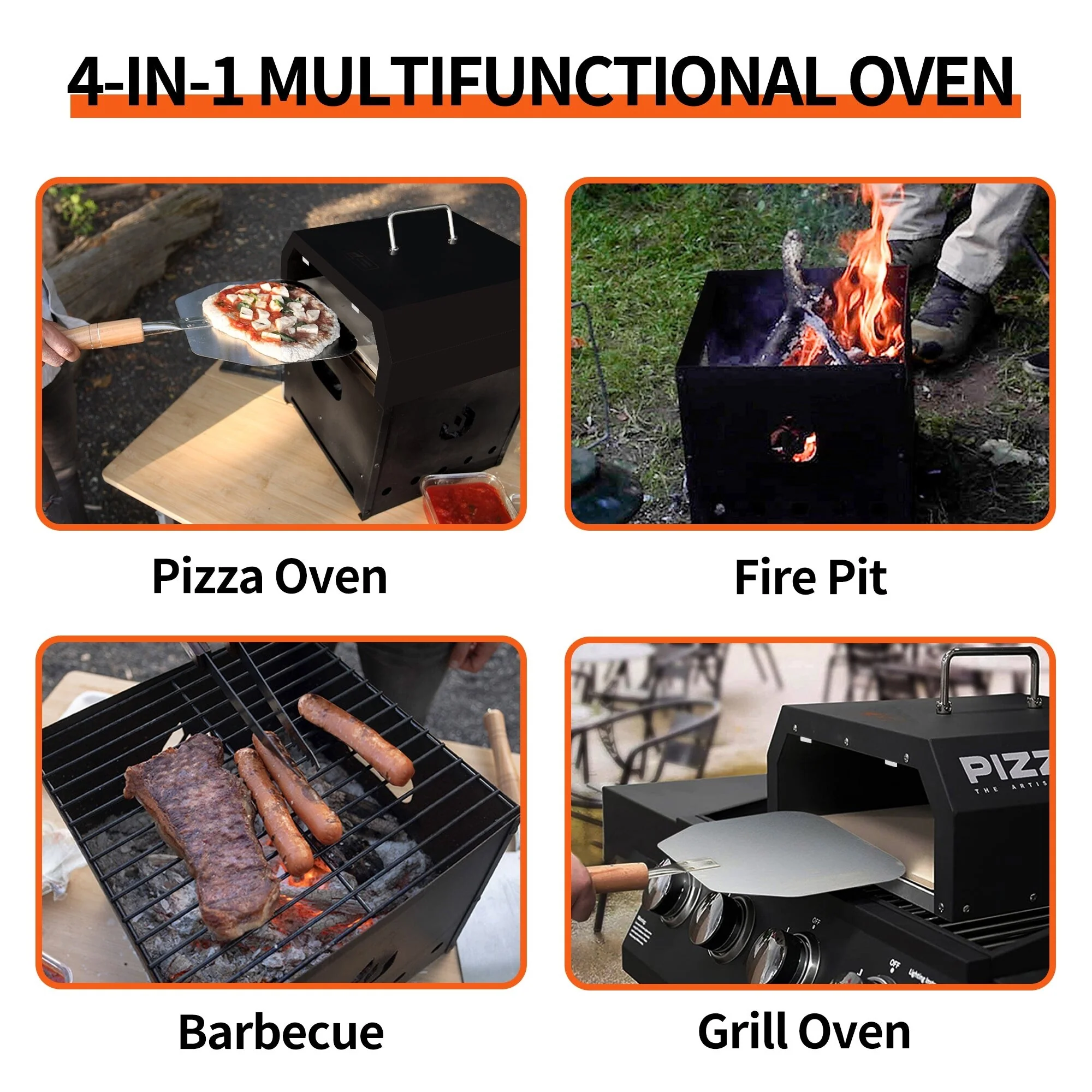 - Serve as a 12-inch standalone fire pit, a charcoal BBQ grill, a pizza baking oven and a grill oven