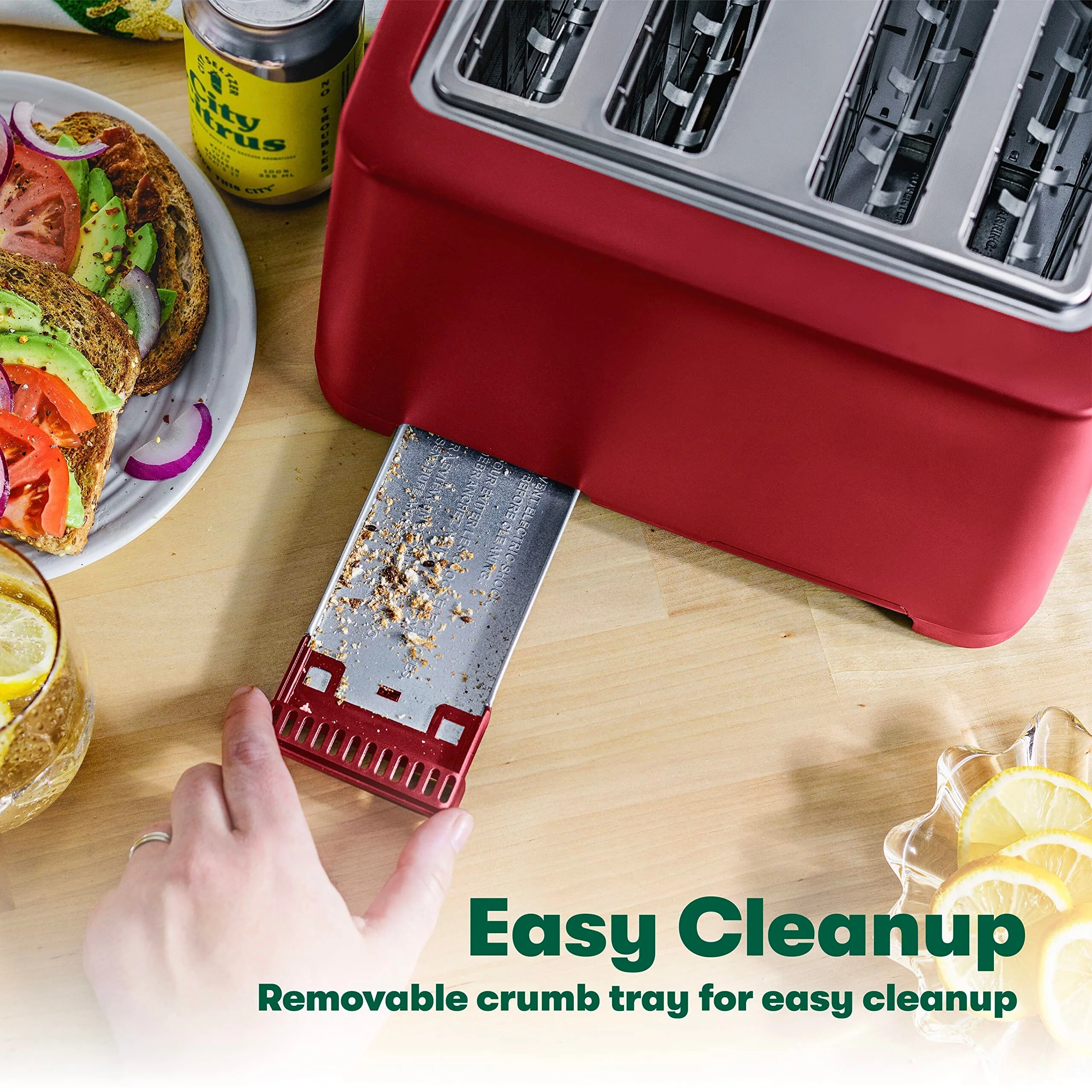 NO MORE CLUTTER - Say goodbye to cluttered countertops with this 4 slot toaster, the greatest solution for a tidy and organized kitchen. Its slender profile and slick, versatile design make it easy to, taking up minimal space on your countertop
