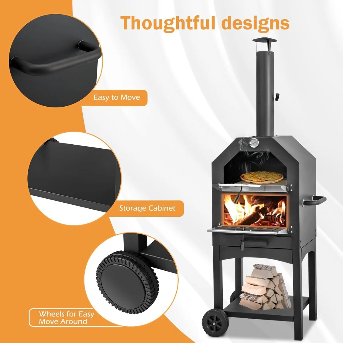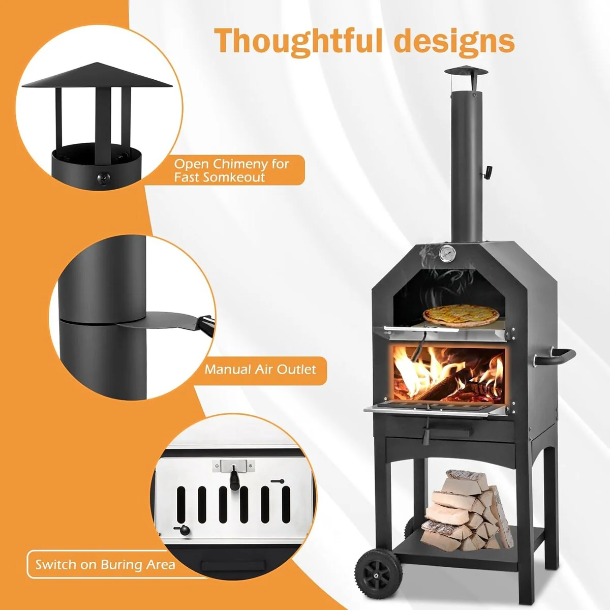 Experience the joy of wood-fired pizza wherever you go! Our patio pizza maker, complete with a premium pizza stone, delivers crispy, authentic pizzas in your backyard, at camping trips, or backyard parties. With convenient wheels, it's easily transported for outdoor adventures. Taste the difference with AECOJOY!
