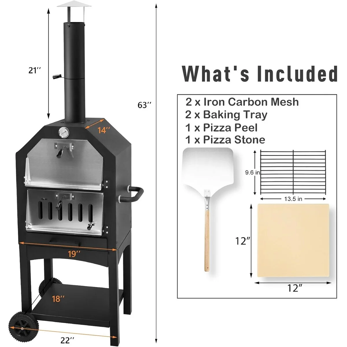 - Multi-functional Outdoor Pizza Oven:AECOJOY wood burning outdoor pizza oven is much more than a pizza oven, as well as roasting meat, steaks, fish, bread and vegetable dishes and so much more. With the 12' pizza stone, you'll get that perfect