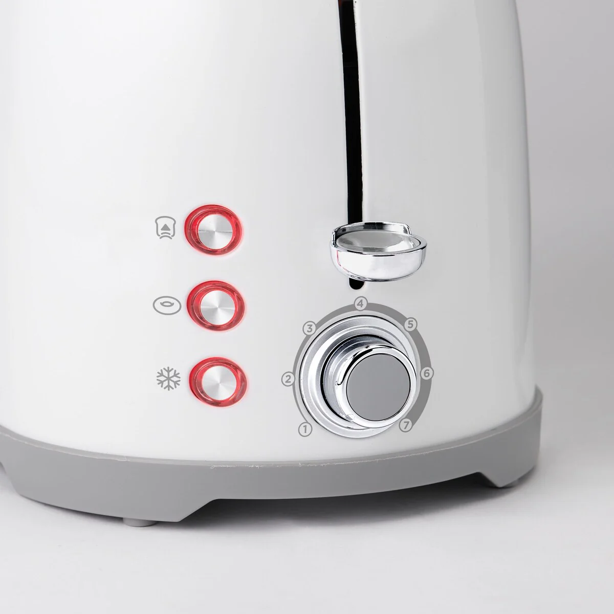 - Illuminated Button Controls: This kitchen and apartment essentials small toaster features 3 illuminated button controls for bagels, defrost function and toaster cancel button.