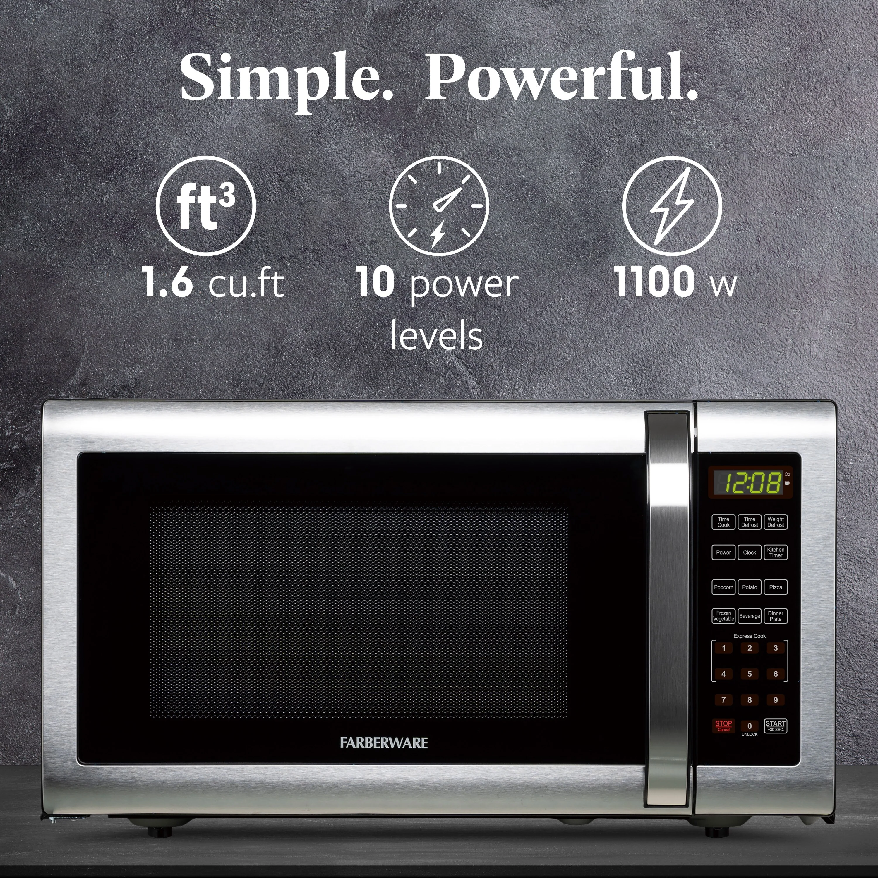 - PERFECT SIZE: Measuring 1.6 cu ft, this microwave is the ideal small-space solution that offers full-sized cooking in a compact space. It features an easy-to-clean interior and exterior and is perfect for the home or office.