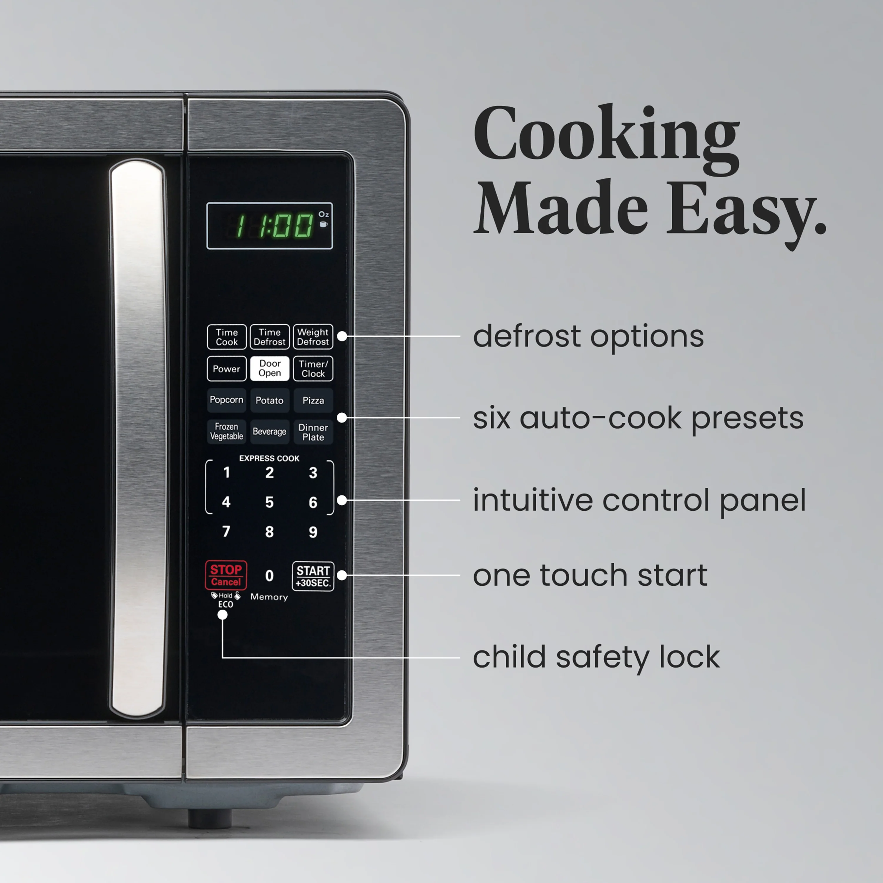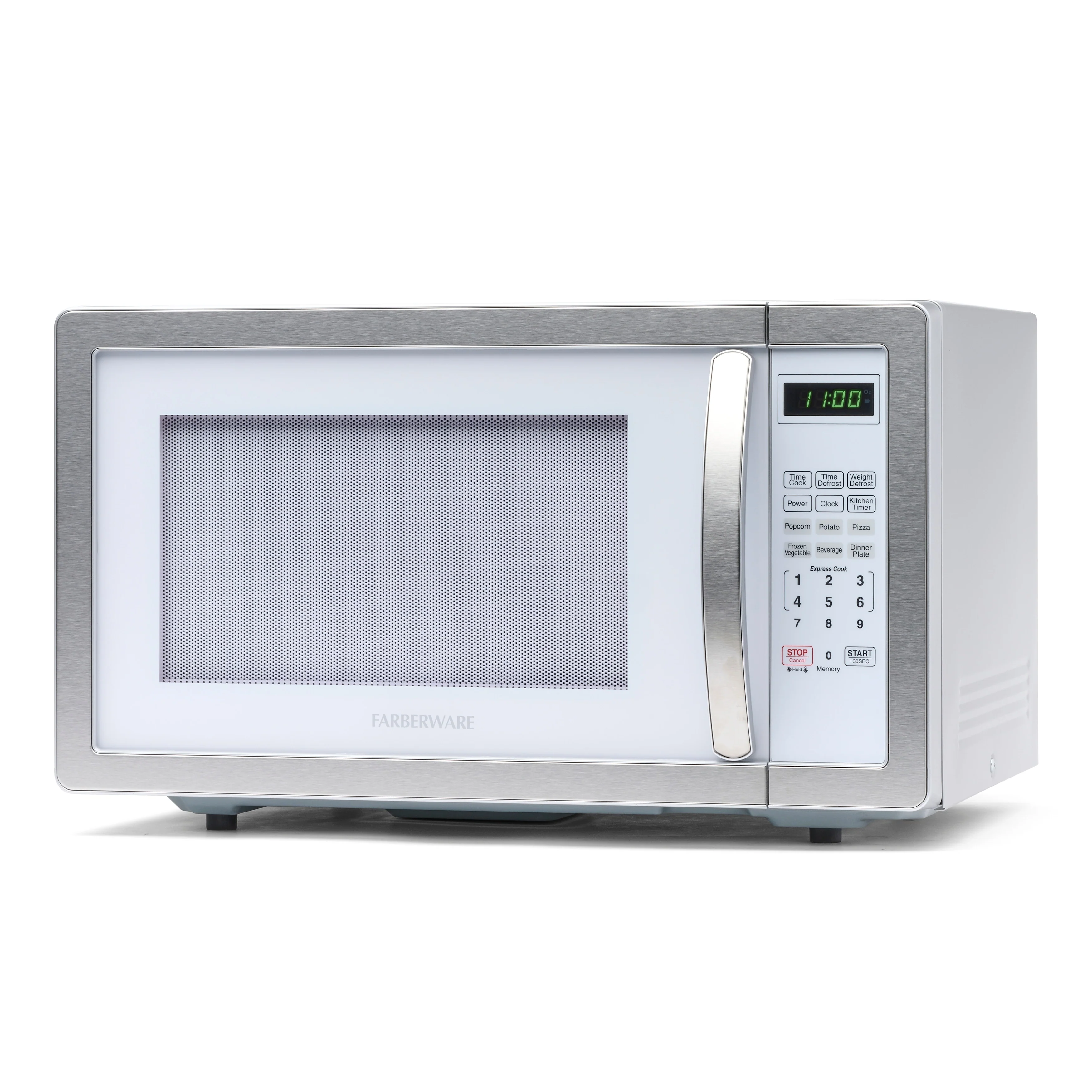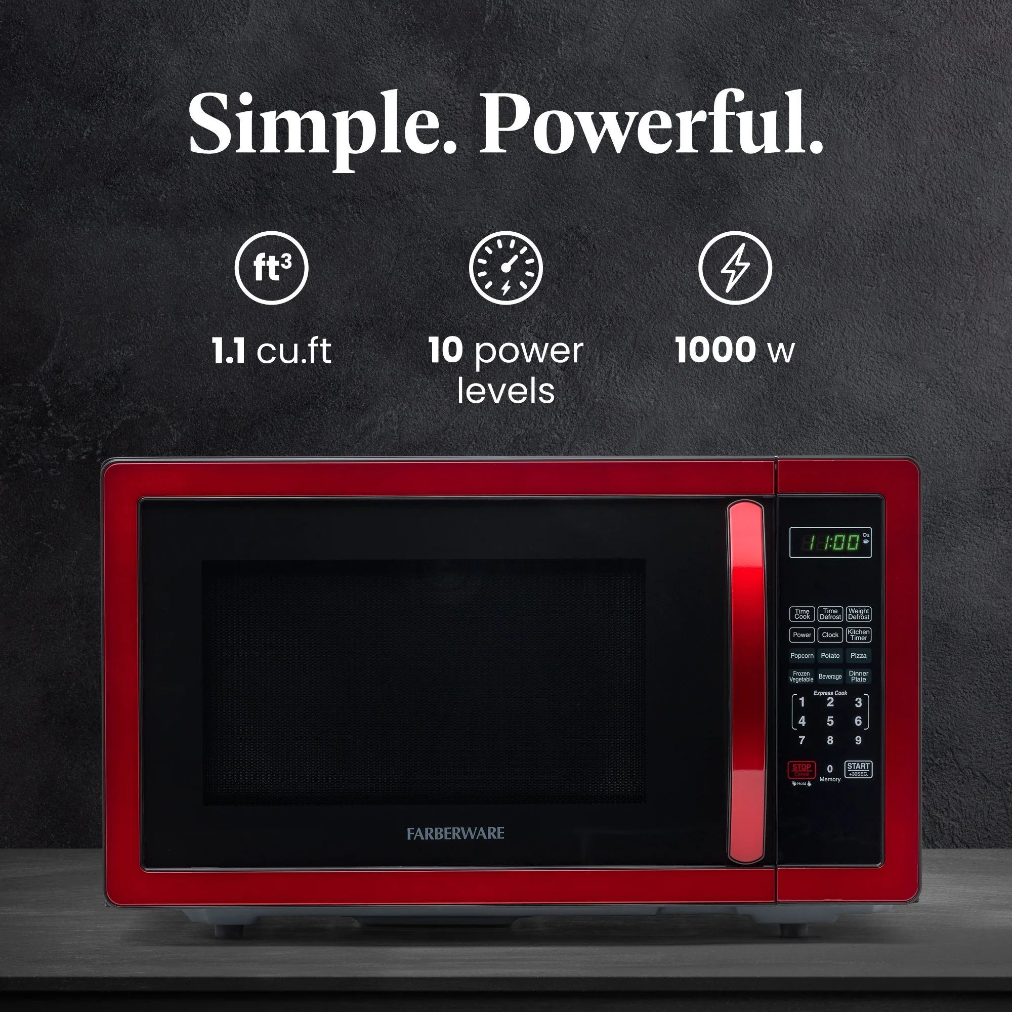 - PERFECT SIZE: Measuring 1.1 cu ft, this microwave is the ideal small-space solution that offers full-sized cooking in a compact space. It features an easy-to-clean interior and exterior and is perfect for the home or office.