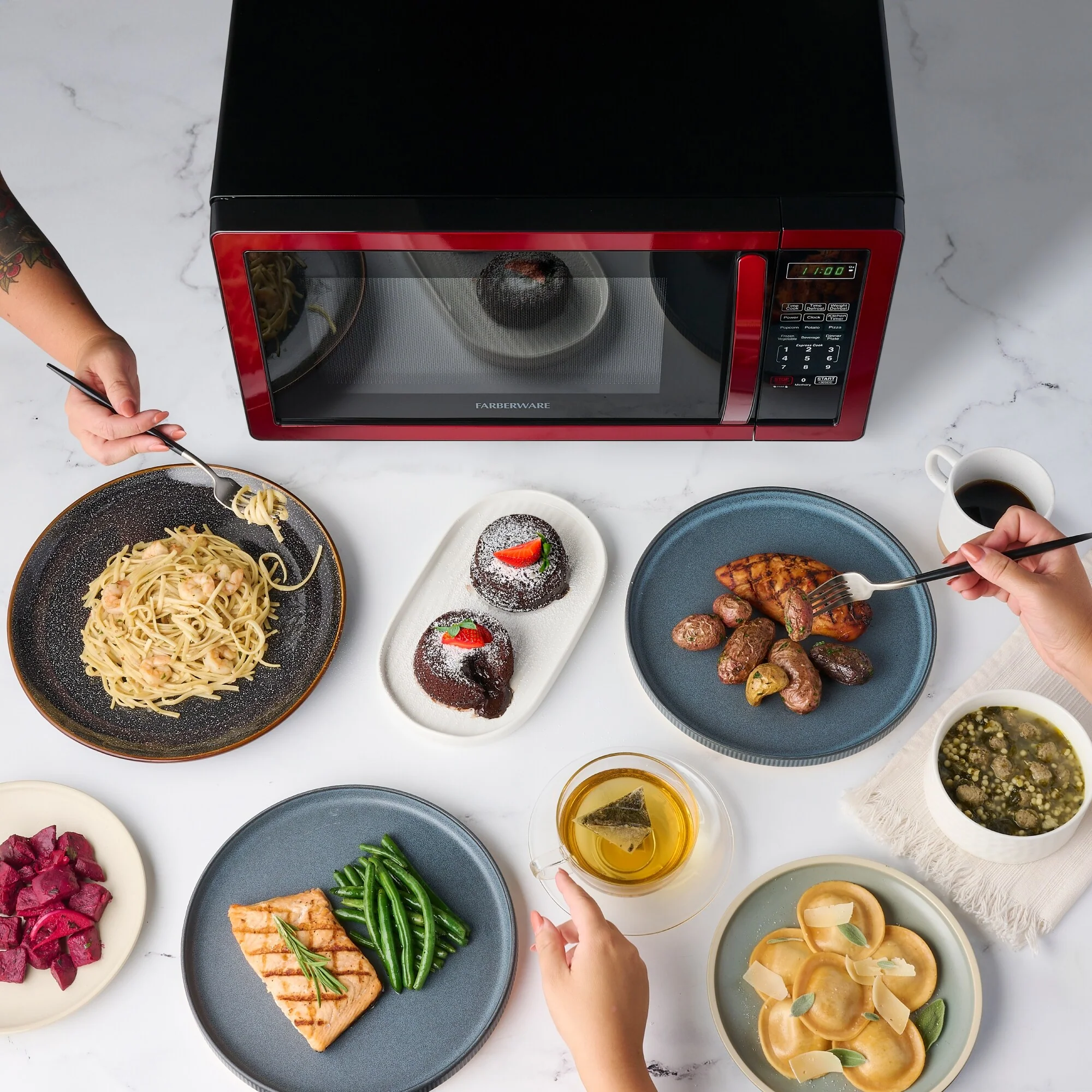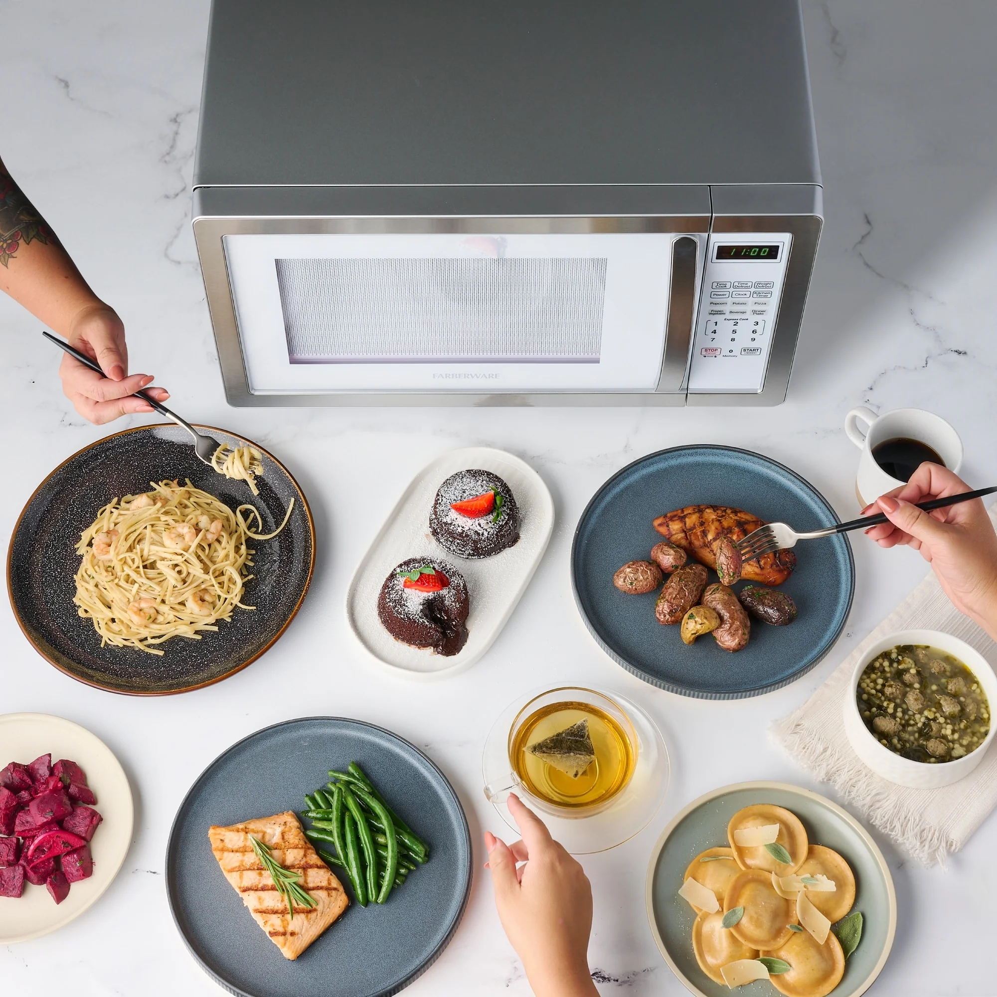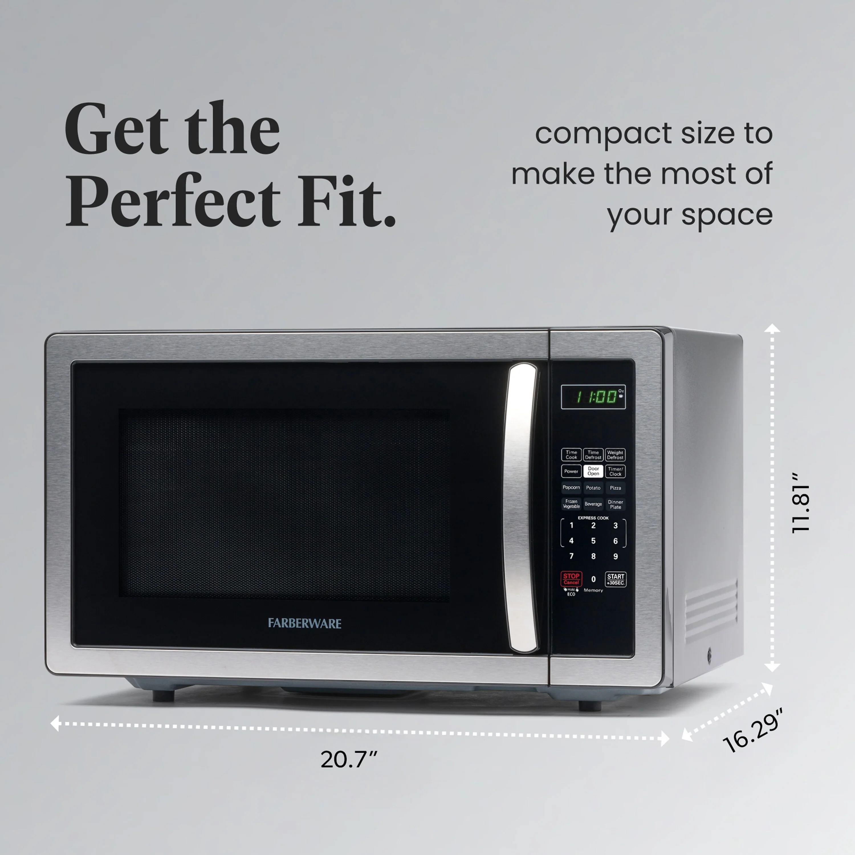 - PERFECT SIZE: Measuring 1.1 cu ft, this microwave is the ideal small-space solution that offers full-sized cooking in a compact space. It features an easy-to-clean interior and exterior and is perfect for the home or office.