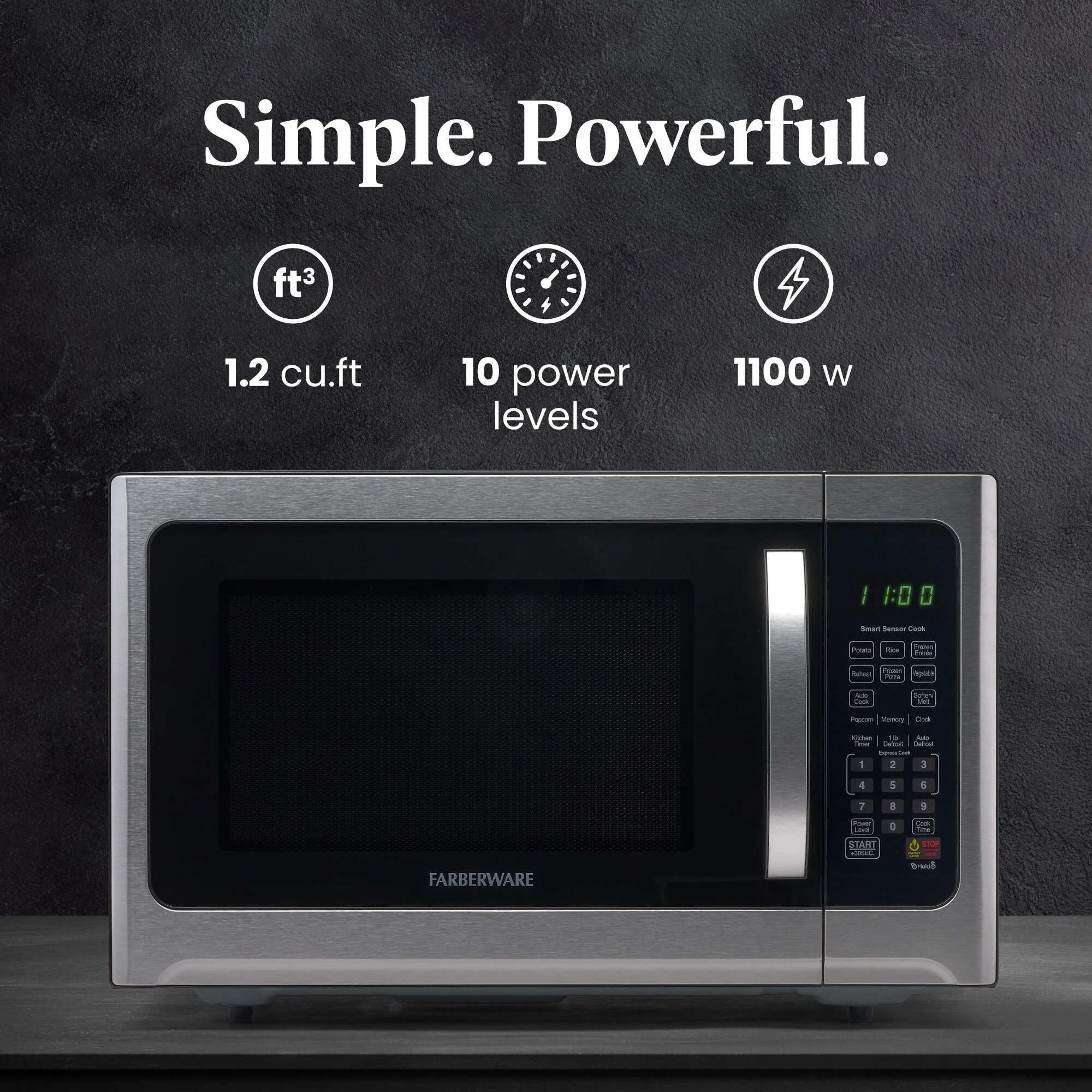 - PERFECT SIZE: Measuring 1.2 cu ft, this microwave is the ideal small-space solution that offers full-sized cooking in a compact space. It features an easy-to-clean interior and exterior and is perfect for the home or office.