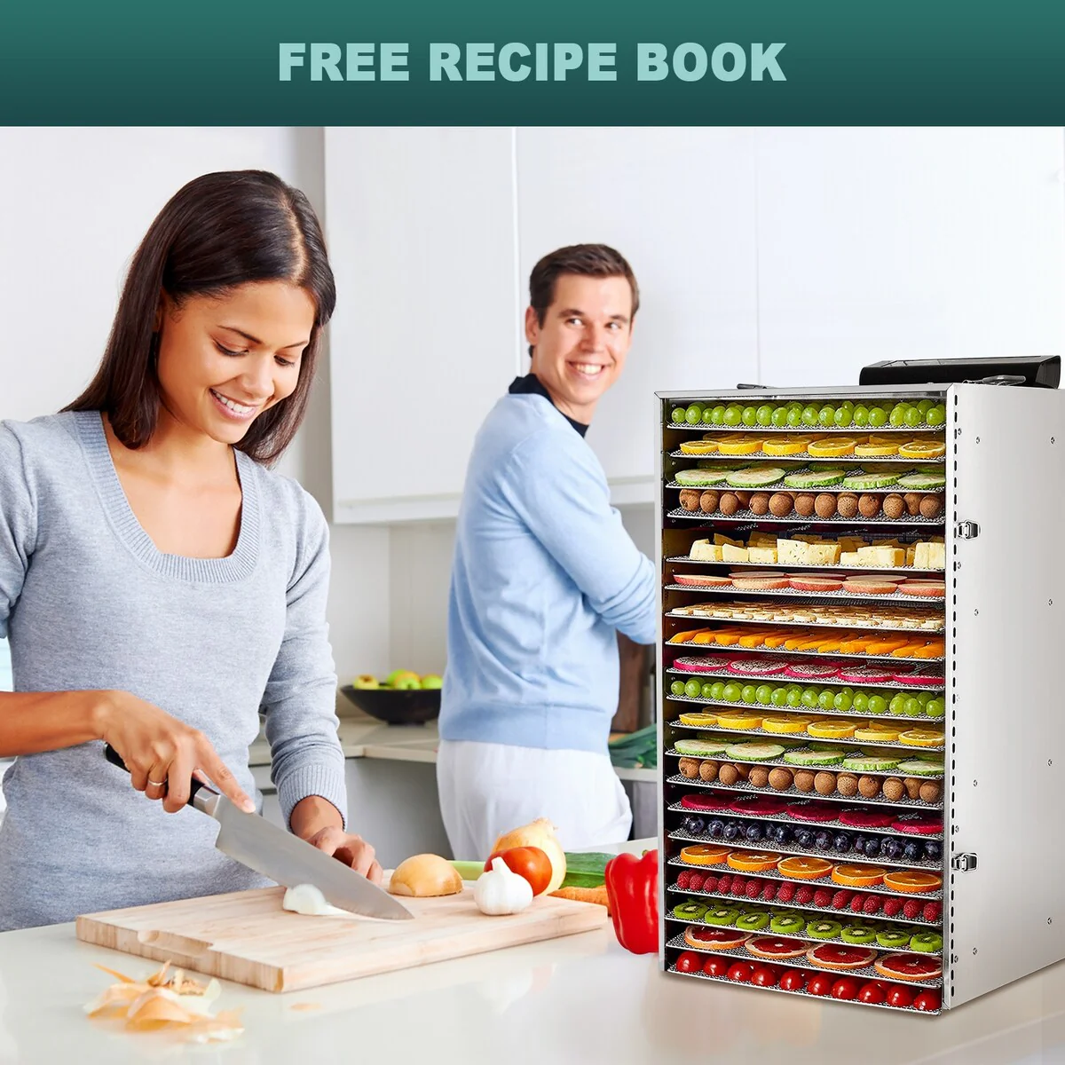 - 🍇【Simple Operation】 Put in the food, adjust the time and temperature, and wait for the food to dehydrate. We also have professional recipes, so you can easily make delicious food for family and