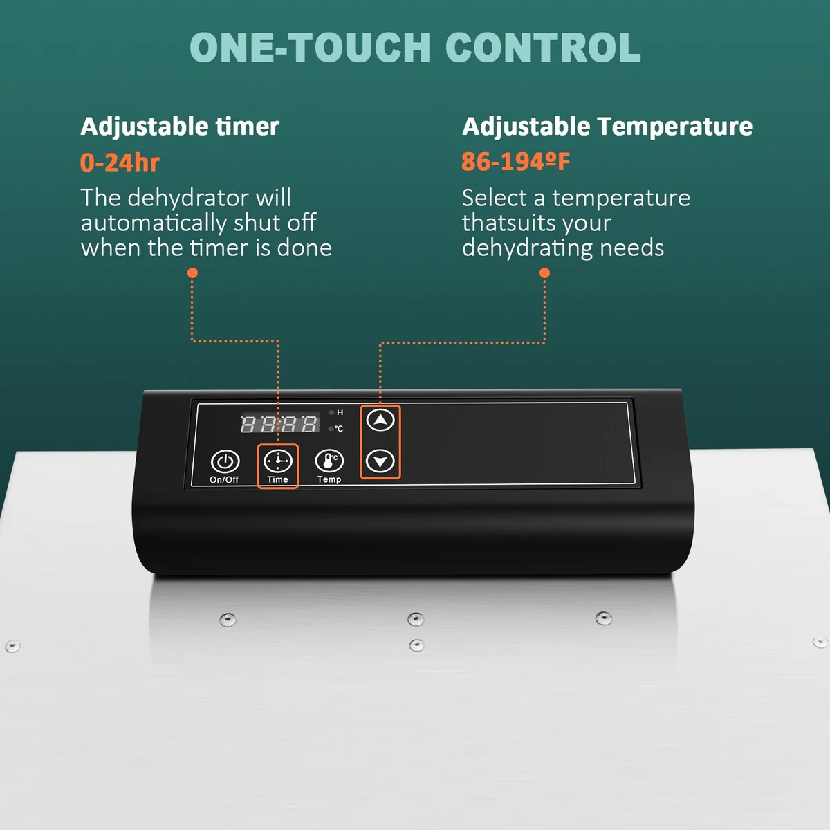 - 🍇【Temperature and Time Control 】LED touch screen control, the time setting range is 0-24 hours, and the temperature setting range is 86-194 ℉ (30-90 ℃). Long press the temperature key to switch between Fahrenheit and Celsius, which can be set according to daily habits. The drying time and temperature are different according to the thickness and size of the food.