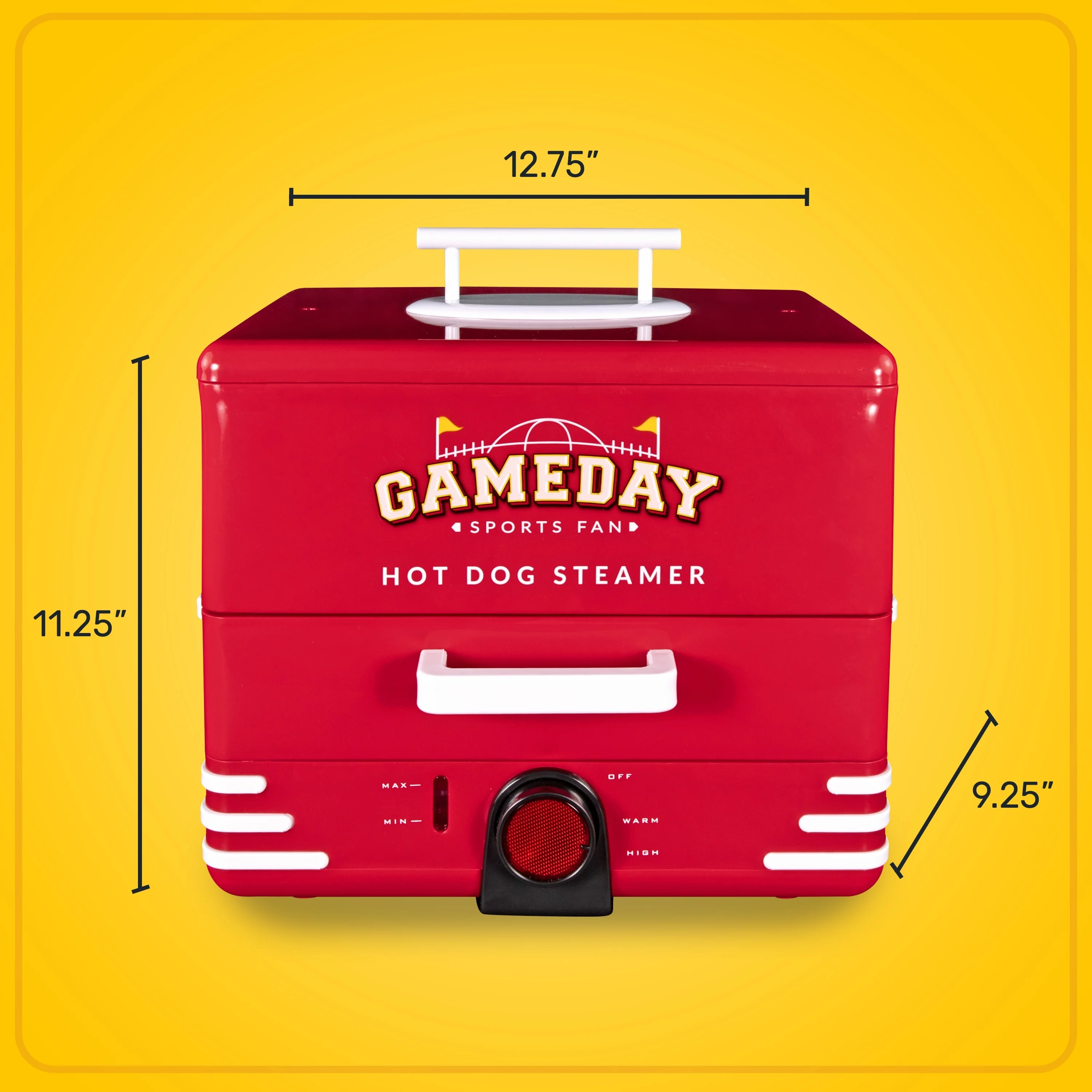 Bring everyone together to enjoy the game, great food, and camaraderie! This hot steamer allows you to cook up to 20 dogs and heat 8 buns at a time, pleasing the crowd with excellent food. You can also cook veggies, pot stickers, and more. Cheers to delicious food and good times.