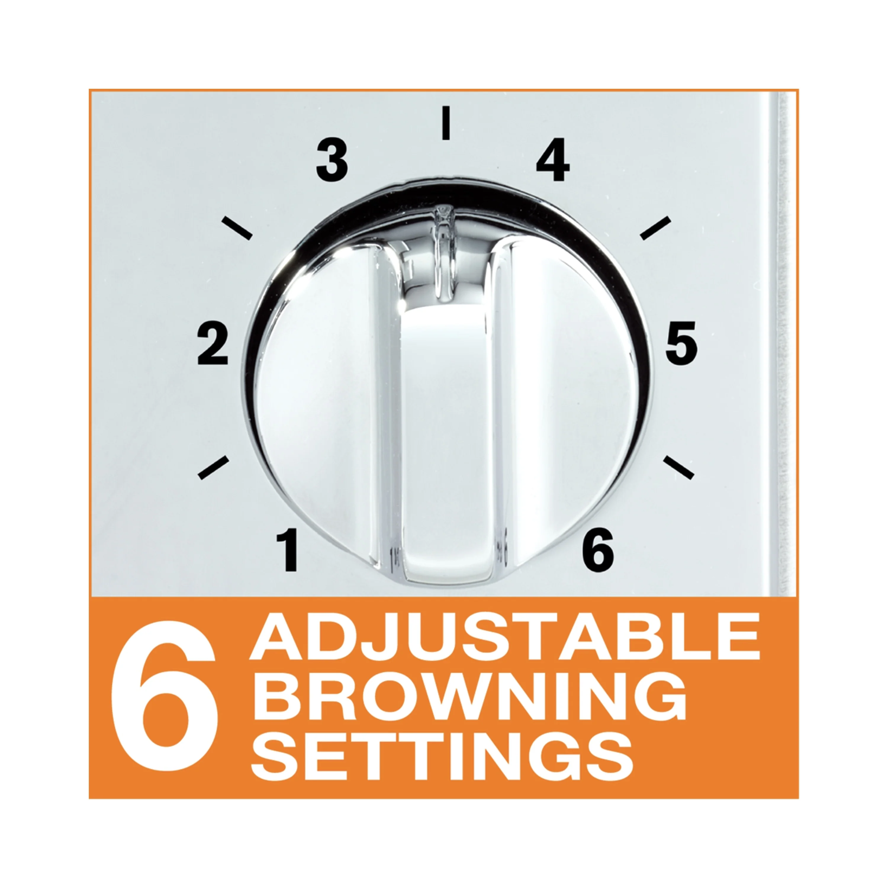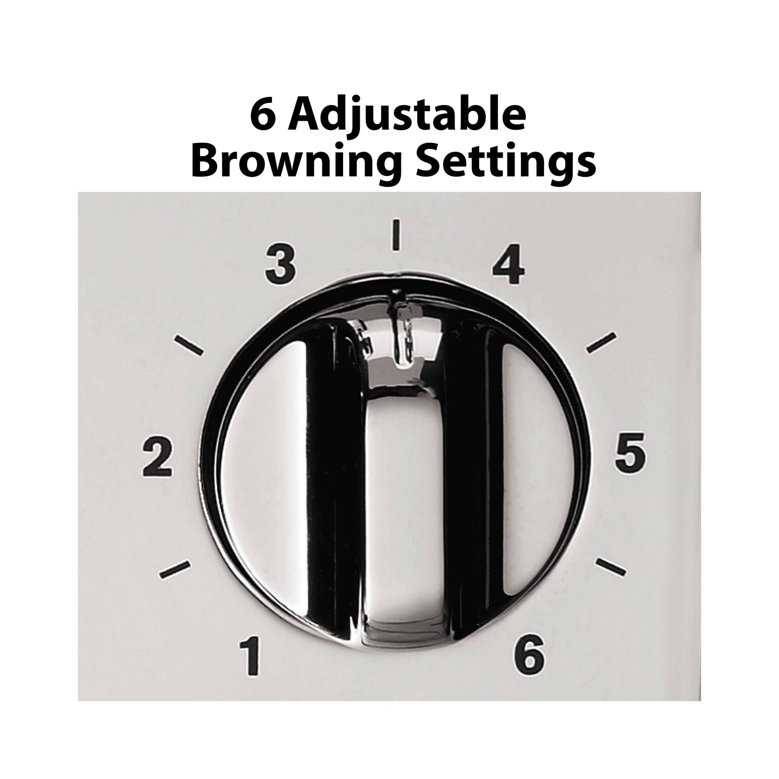 - Six different browning levels provide full control and customization, for outstanding toast just the way you like it. Adjust the browning for optimal results on all types of bread.