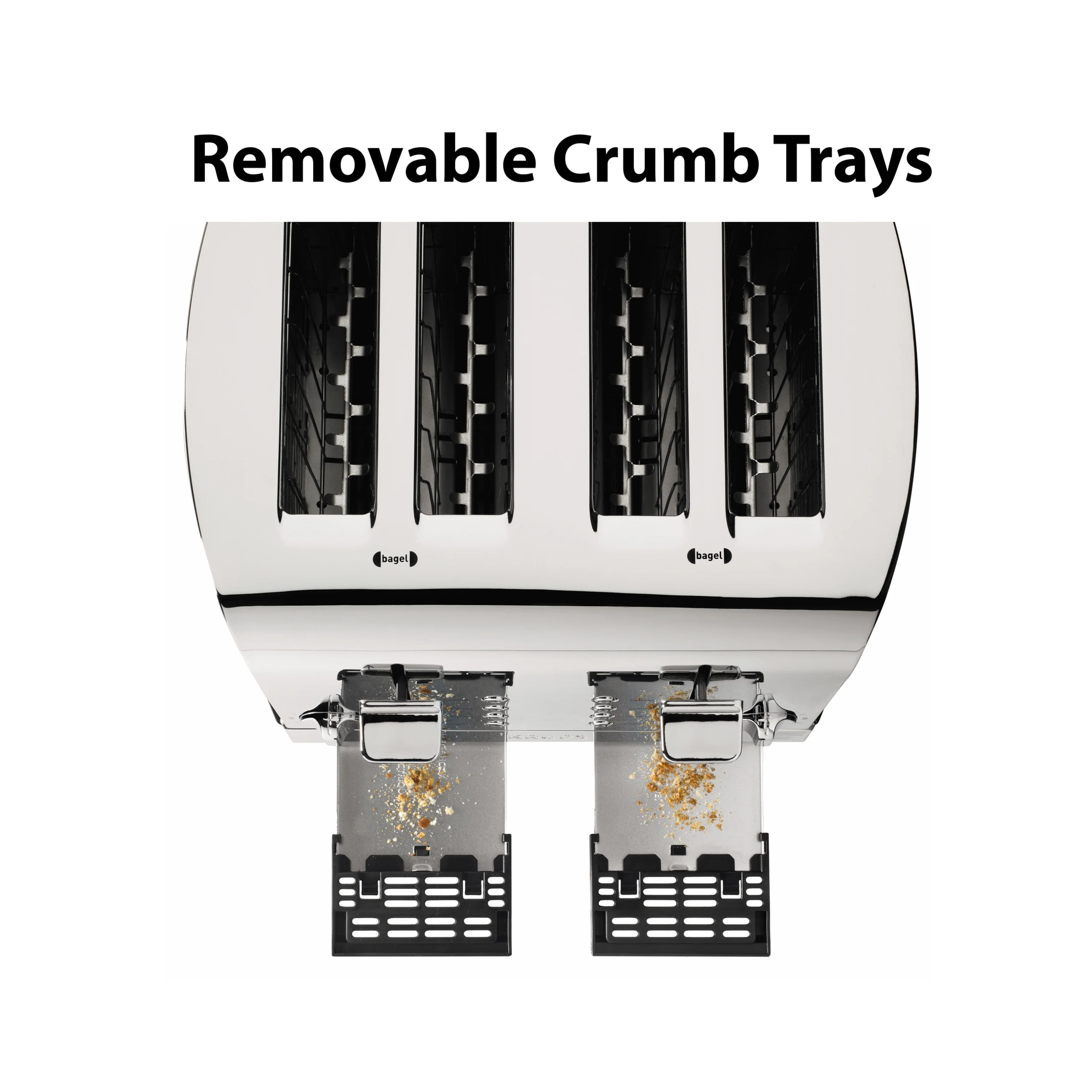 - The highly convenient design features a removable rear crumb tray for cleaning and emptying crumbs with absolute ease, providing a cleaner and more hygienic toaster day by day.
