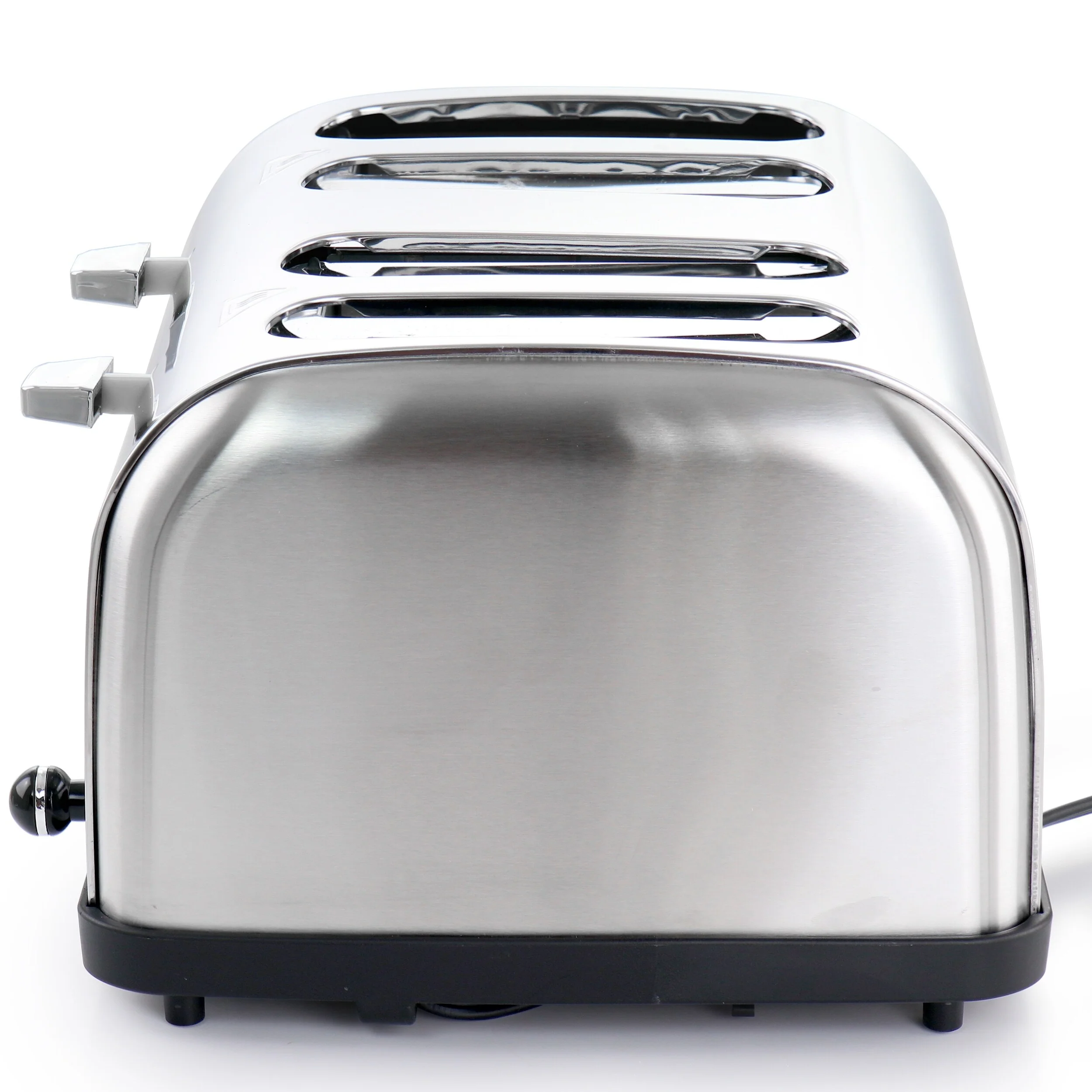 Create a delicious breakfast with the MegaChef 4 Slice Stainless Steel Extra Wide Slot Toaster. Toast and defrost all in one machine with one touch settings. Dual control panels are twice as fast, allowing you to create a breakfast for the entire family in a matter of minutes. 1.5 Inch wide slots are ideal for Waffles, Bagels, English Muffins and Texas Toast, breakfast jut got easier! Features 6 adjustable variable browning settings perfect for all your different breakfast creations. Stainless steel housing with Rose Gold finish is easy to clean and care for and matches every kitchen decor. Includes convenient slide out crumb tray allowing for quick and easy cleaning.