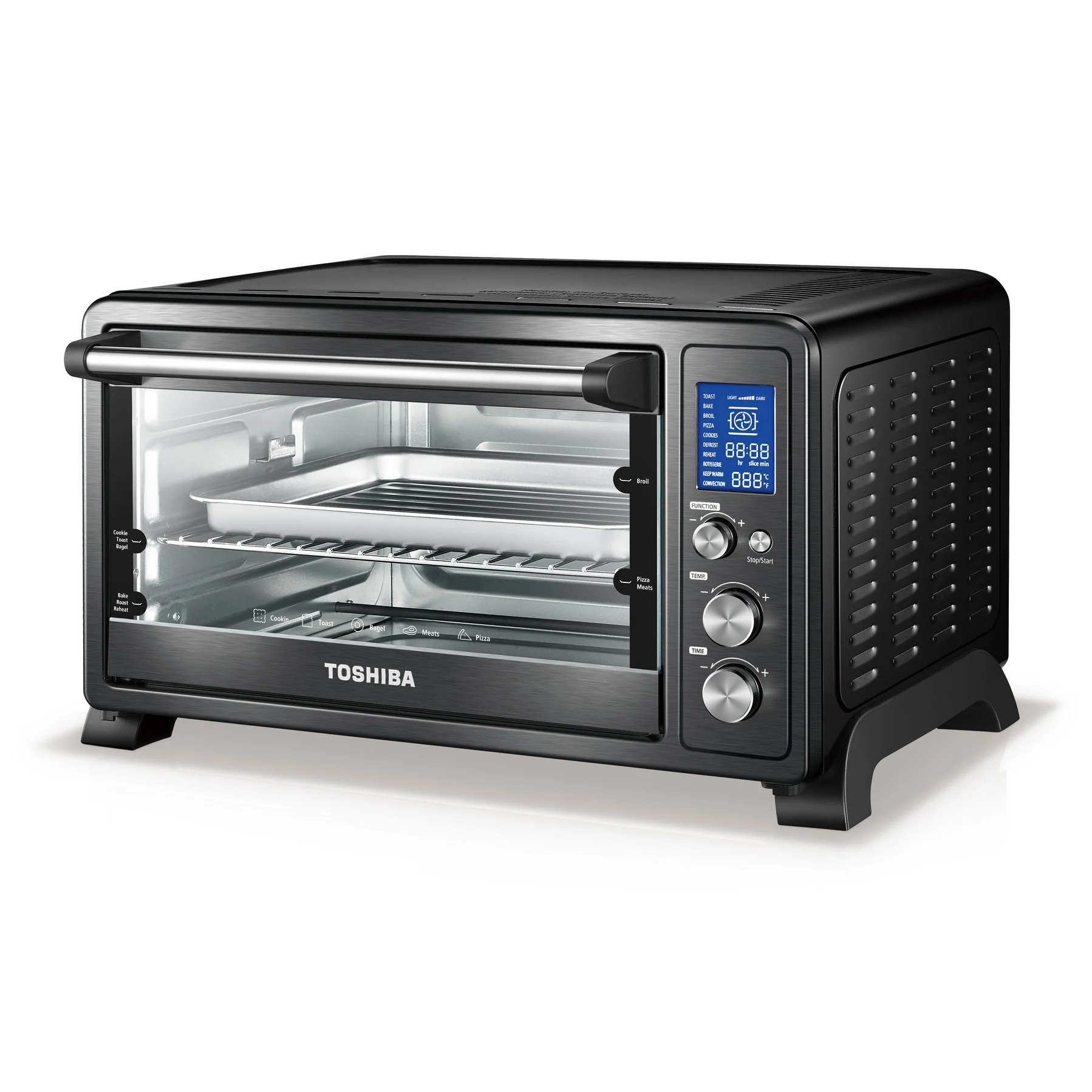 - Multifunctional: Toast, broil, bake, pizza, cookie, defrost, reheat, rotisserie, keep warm and convection