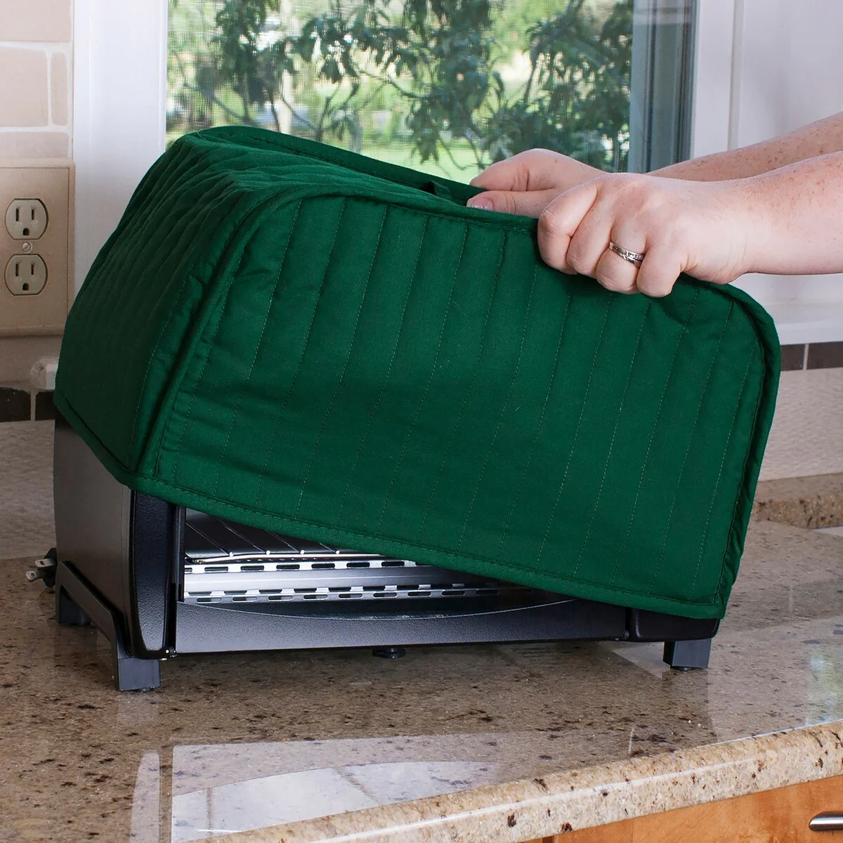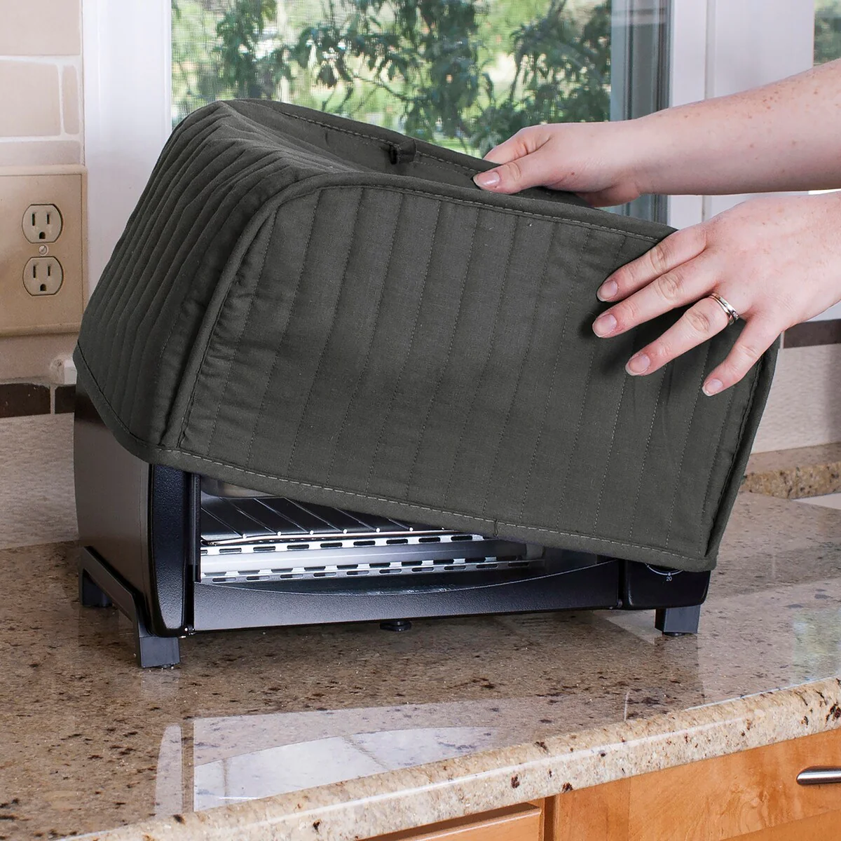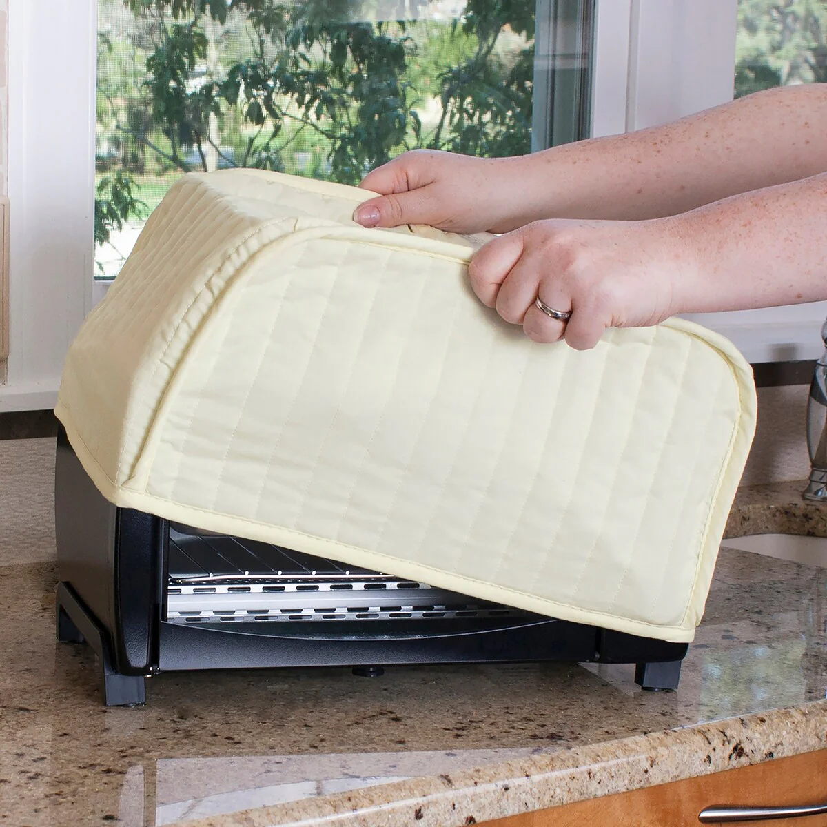 Keep your favorite kitchen gadget looking in tip-top shape with this RITZ Toaster Oven/Broiler Cover crafted to keep your appliance clean and damage-free. This handsome quilted cover measures 14.5 in. by 8 in. by 10.5 in. (36 cm by 20 cm by 26 cm) and is designed to accommodate most standard toaster ovens and broilers, slipping on and off with ease. Fashioned from a polyester/cotton blend, this durable cover will keep your appliance free of scratches and scuff marks when stored. Check out the entire RITZ line of appliance covers to keep all of your favorite kitchen devices in pristine condition. Machine washable.Appliance not included