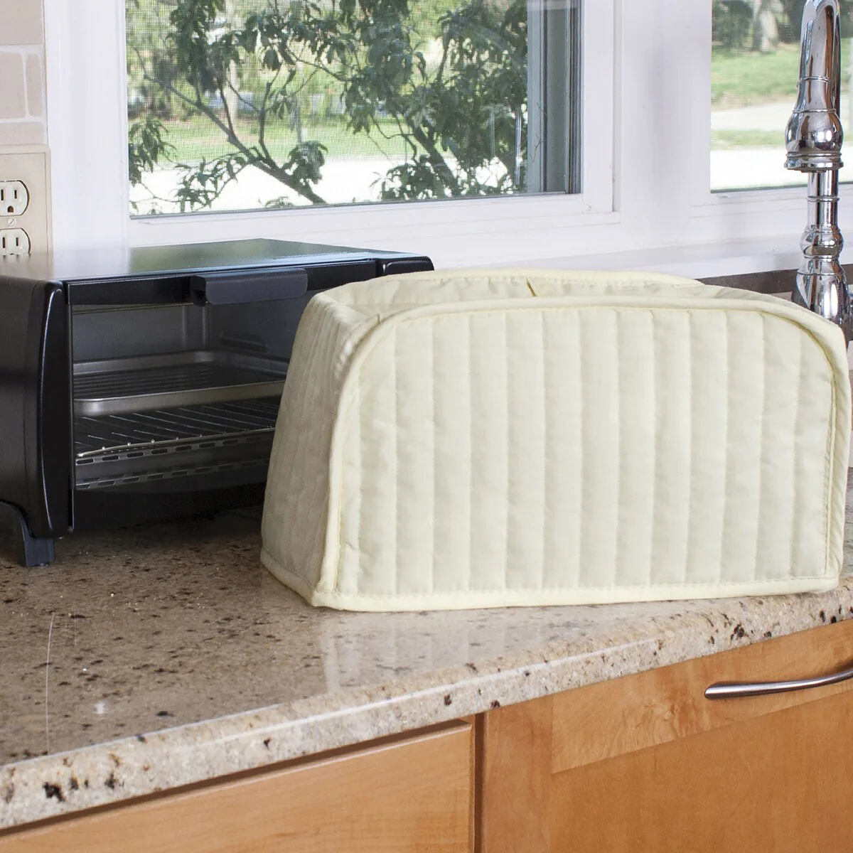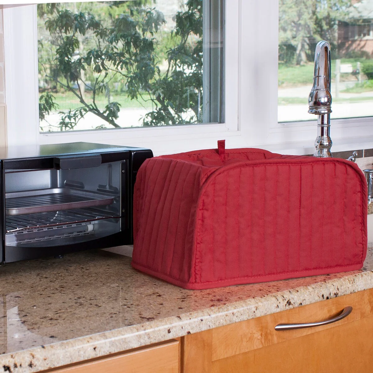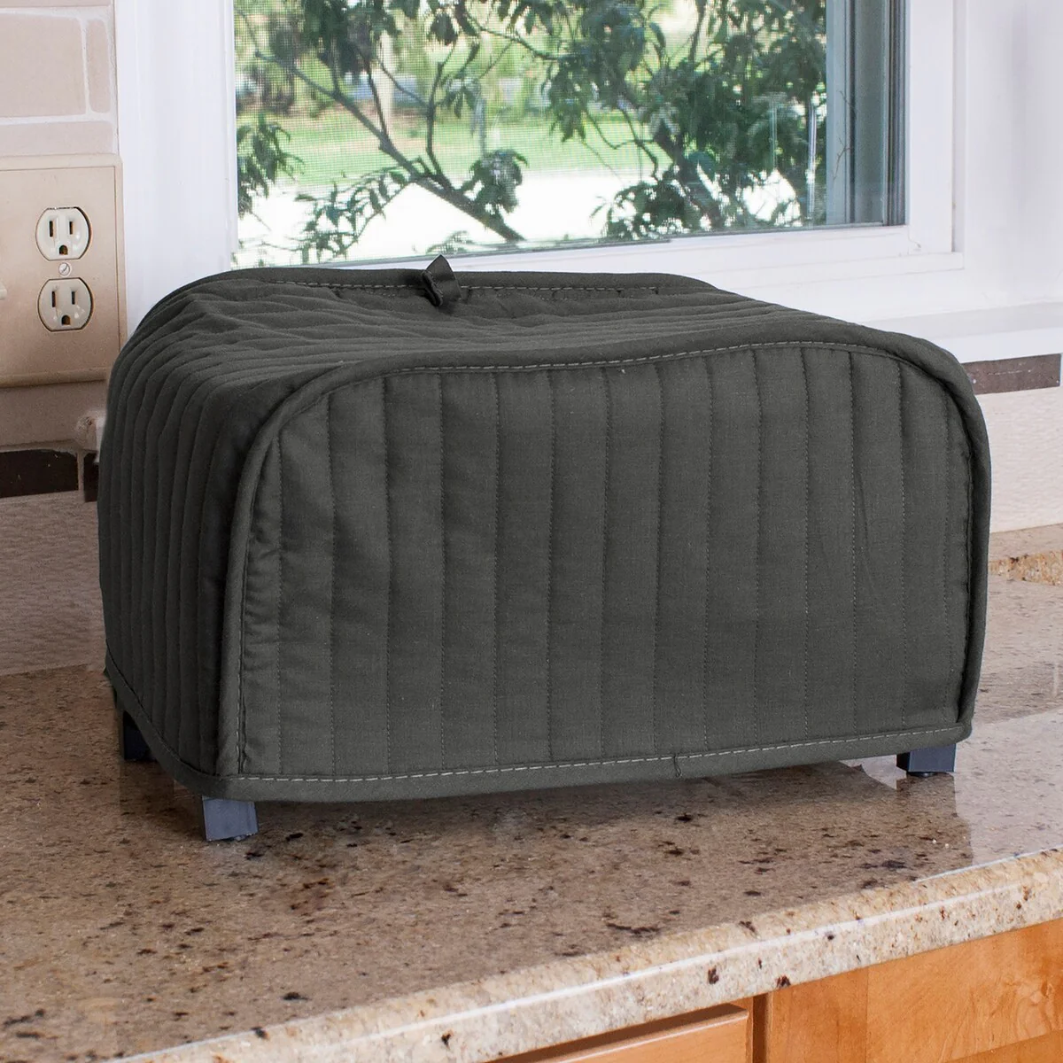 Keep your favorite kitchen gadget looking in tip-top shape with this RITZ Toaster Oven/Broiler Cover crafted to keep your appliance clean and damage-free. This handsome quilted cover measures 14.5 in. by 8 in. by 10.5 in. (36 cm by 20 cm by 26 cm) and is designed to accommodate most standard toaster ovens and broilers, slipping on and off with ease. Fashioned from a polyester/cotton blend, this durable cover will keep your appliance free of scratches and scuff marks when stored. Check out the entire RITZ line of appliance covers to keep all of your favorite kitchen devices in pristine condition. Machine washable.Appliance not included