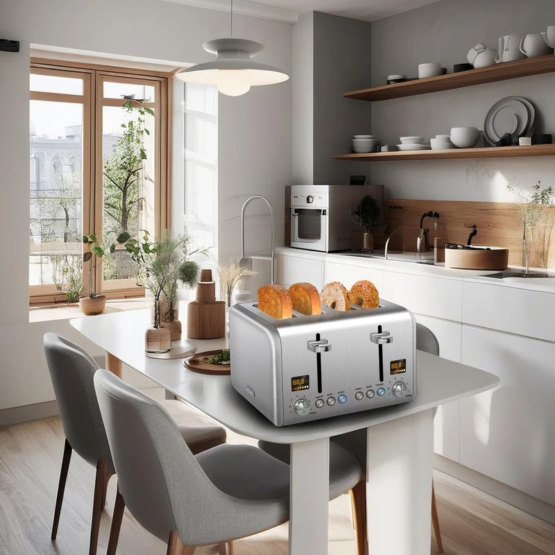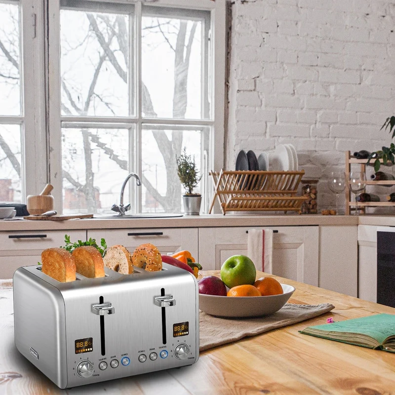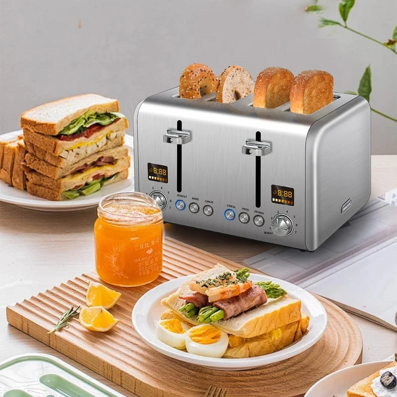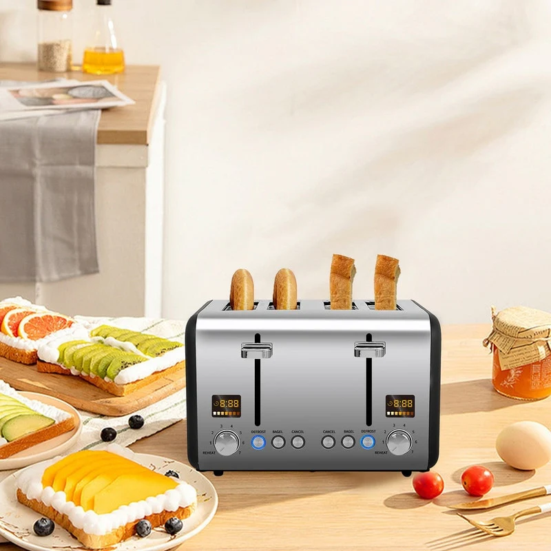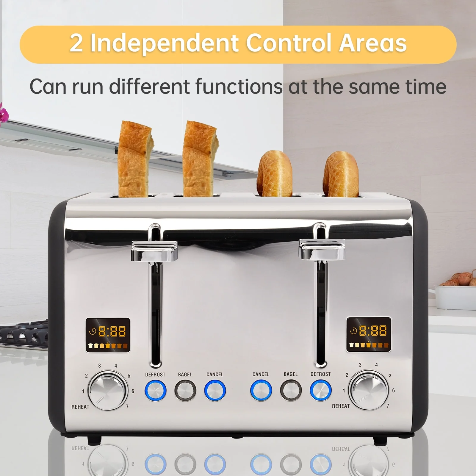 - 【Independent Control】 : This 4 Slice toaster have dual independent control areas. You can bake two different types of bread at the same time and choose different functions and shade settings for them. Getting 2 kinds of delicacies at the same time saves you more time.