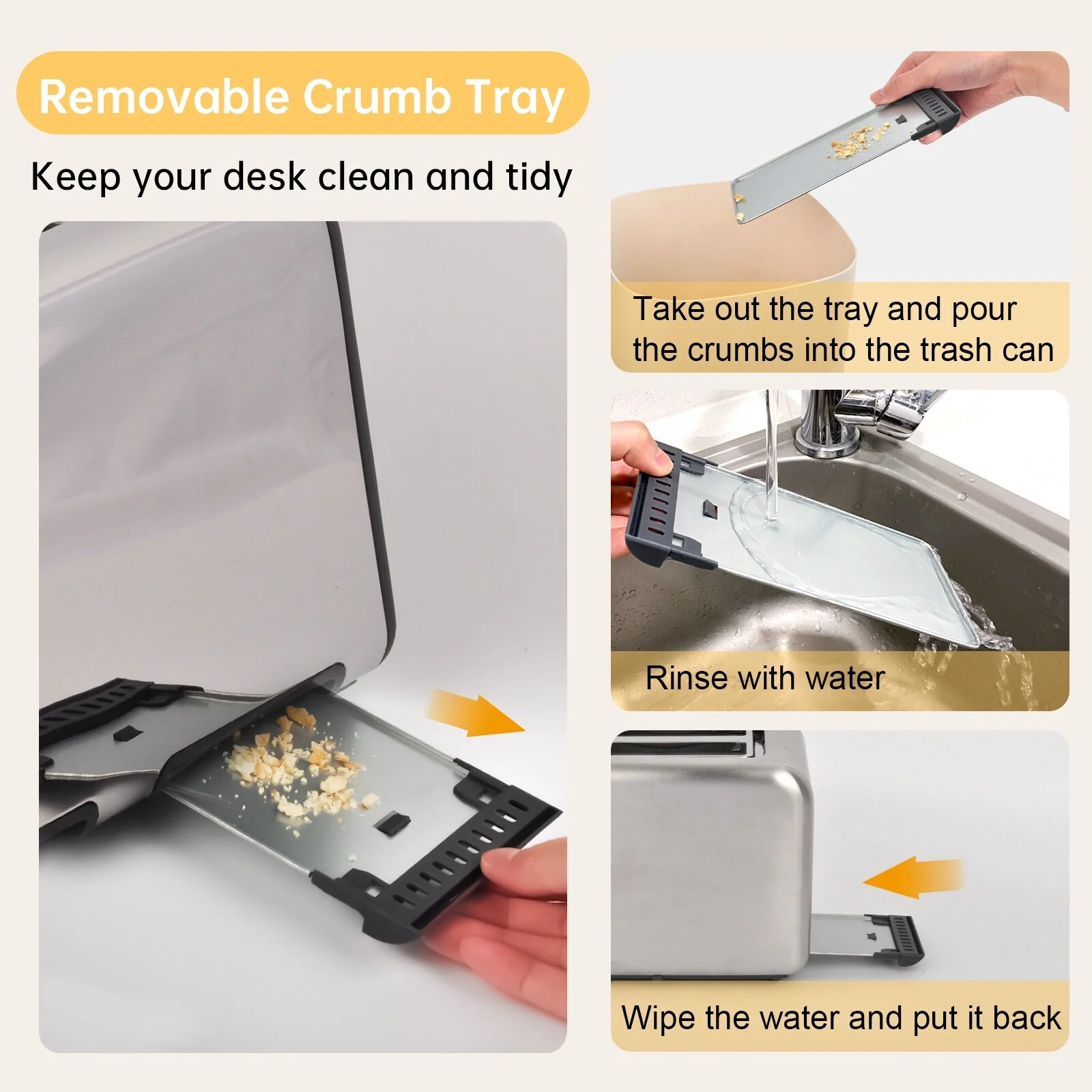 - 【Easy Operation & Cleaning】: 1.5'' extra wide slots can accommodate different types and thicknesses of bread including white bread, bagels, English muffins, etc. The precise knob of bread toaster will take you to the correct settings you want to choose. Removable crumb tray helps you collect and dump falling crumbs to avoid staining your desktop.