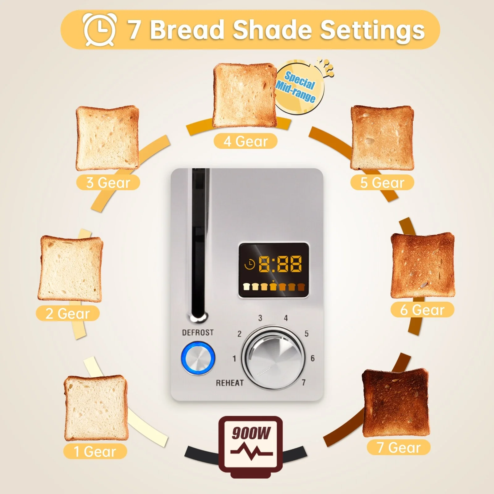 - 【Special Mid-range】: 7 Bread Shade Setting provides 7 different kinds of bread from light yellow to deep dark. Compared to regular toasters, our stainless steel toaster has a perfect 7 shade settings. The specially developed medium setting--4 gear, can bake delicious bread that is not too dry but full of burnt flavor.