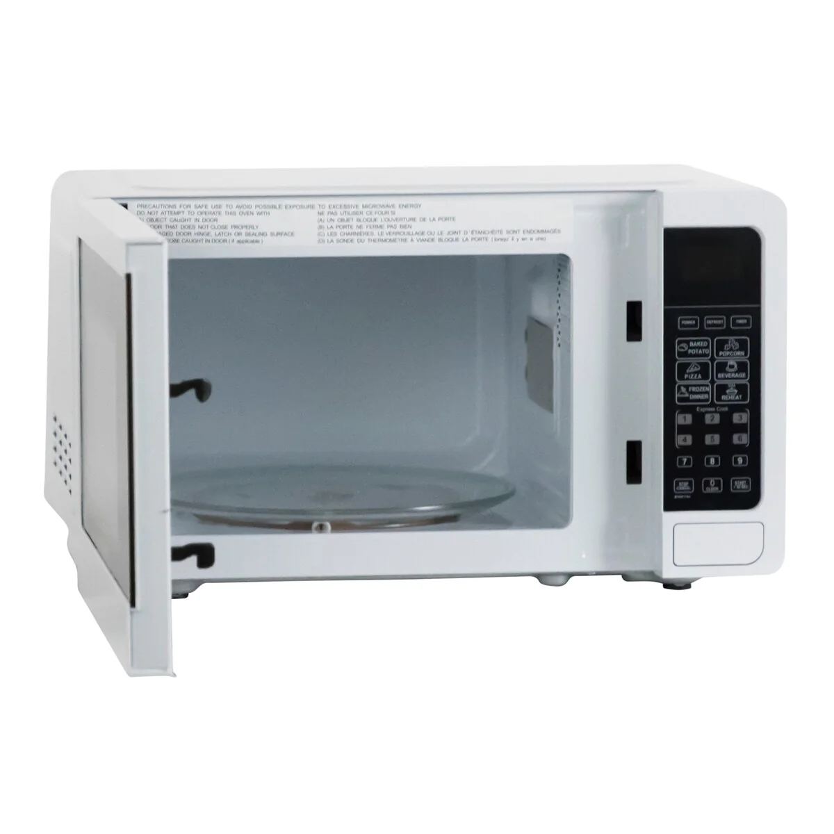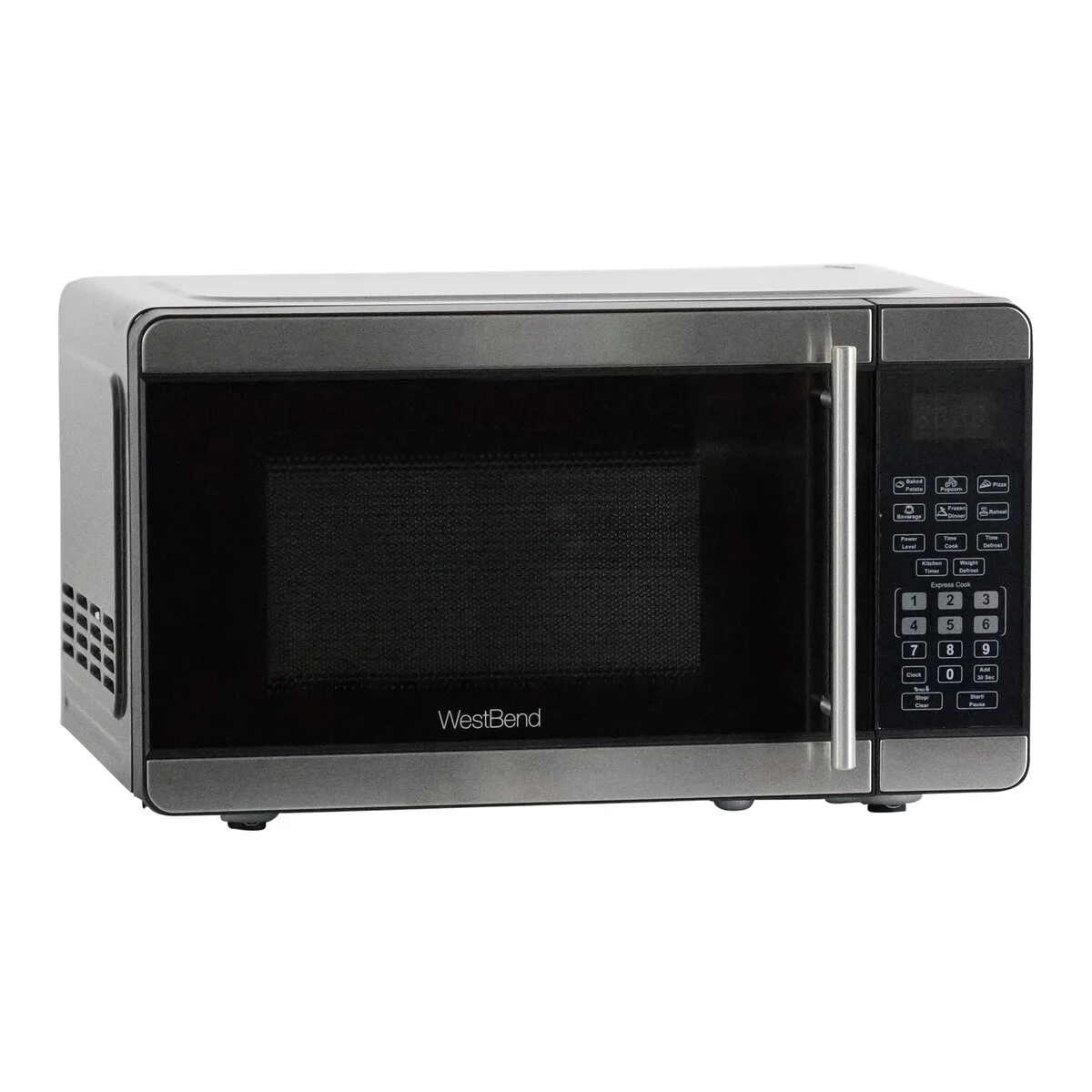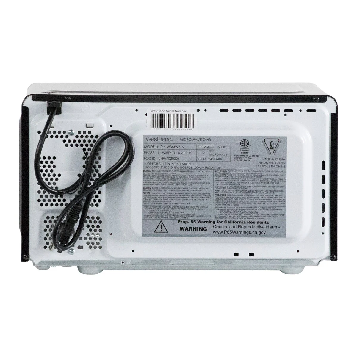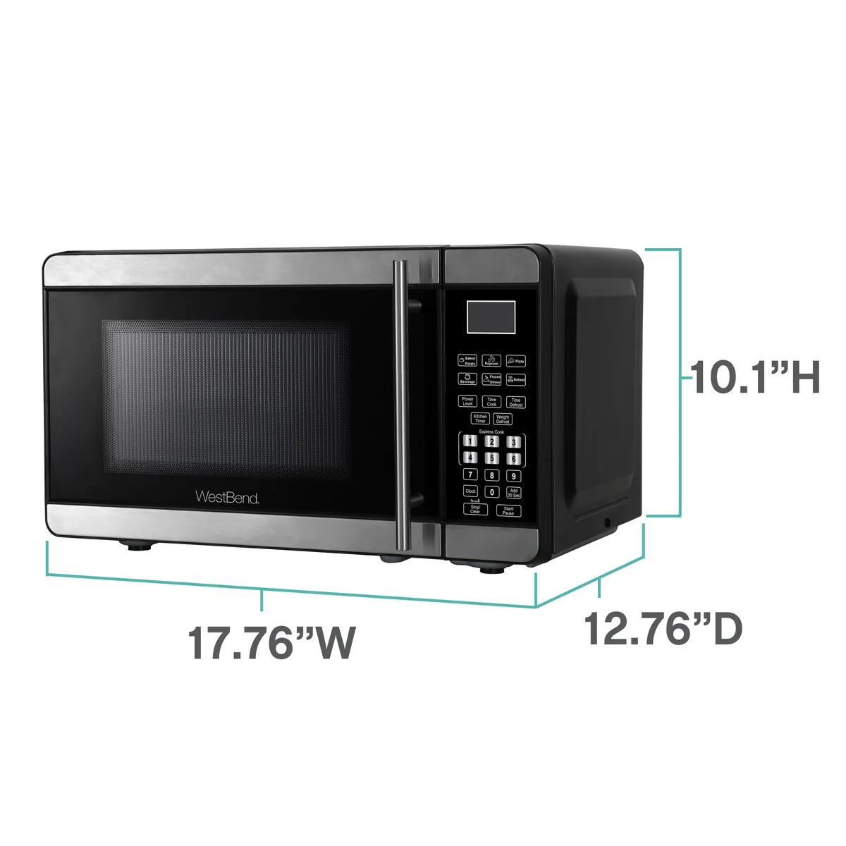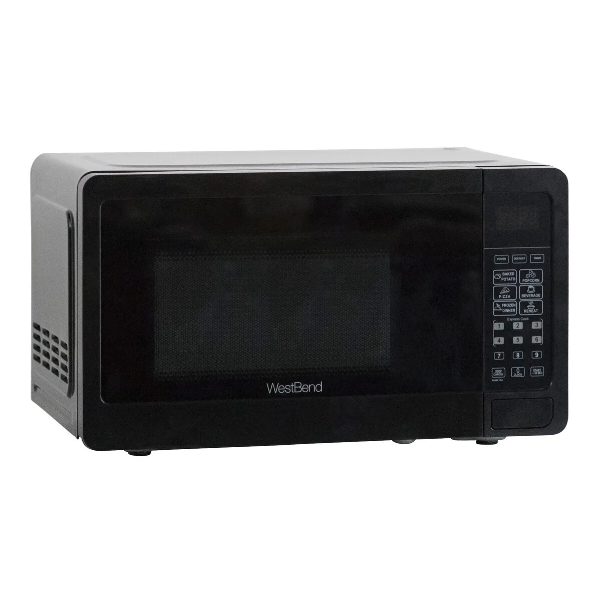 Save counter space with this 0.7 cubic foot microwave oven from West Bend. With its compact footprint, this countertop microwave oven is ideal for the dorm, man cave, office, studio apartment, RV, tiny home, rental room, condo, vacation home or anywhere you need to cook food fast. This small microwave features 700 watts of cooking power, 10 power levels, defrost options and a timer. This white microwave has an electronic control panel and one-touch cooking programs with pre-programmed times for favorites like pizza and popcorn. A turntable with a glass tray ensures even heating. You can even easily add 30 seconds of cook time with the press of a button. Defrost meat for a meal, prepare a snack or reheat last night's leftovers quickly and easily in small spaces with this compact microwave oven from West Bend.-0.7 cu ft capacity offers ample space for heating up a variety of foods-700 watts provide plenty of power to heat your food-Electronic control panel is easy to read-Easily cook your favorites with six pre-programmed cooking options including baked potato, popcorn, pizza, beverage, frozen dinner and reheat-Defrost food quickly and easily with the speed defrost setting-Cook and defrost foods by weight-Integrated kitchen timer helps you stay on schedule while preparing meals-Rotating glass turntable helps cook food evenly-Easily add 30 seconds of cooking with the press of a button-This white microwave complements any decor-Covered by West Bend's 1-Year Manufacturer Limited Warranty