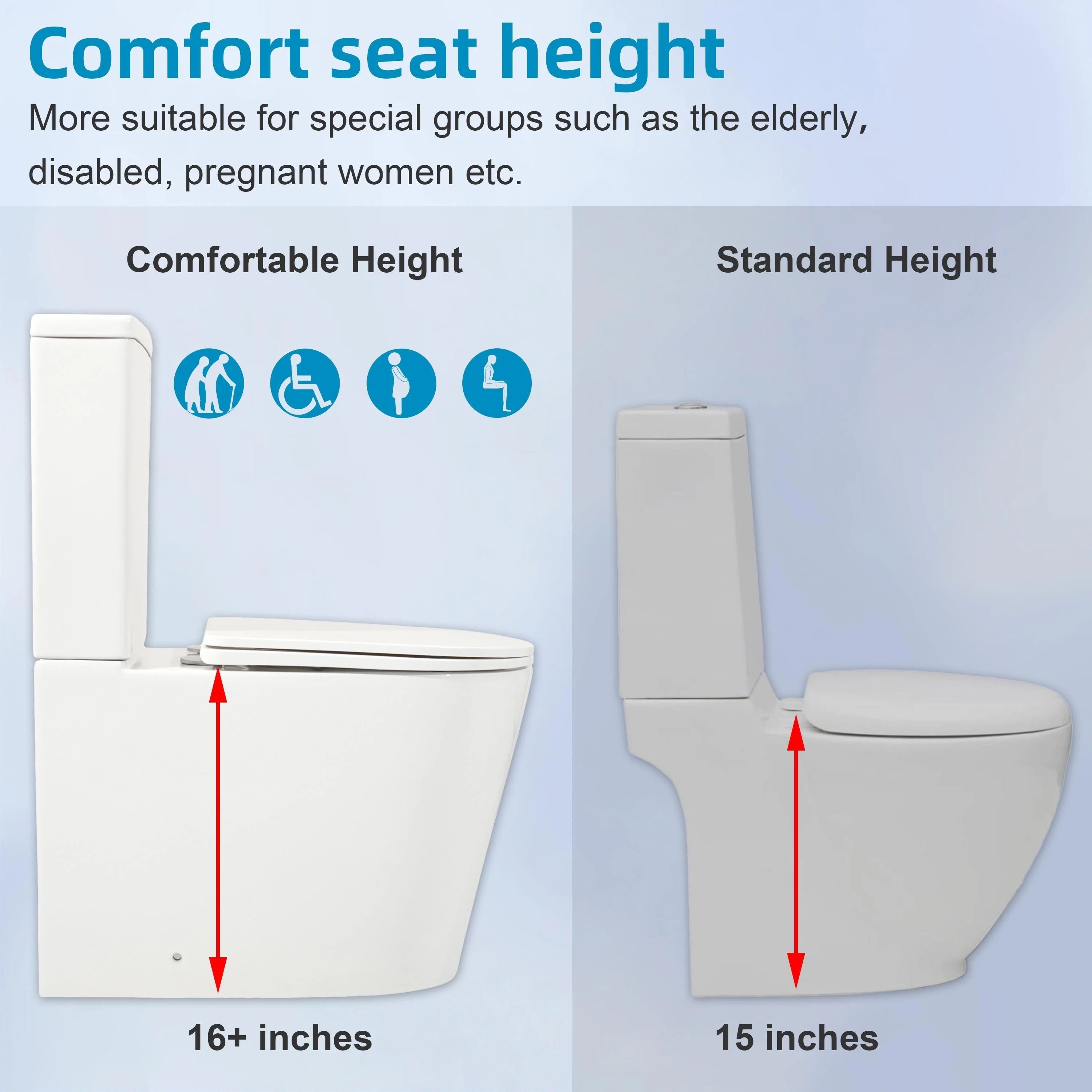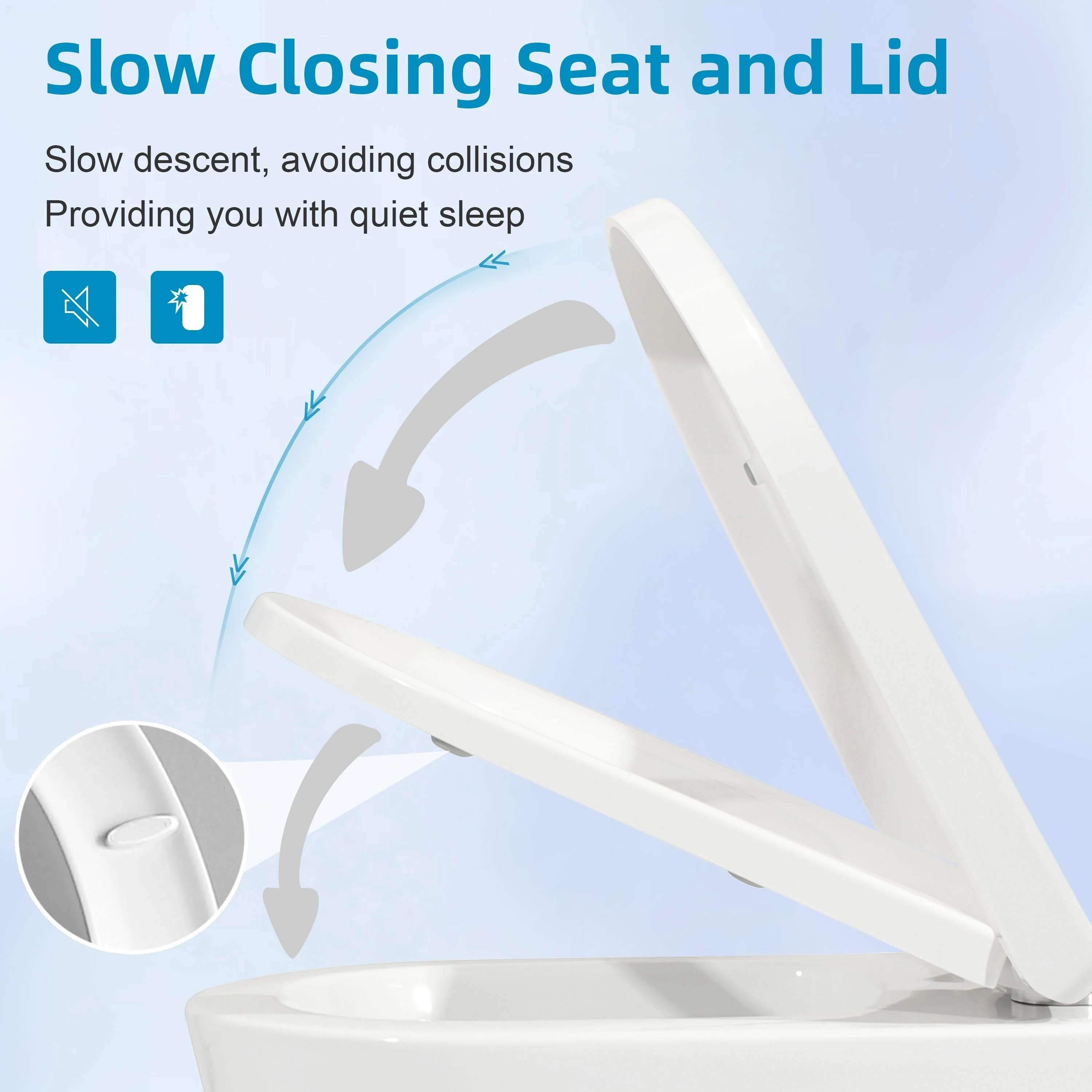 - 🚽【Peaceful Use with Soft Closing Seat】: The modern toilet comes with a soft closing PP seat, which will avoid any clattering when you use the toilet, great choice to keep the peace in an en suite bathroom,apartments.