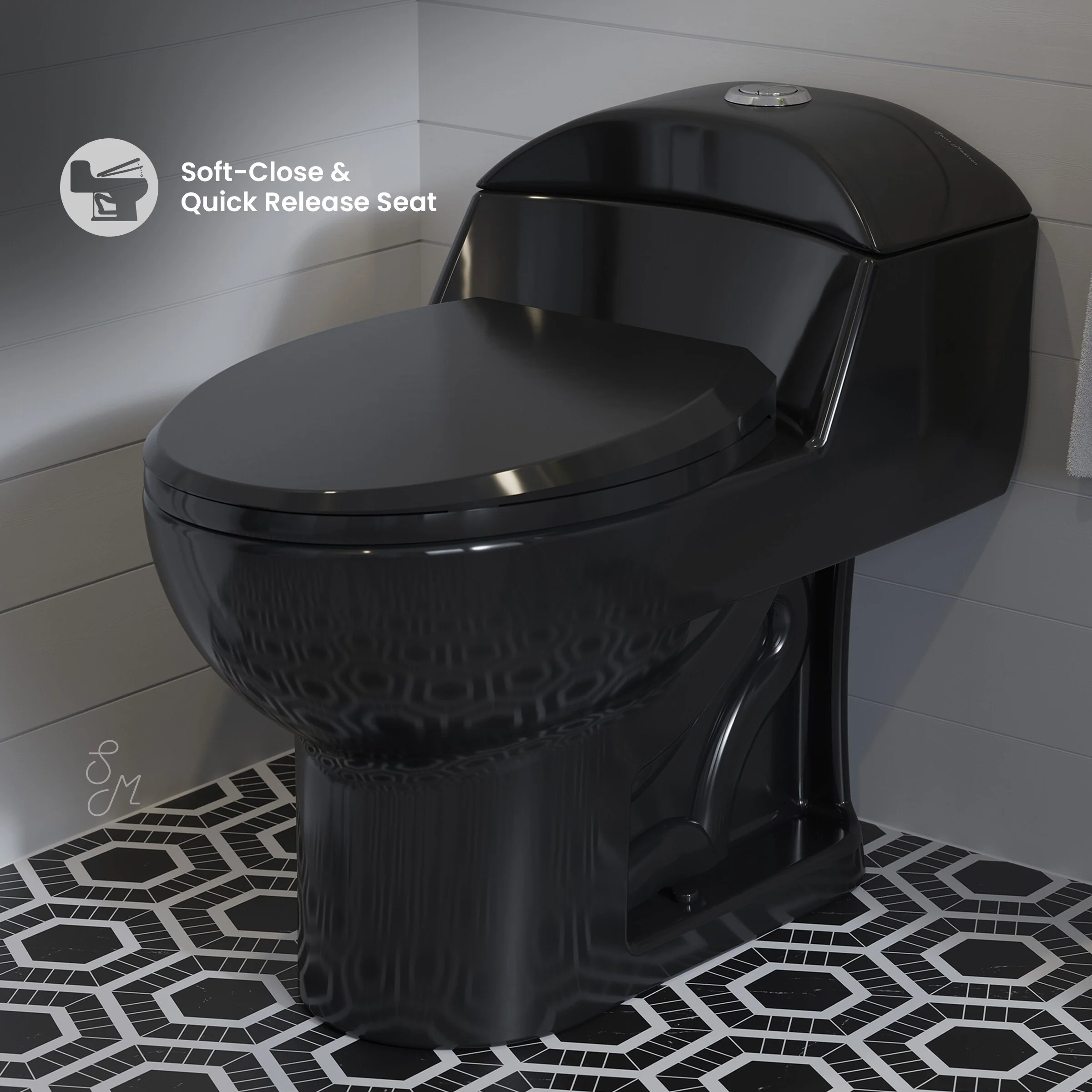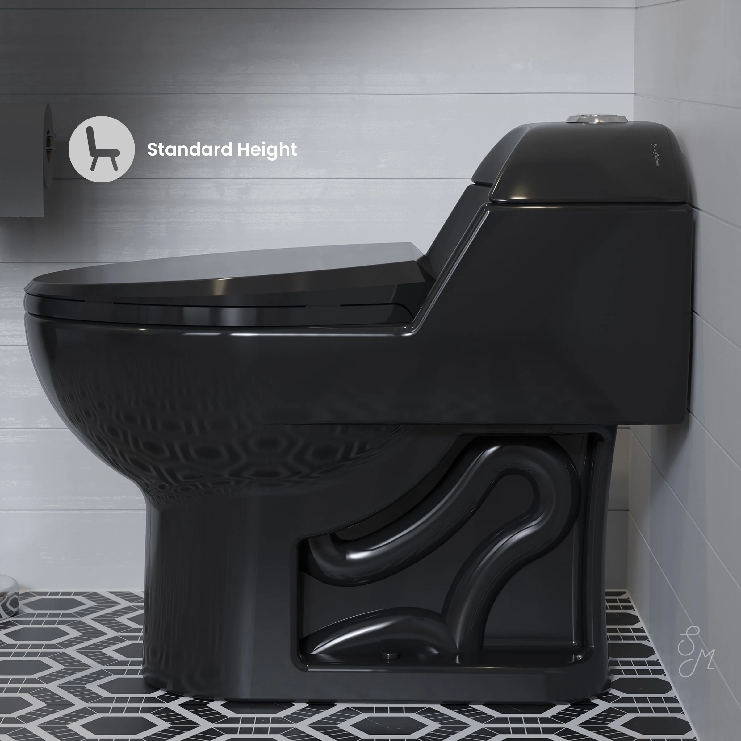 Transform your living spaces into regal abodes with the Chateau collection, embracing grandeur and comfort in every detail. Redefine your bathroom with our one-piece toilet, combining seamless design and functionality for a truly modern upgrade. Offered in black with a glossy finish.