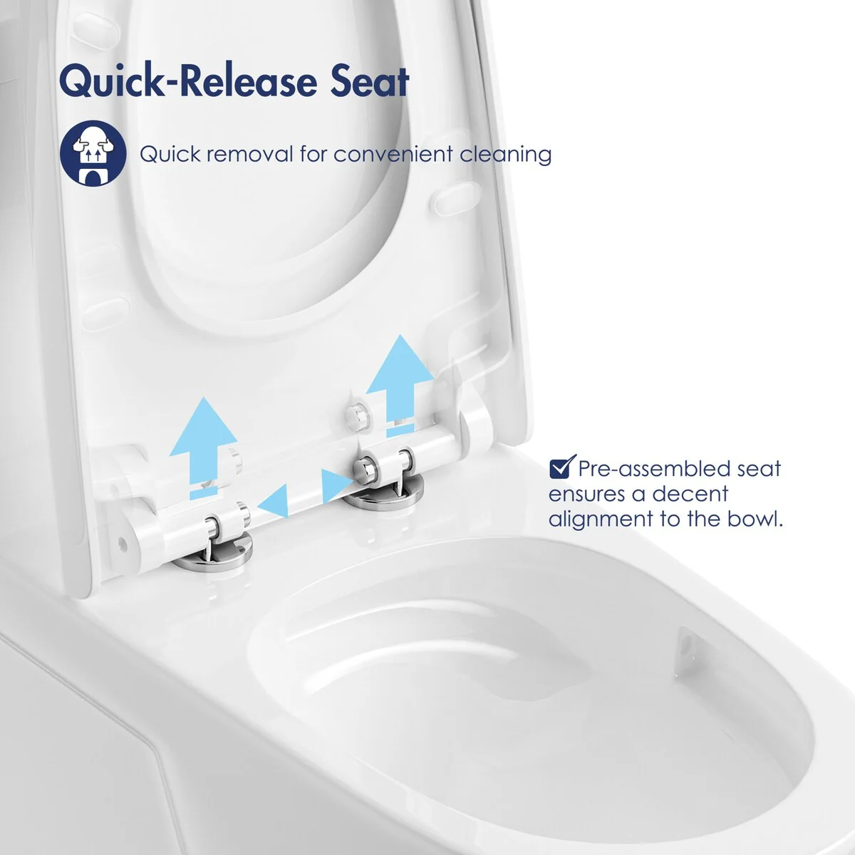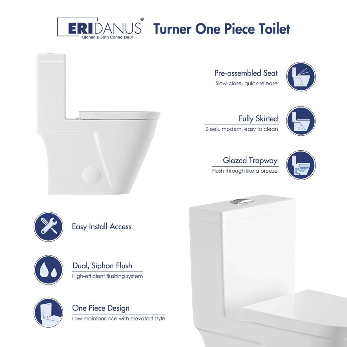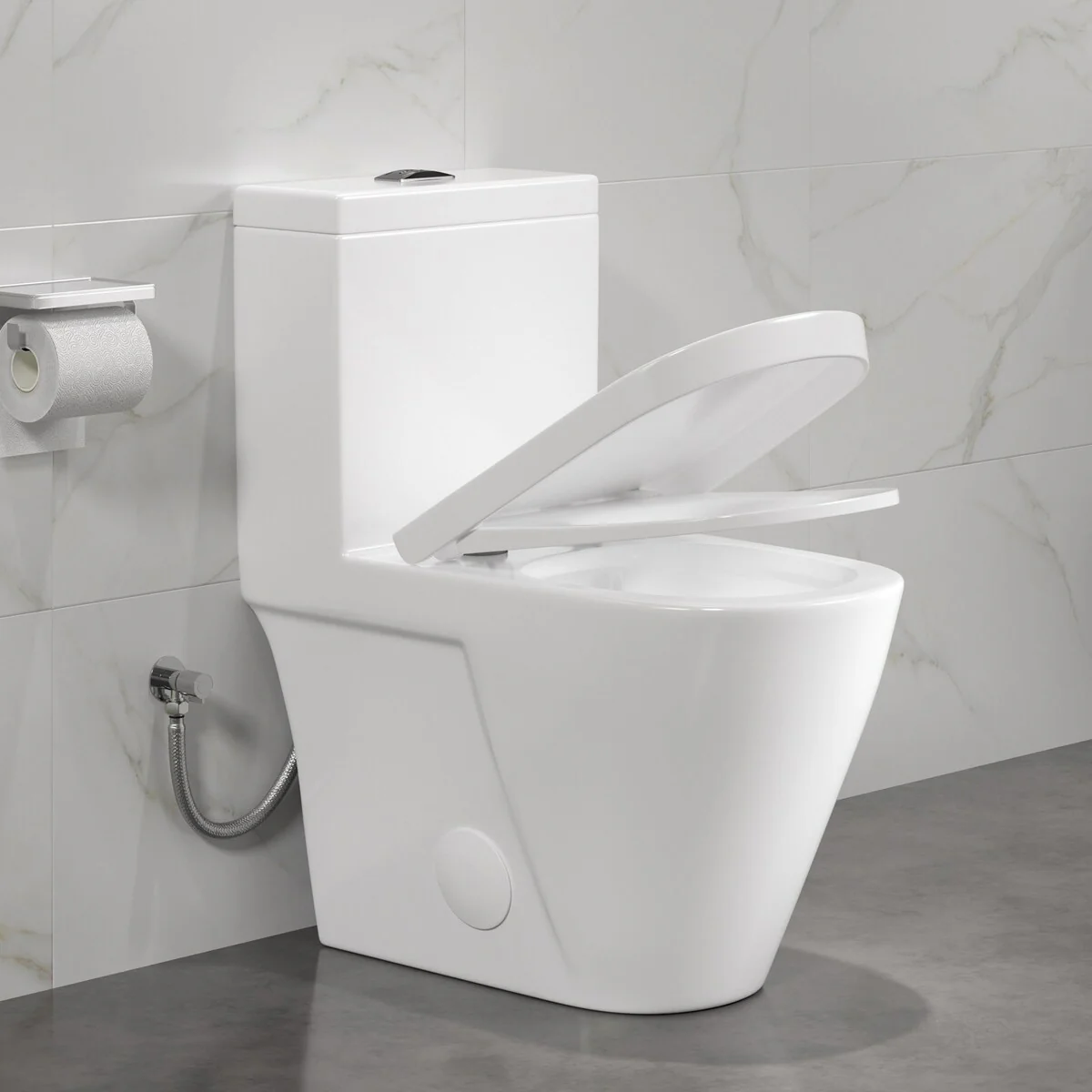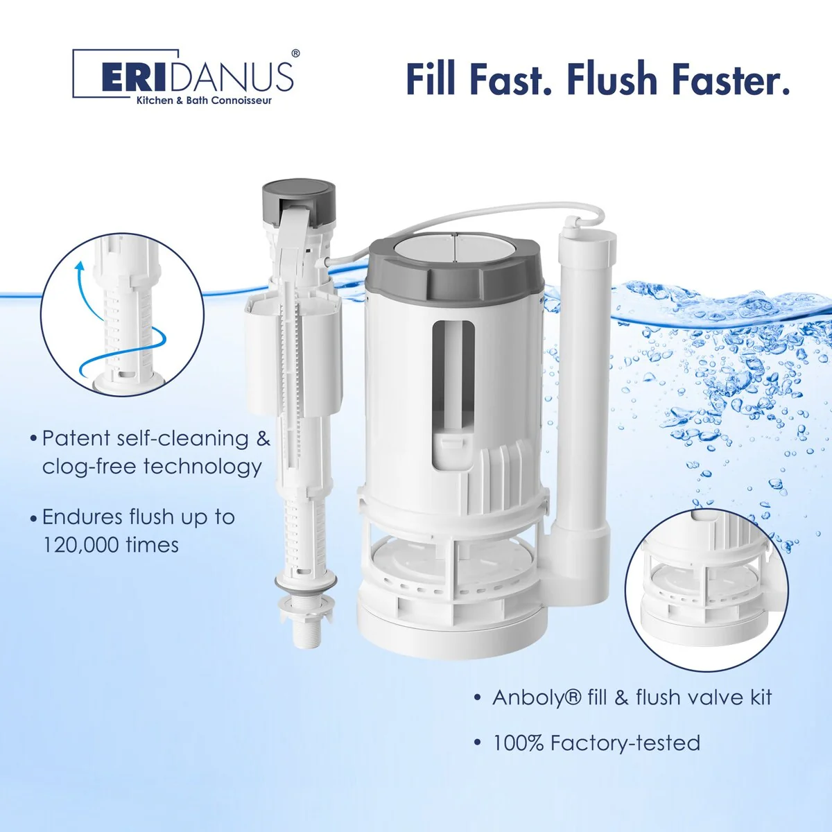 Crafted with superior materials and designed for optimal performance, these one-piece siphon dual flush floor-mounted toilets redefine the concept of luxury. With their sleek vitreous china construction, non-porous and seamless design, and fully skirted trapway, Toilets not only elevate the aesthetics of your space but also offer unparalleled ease of maintenance. WaterSense certified and equipped with a powerful siphon flushing system, these toilets save water without compromising on performance. Experience quiet and efficient flushing with 2 precision-engineered nozzles and the confidence of Map certification, ensuring the disposal of up to 1000g of solid waste with a single flush. Upgrade to Eridanus Toilets and transform your bathroom into a sanctuary of style and sustainability.