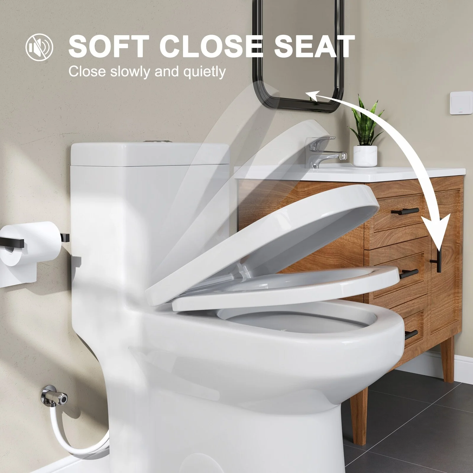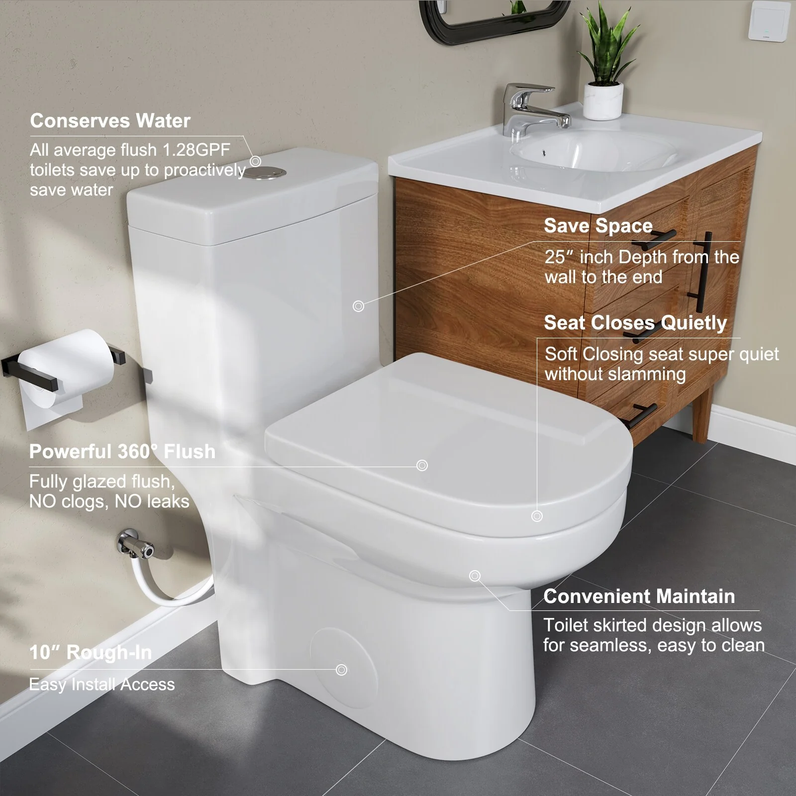 - Small but Mighty: fully glazed siphon flush, self cleaning spray, super-quiet and powerful flush with no clogs, leak-proof, highly efficient dual-flush 0.8 GPF or higher (1.28 GPF), save your water bill daily.