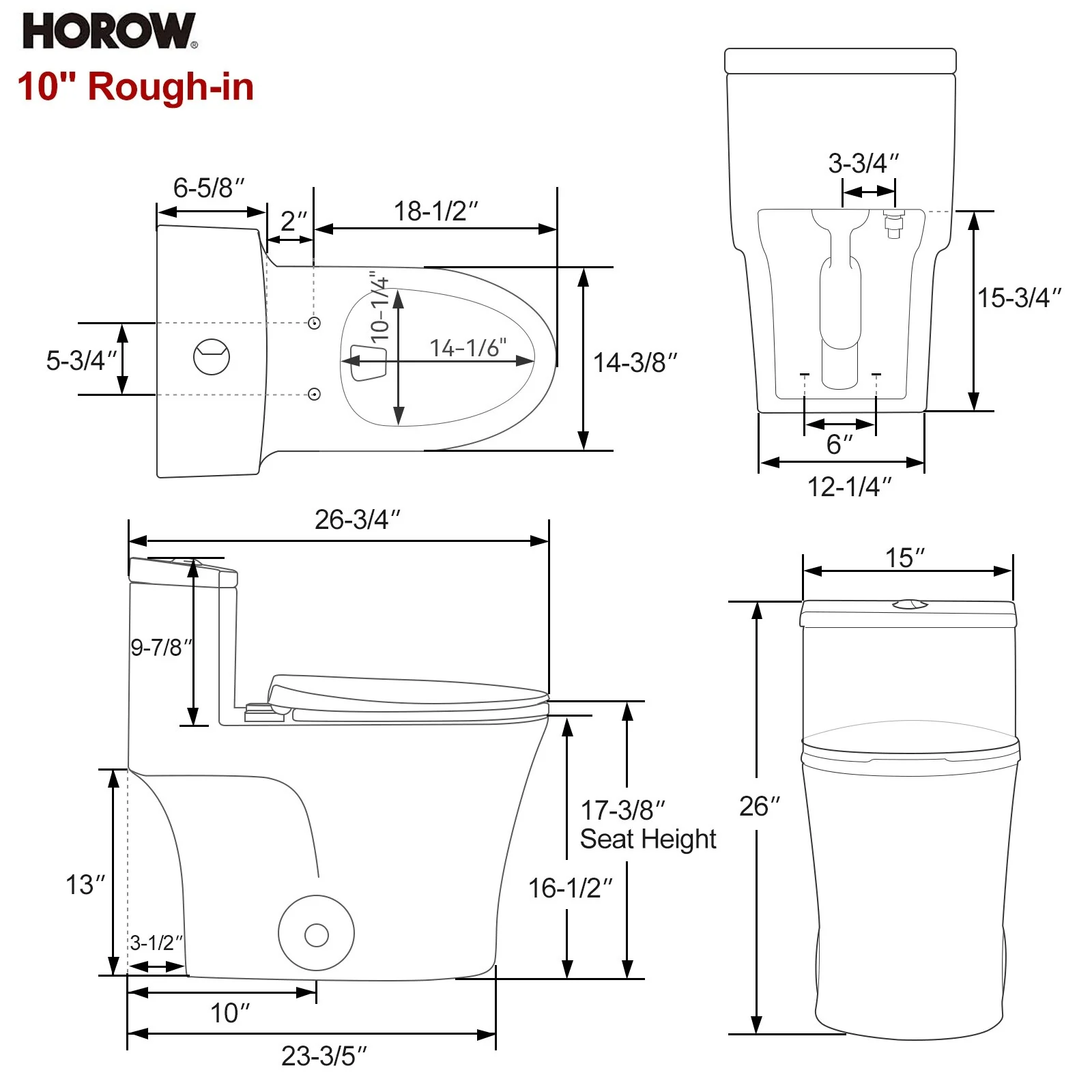 Bring it to life in your bathroom with the sleek and modern low tank extension toilet. This 10' Rough-In elongated toilet features sophisticated and elegant design, allowing for convenient space-saving and flexibility. We believe you'll be very satisfied with it -- it's not only good-looking, but also functional. It has a more powerful flush than most toilet flushes on the market. In addition, it is an ADA-compliant toilet, which provides a comfortable and considerate user experience. HOROW is committed to 'bringing beauty home'.