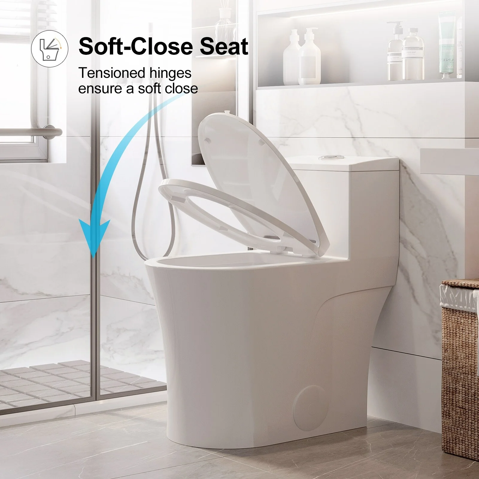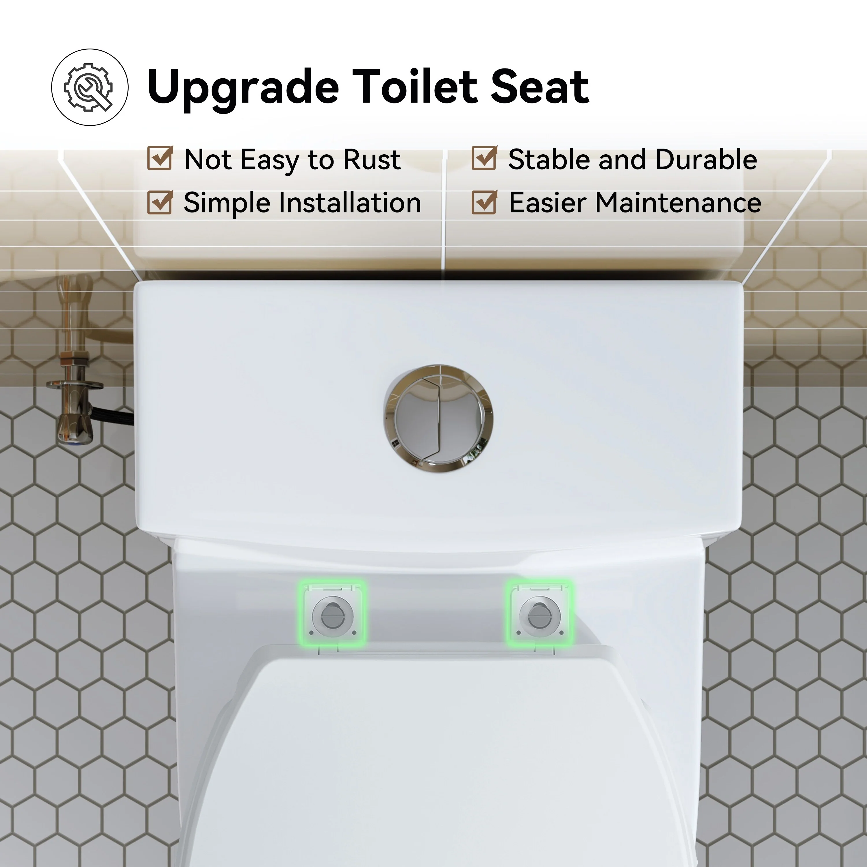 - Suprior Quality Seat: This bathroom toilet adopts a slow cover design, which can better protect the main body and appearance of the toilets, prolong the service life of the toilet, and better reduce the noise of going to the toilet at night. And the high-end soft closing PP Seat with a stainless steel durable hinge, easy to get the toilet seat off to tighten or clean after years of use.