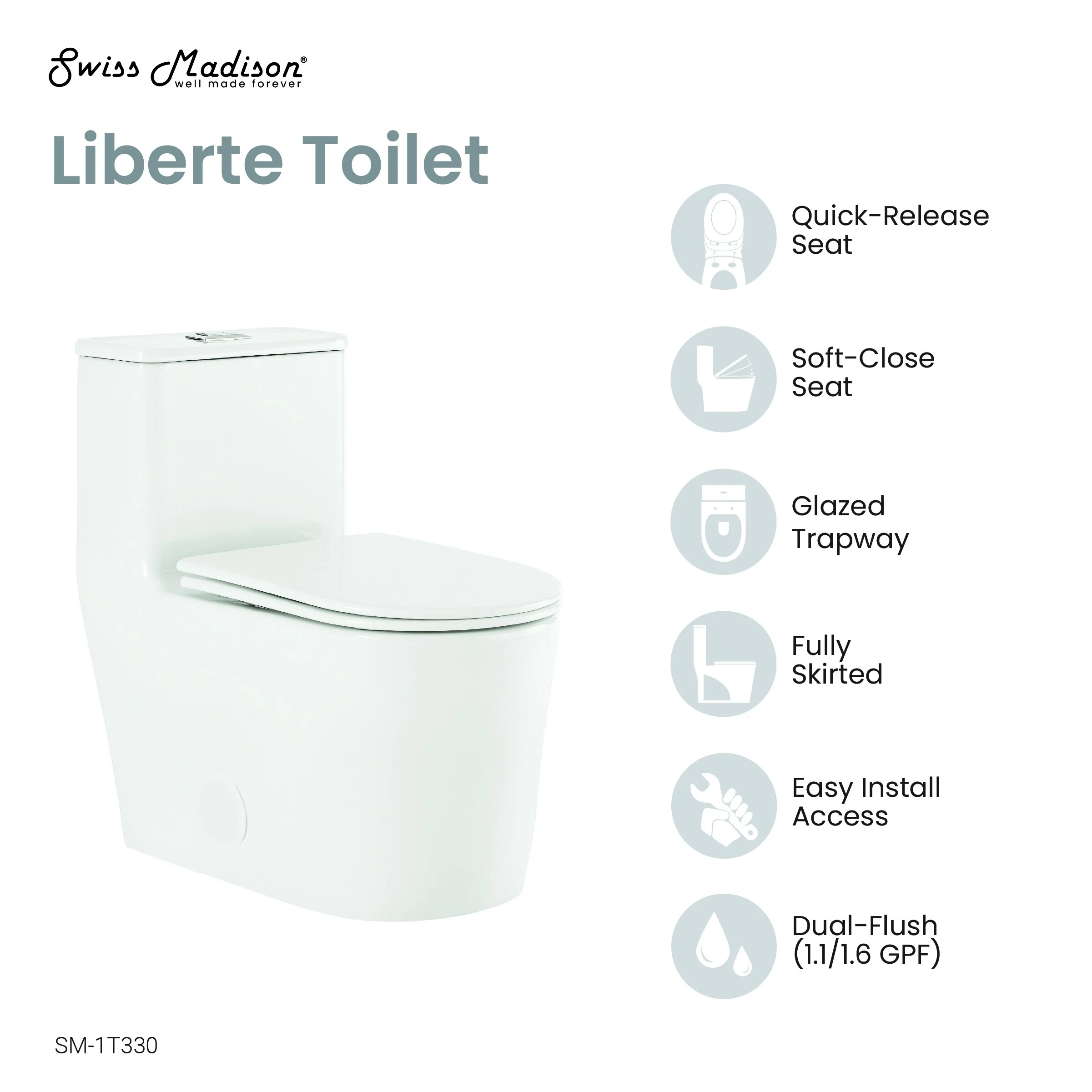 Embrace the sense of openness in the Liberte collection, where fresh designs and contemporary concepts intertwine. Redefine your bathroom with our one-piece toilet, combining seamless design and functionality for a truly modern upgrade. Offered in white with a glossy finish.