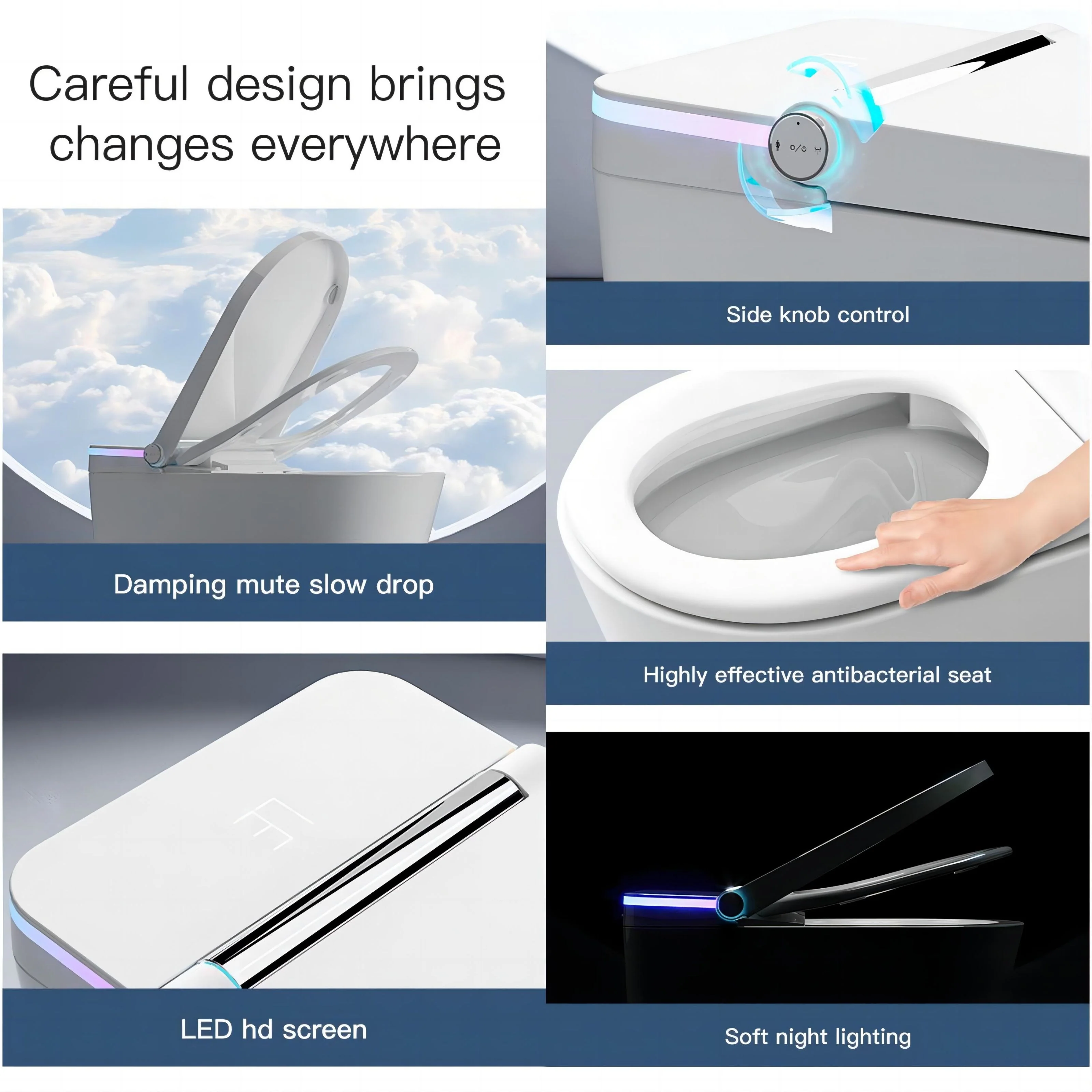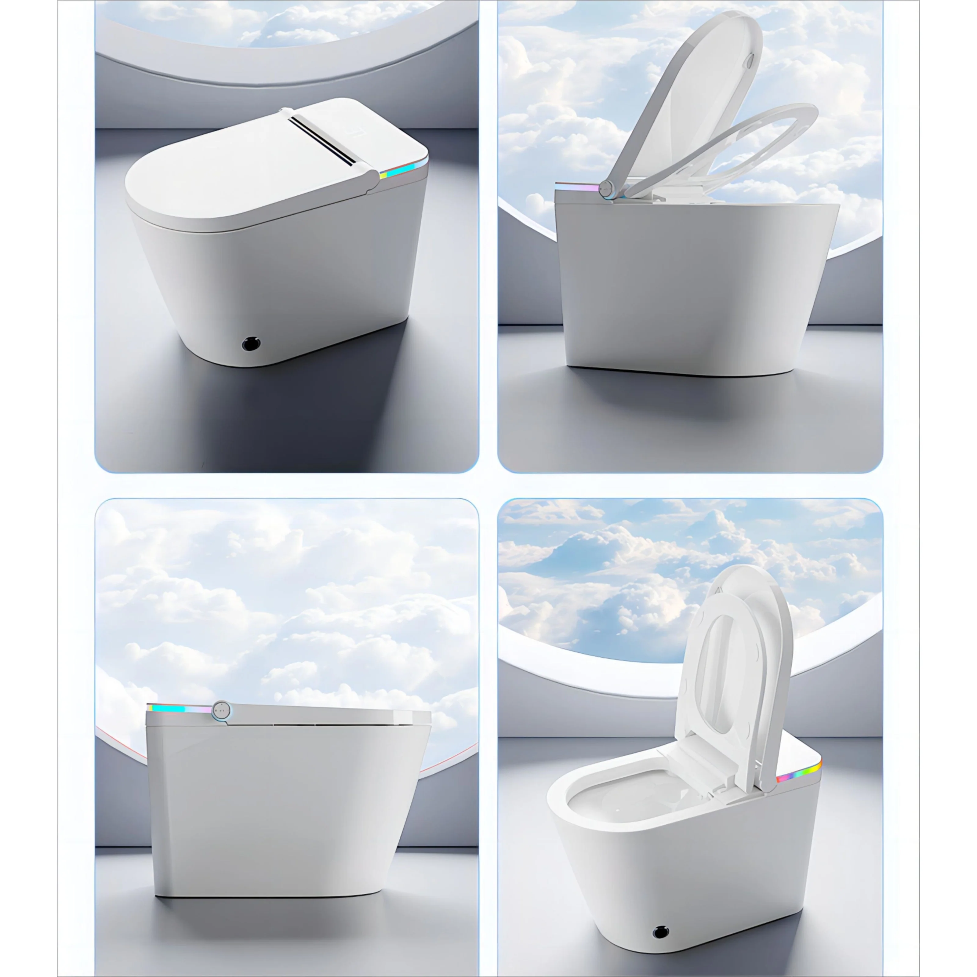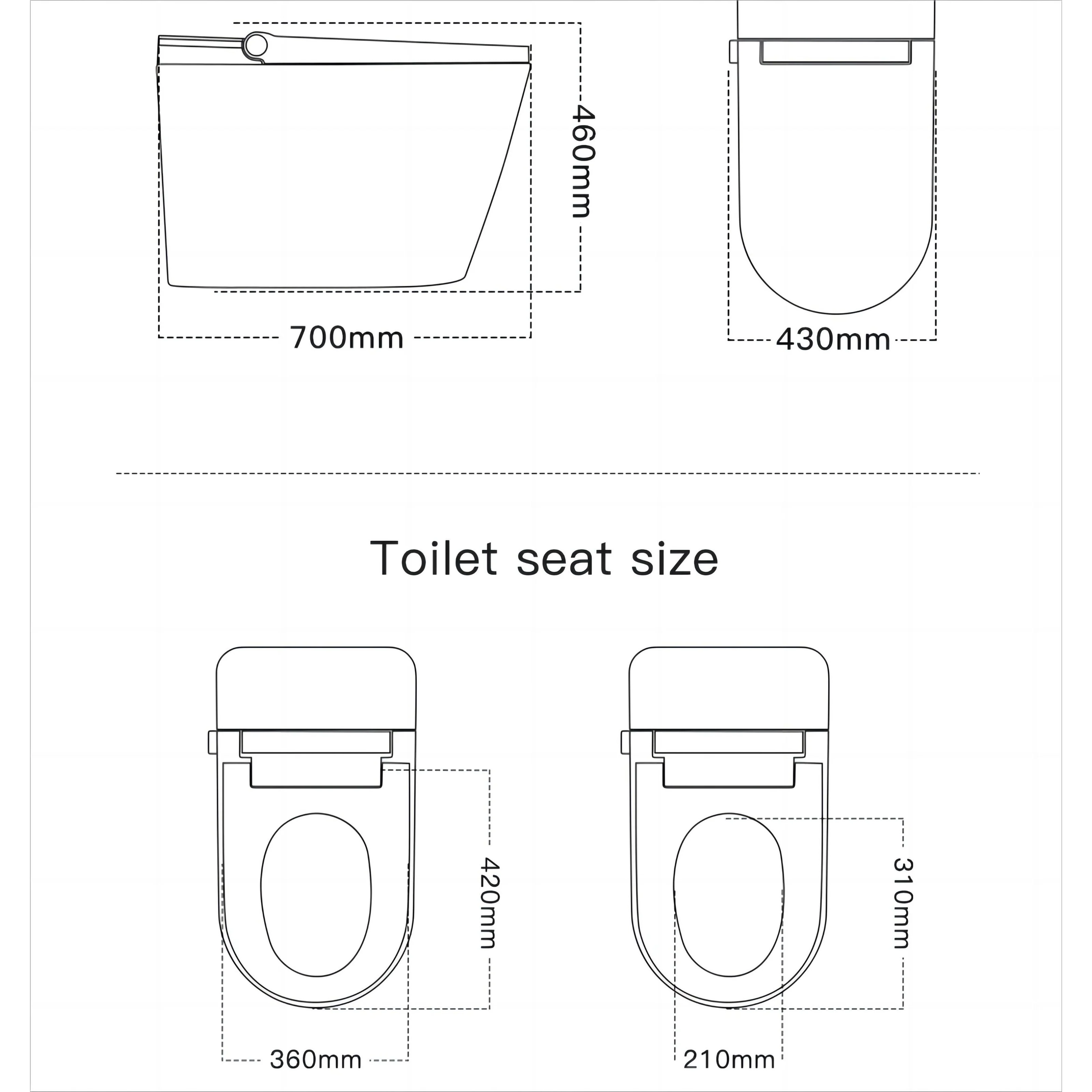 Indulge in a world of convenience with our state-of-the-art smart toilet. The auto-open cover and foot-sensor-activated cover/seat openers mean you never have to lift a finger. Set the mood with 64 captivating decorative lights, while the in-built aromatherapy refreshes the air. For utmost comfort and hygiene, we've got you covered. Female washing, hip cleaning, massage, and moving washing functions ensure a personalized experience. Auto-flushing and a self-cleaning nozzle keep the toilet spotless, with minimal effort on your part. Operating this marvel is a breeze, thanks to the one-key side knob and one-key stop. The seat induction and heating features provide a cozy touch, even on cold days. Rest easy knowing that power-failure flushing ensures functionality around the clock. Noise is a thing of the past, with the mute slow-down mechanism. Safety and hygiene are prioritized, with antibacterial seating and flame-retardant materials. The anti-fouling glaze simplifies cleaning, and the nightlight is a thoughtful addition. Upgrade your bathroom today and experience luxury like never before.
