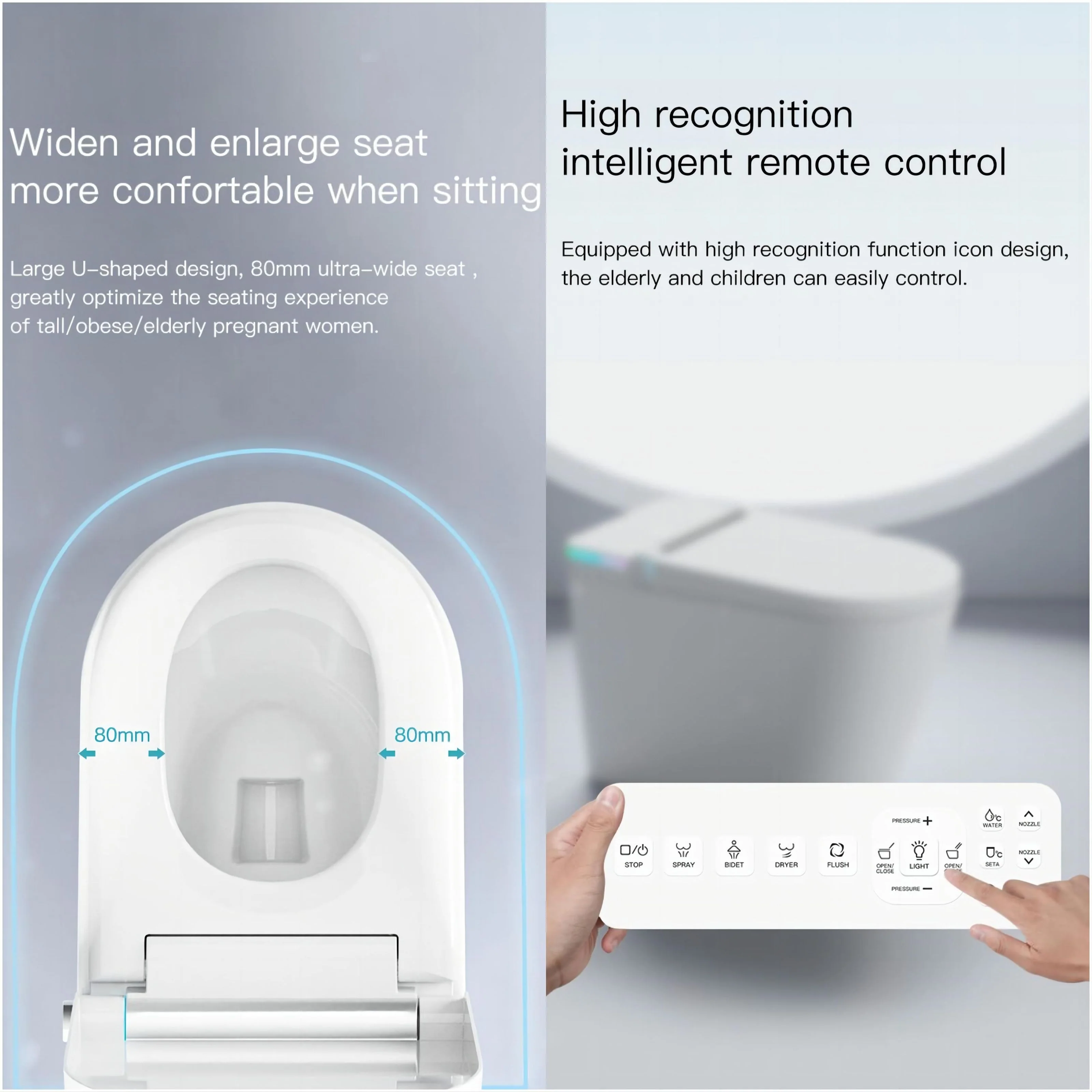 Enjoy seat heating, warm air drying, and the ability to adjust wind and water temperatures for a pleasant and comfortable experience.